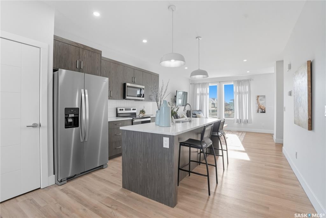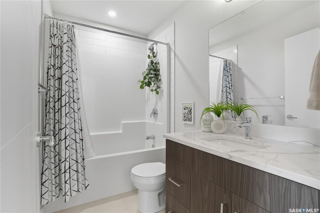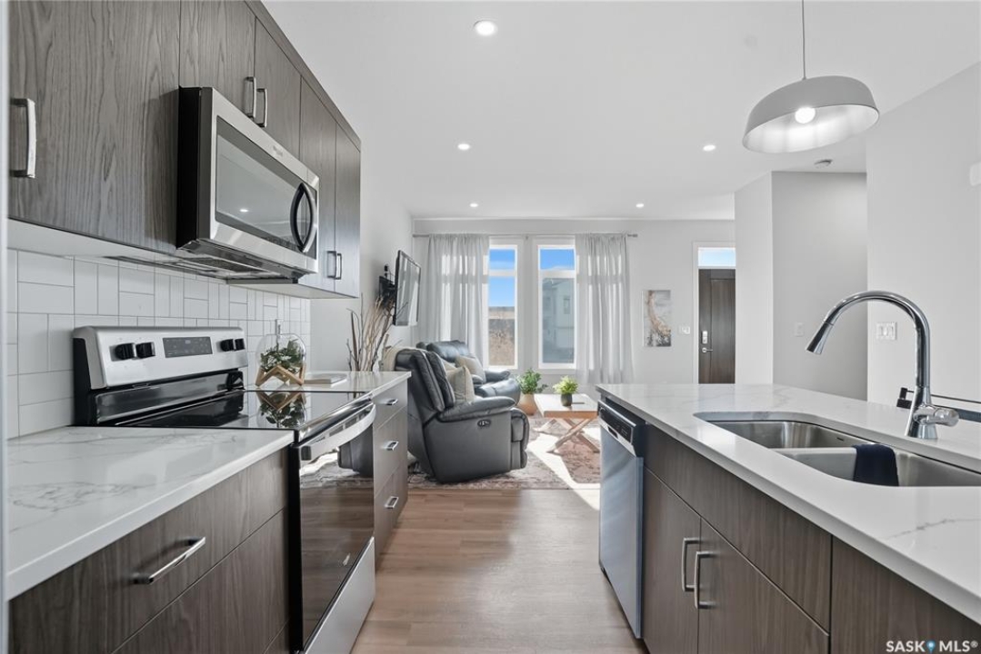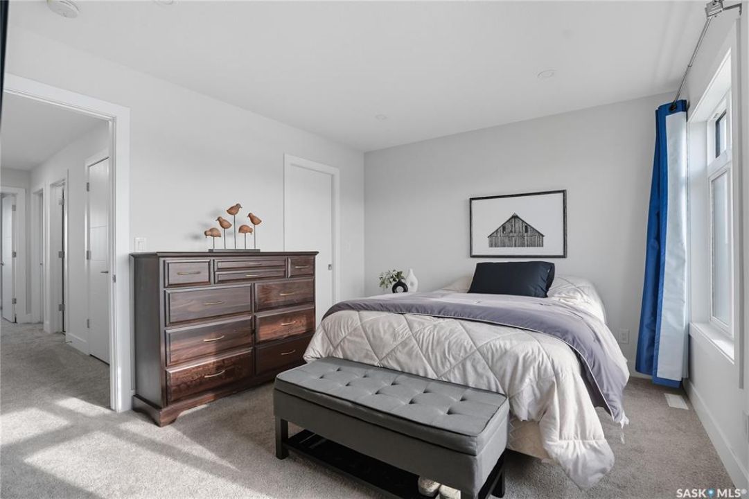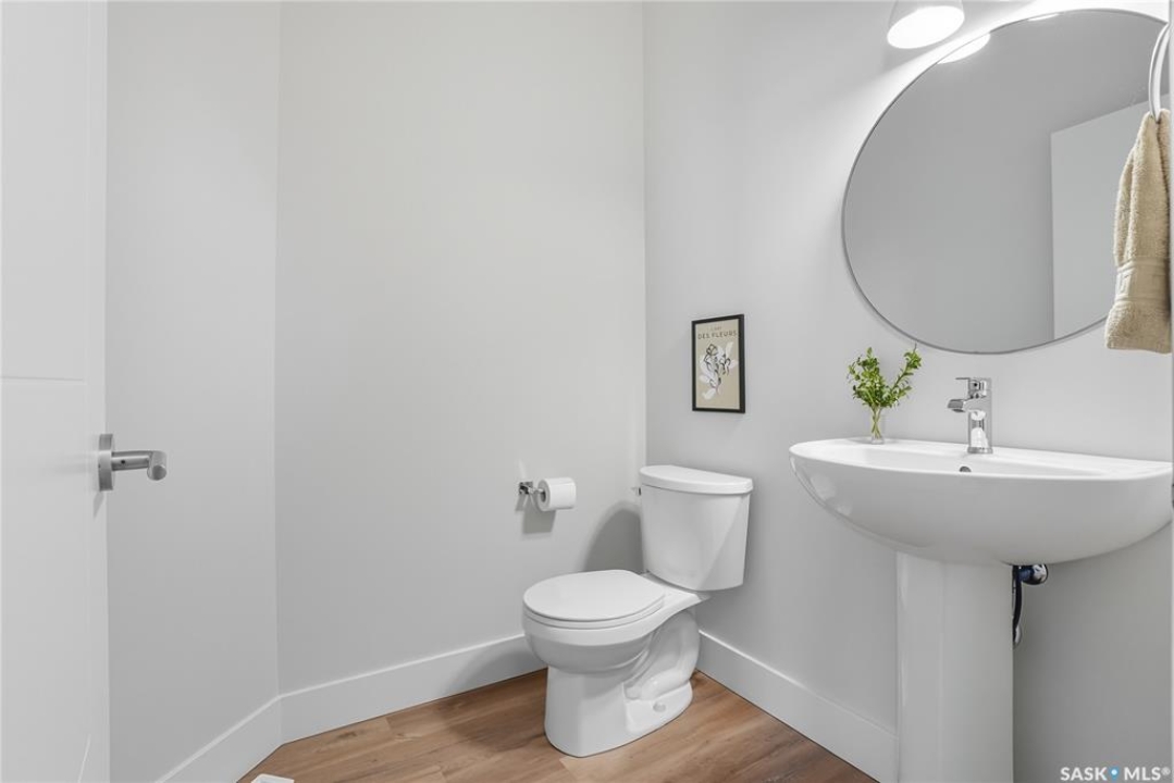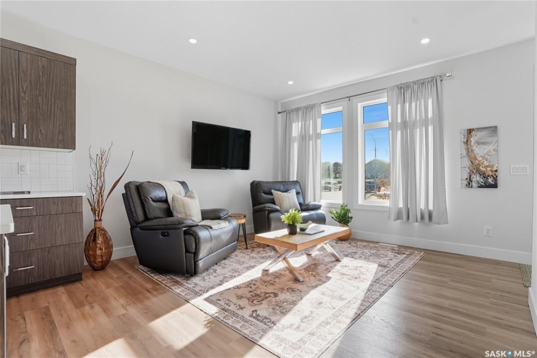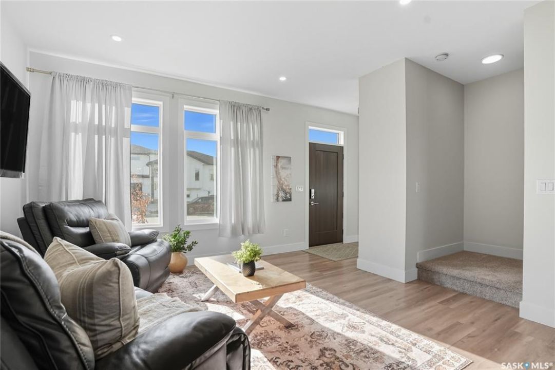 Welcome to 723 Henry Dayday Road, a stunning two-storey home that blends modern design with everyday comfort. Flooded with natural light, this home offers an inviting open-concept layout perfect for both family living and entertaining. Step inside to a stylish foyer with built-in bench seating that leads into the bright living room and contemporary kitchen, featuring quartz countertops, soft-close cabinetry, stainless steel appliances, and a large island with seating. The adjoining dining area offers the perfect gathering space, while a convenient two-piece powder room completes the main floor. Upstairs, you'll find three spacious bedrooms, a full bathroom, and laundry for added convenience. The primary suite is a true retreat with a generous walk-in closet and an ensuite boasting dual vanities and a walk-in shower. A separate side entrance offers excellent potential for a future basement suite, ideal for guests or added income. Outside, enjoy a fully landscaped front yard with underground sprinklers, a fenced backyard, a back deck with natural gas BBQ hookup, and two car detached garage. Located in Aspen Ridge, one of Saskatoon's most desirable new communities with quick access to amenities and the Chief Mistawasis Bridge.
