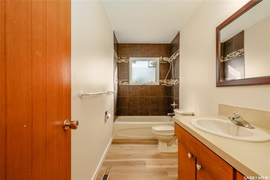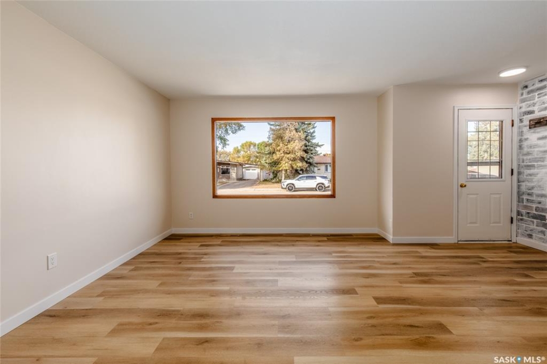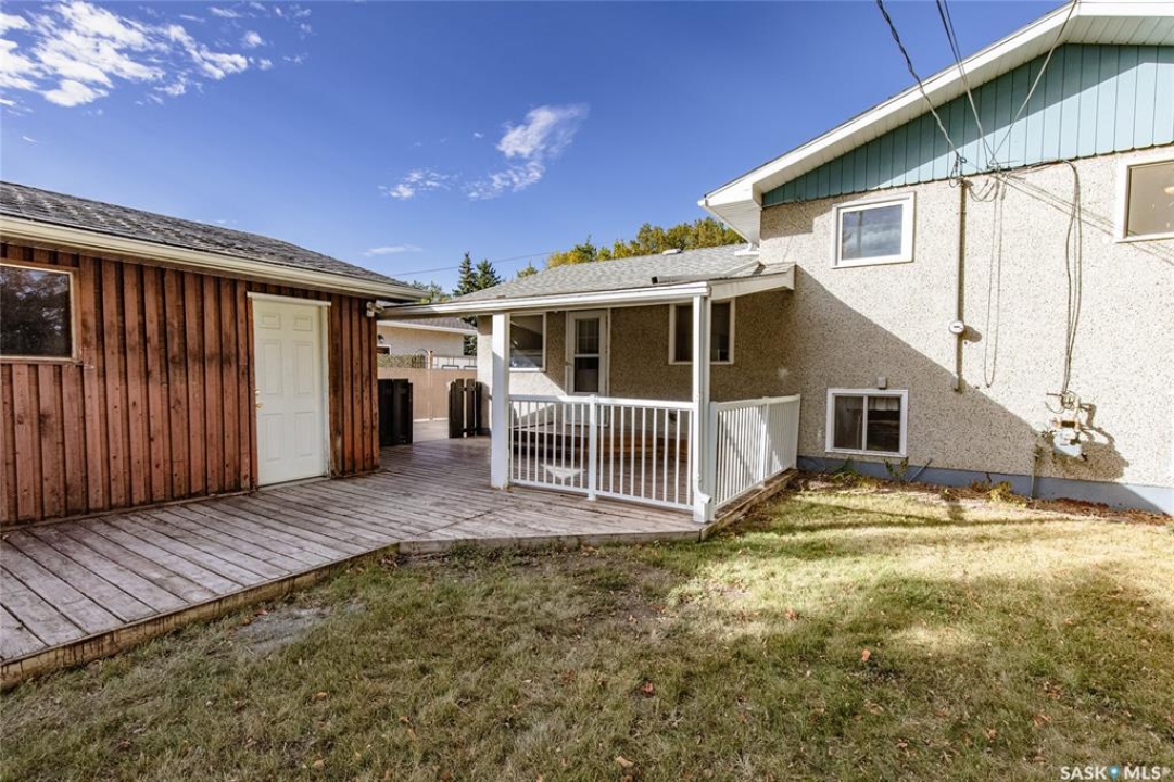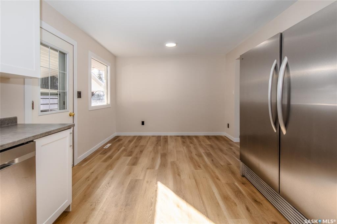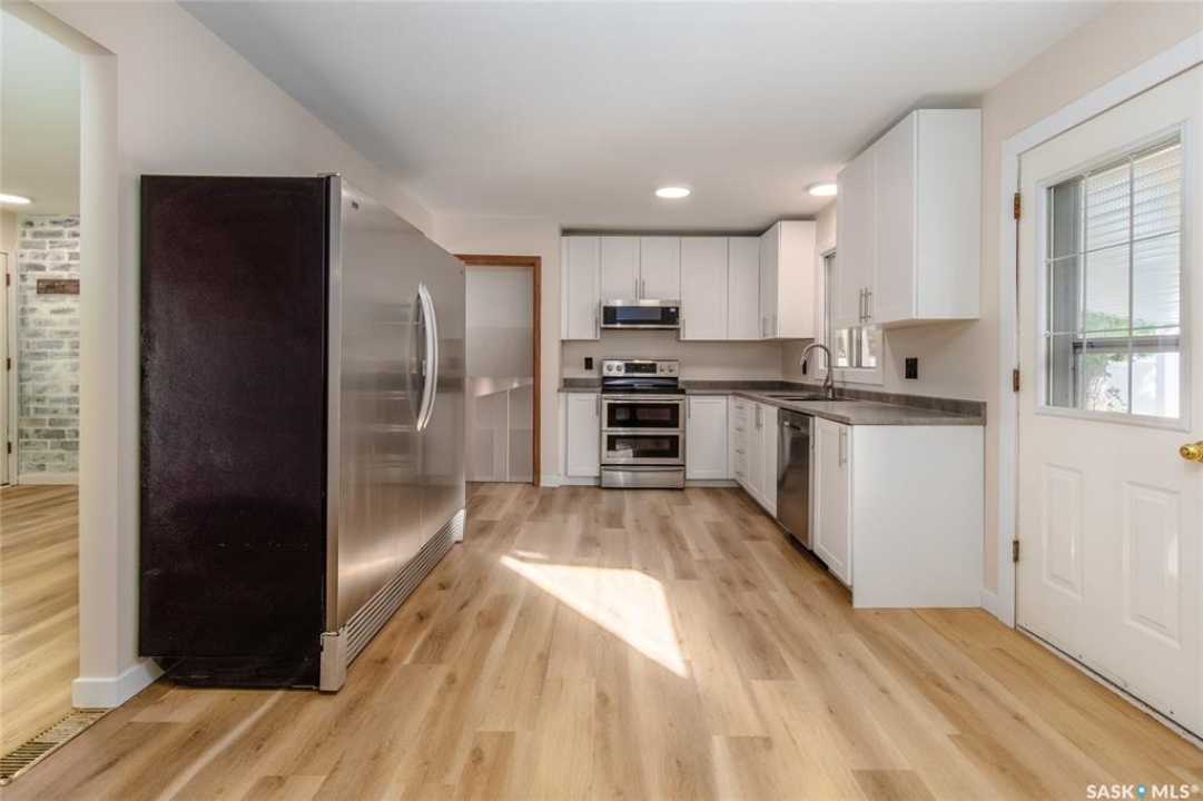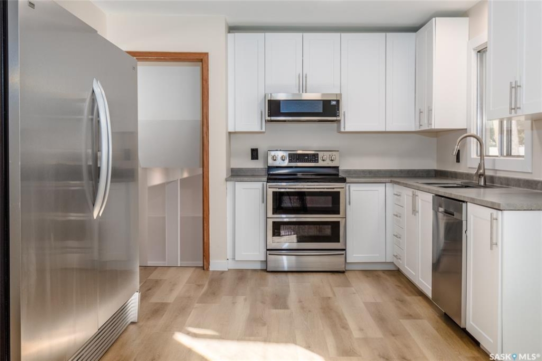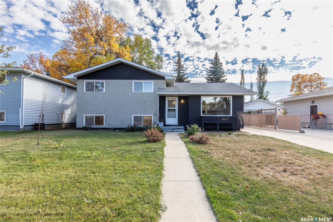 Welcome to this inviting 3-level split home in the highly desirable Palliser area, offering a thoughtful layout, modern updates, and excellent proximity to schools, recreation, and amenities. Step inside to find an eat-in kitchen that has been refreshed with brand new white cabinetry, new countertops, and new dishwasher and microwave hood fan. Also included are the side-by-side SS fridge/freezer, SS double oven, washer and dryer (all appliances included “as is”). Fresh paint on the main floor, paired with new vinyl plank flooring throughout the entire home, gives the interior a clean and modern feel. The spacious living room has a large picture window. Upstairs, you'll find three comfortable bedrooms (freshly painted) and a 4-pc bathroom with tiled tub surround, while the finished basement provides extra living area perfect for a family room, playroom, or office, plus plenty of additional storage. Central air conditioning ensures seasonal comfort. The property sits on a large, fully fenced lot with alley access and a swing gate wide enough for vehicle entry. A garden area is ready for your green thumb, and the south-facing covered deck is ideal for relaxing or entertaining in every season. Parking is never an issue with an oversized single-car garage, off-street parking, and RV parking. Location is a standout feature — this home is just minutes away from the Kinsmen Sportsplex, SASKPOLY Tech, skateboard park, ball diamonds, walking paths, churches, and elementary schools and a high school. This property truly blends practicality with lifestyle, offering move-in ready updates, flexible living spaces, and an unbeatable Palliser location. Some photos have been stagged.