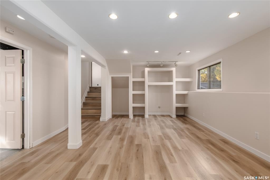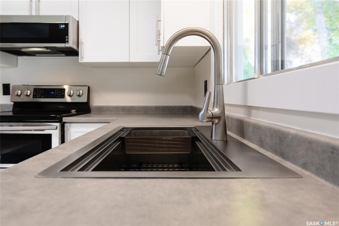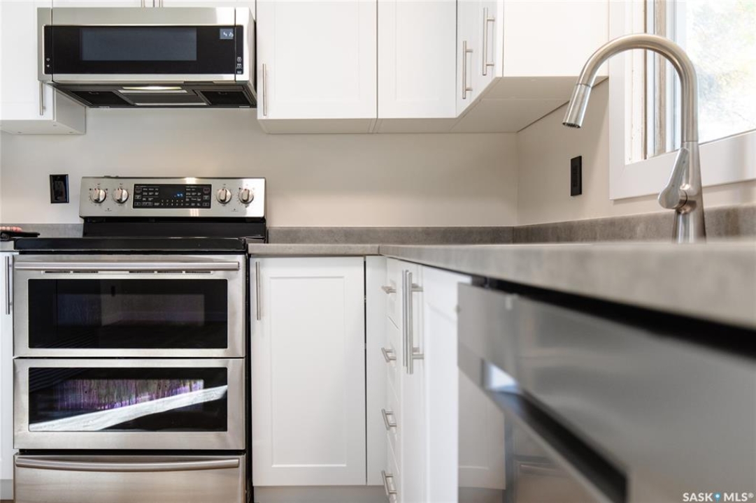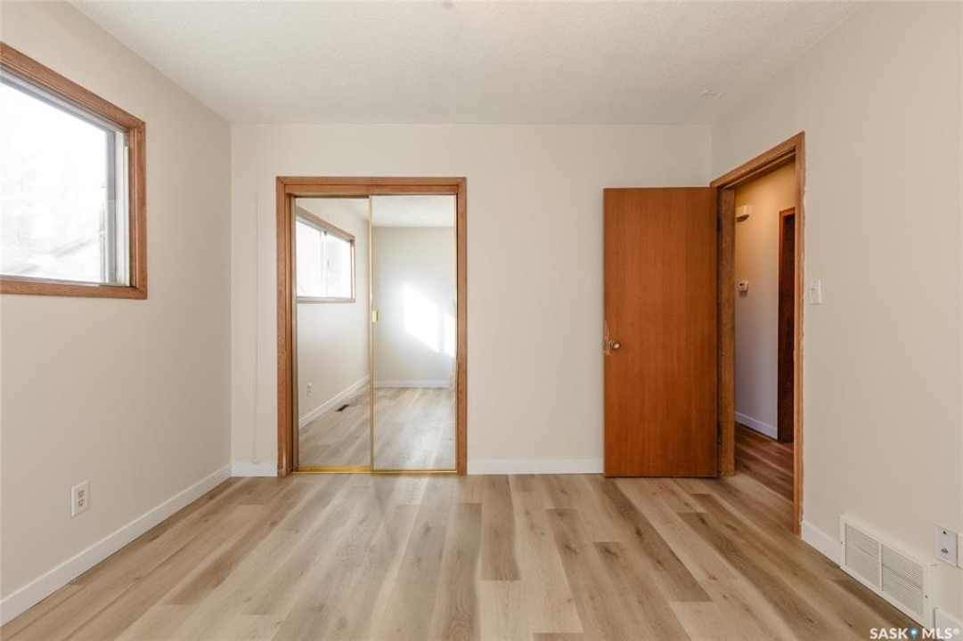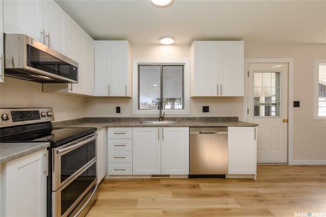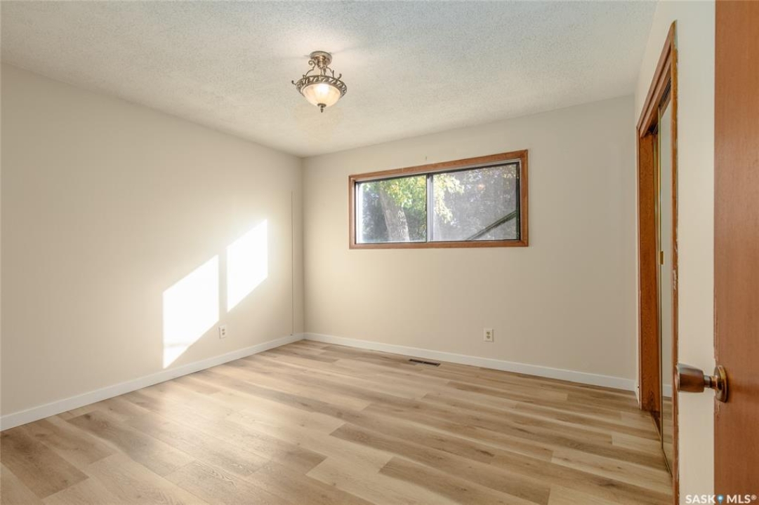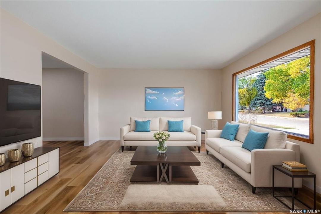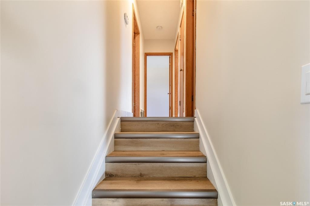 Welcome to this inviting 3-level split home in the highly desirable Palliser area, offering a thoughtful layout, modern updates, and excellent proximity to schools, recreation, and amenities. Step inside to find an eat-in kitchen that has been refreshed with brand new white cabinetry, new countertops, and new dishwasher and microwave hood fan. Also included are the side-by-side SS fridge/freezer, SS double oven, washer and dryer (all appliances included “as is”). Fresh paint on the main floor, paired with new vinyl plank flooring throughout the entire home, gives the interior a clean and modern feel. The spacious living room has a large picture window. Upstairs, you'll find three comfortable bedrooms (freshly painted) and a 4-pc bathroom with tiled tub surround, while the finished basement provides extra living area perfect for a family room, playroom, or office, plus plenty of additional storage. Central air conditioning ensures seasonal comfort. The property sits on a large, fully fenced lot with alley access and a swing gate wide enough for vehicle entry. A garden area is ready for your green thumb, and the south-facing covered deck is ideal for relaxing or entertaining in every season. Parking is never an issue with an oversized single-car garage, off-street parking, and RV parking. Location is a standout feature — this home is just minutes away from the Kinsmen Sportsplex, SASKPOLY Tech, skateboard park, ball diamonds, walking paths, churches, and elementary schools and a high school. This property truly blends practicality with lifestyle, offering move-in ready updates, flexible living spaces, and an unbeatable Palliser location. Some photos have been stagged.