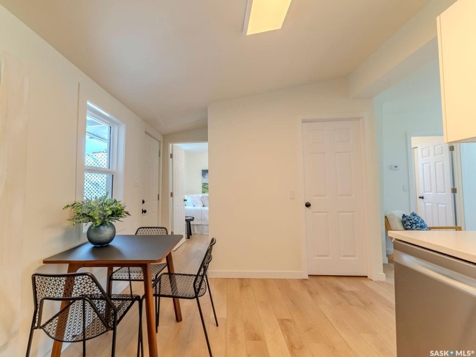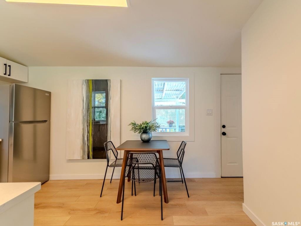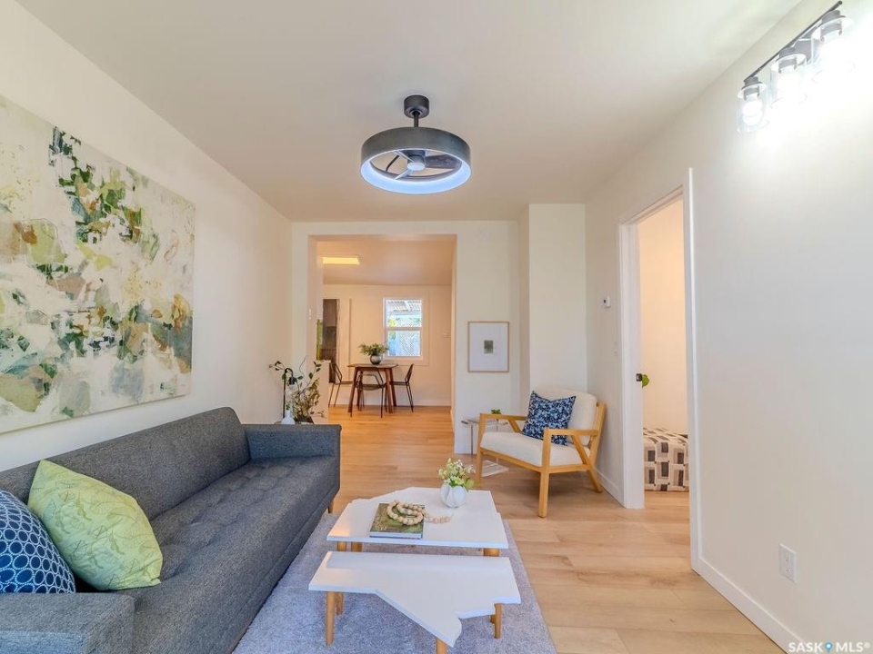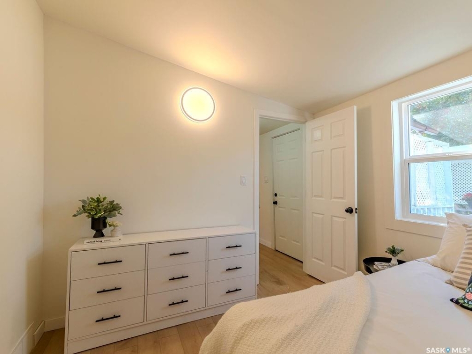 Welcome to 1423 6th Ave N, a cozy renovated home on a desirable corner lot. This property features 2 bedrooms, 1 full bathroom, and a bright, sun-filled living space with large bay windows. The modern kitchen with new appliances adds both style and functionality. Located in a well-established neighborhood, this home offers excellent access to downtown, Circle Drive, the industrial area. Elementary schools, and the river—within walking distance. The mature backyard is a true highlight, with apple and cherry trees, grape vines, birdhouses, a deck with a built-in bench (partially enclosed), and plenty of room for outdoor enjoyment. With two-street access and a spacious yard, there's strong potential for a future garden suite or additional development check with city permits. This charming home is perfect for first-time buyers, investors, or anyone looking for a centrally located property with great possibilities.
