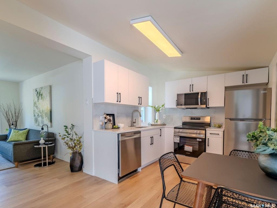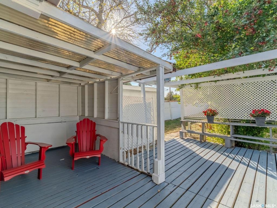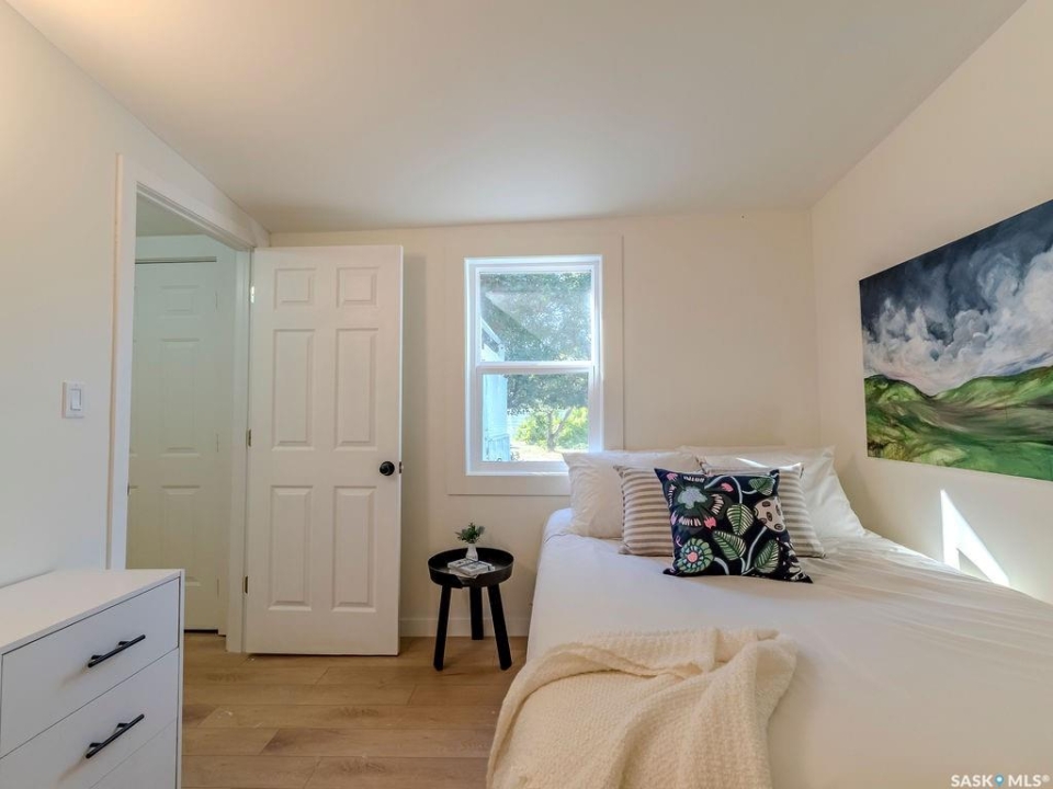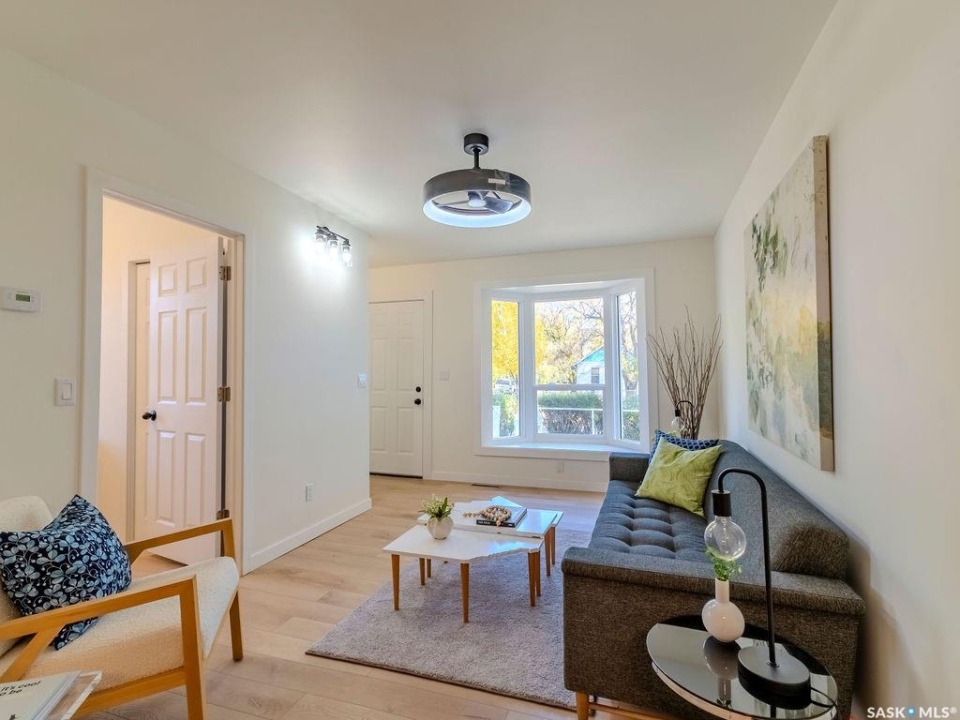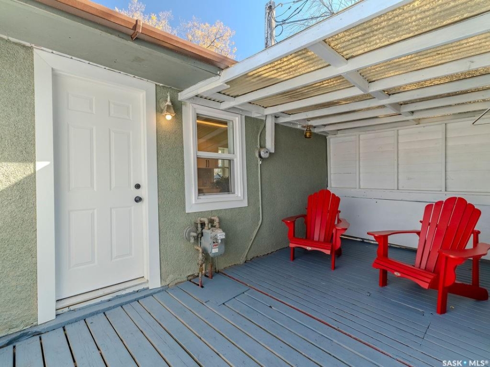 Welcome to 1423 6th Ave N, a cozy renovated home on a desirable corner lot. This property features 2 bedrooms, 1 full bathroom, and a bright, sun-filled living space with large bay windows. The modern kitchen with new appliances adds both style and functionality. Located in a well-established neighborhood, this home offers excellent access to downtown, Circle Drive, the industrial area. Elementary schools, and the river—within walking distance. The mature backyard is a true highlight, with apple and cherry trees, grape vines, birdhouses, a deck with a built-in bench (partially enclosed), and plenty of room for outdoor enjoyment. With two-street access and a spacious yard, there's strong potential for a future garden suite or additional development check with city permits. This charming home is perfect for first-time buyers, investors, or anyone looking for a centrally located property with great possibilities.