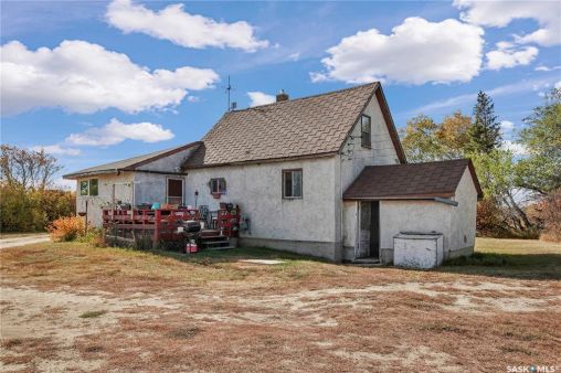 Welcome to this charming 10-acre acreage nestled in the rolling hills across from the Merrill Community Centre. This cozy three-bedroom, one-bath home offers the perfect balance of country tranquility and everyday convenience. A detached garage provides practical storage or workspace, while several older outbuildings add rustic character and endless possibilities for hobby farming or restoration. The property is beautifully framed by natural shelter belts and mature trees, giving you privacy and protection from the prairie winds. You'll appreciate the pavement drive right up until the last half kilometre, making year-round access a breeze. The landscape features gentle slopes and open areas ideal for gardening, pasture, or future expansion. Inside, the home is comfortable and inviting ready for your personal touch to make it shine. Enjoy morning coffee with sweeping countryside views and peaceful sunrises that define rural Saskatchewan living. With plenty of amenities on the way out, you'll have both convenience and solitude at your fingertips. Come for a drive and see this hidden gem for yourself—you just might find your next chapter waiting here.