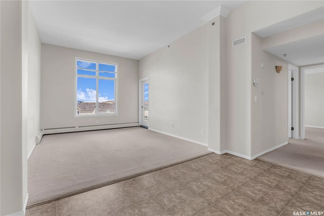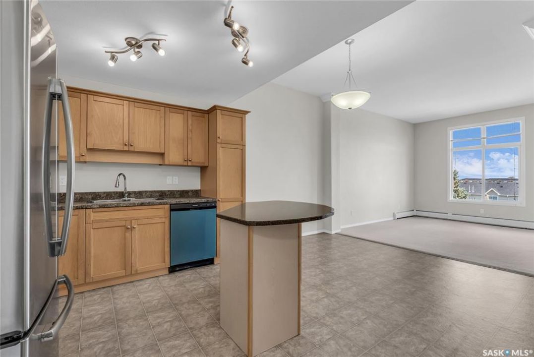 Welcome to unit #414 – 235 Herold Terrace, in the beautiful neighborhood of Lakewood! Conveniently close to many shopping centers, parks, walking trails, bus stops, dog park, and easy access to Circle Drive! Stepping inside your top floor unit, you are greeted with an abundance of natural light flowing throughout. The kitchen provides you with stainless steel appliances, including fridge, stove, dishwasher and hood fan, maple cabinets, pantry and island for additional counter and cabinet space. The living room features 10ft ceilings, a large window and access to your East facing balcony. Coming to the primary bedroom, offering a walk-in closet with custom organizers, and a 3-pc ensuite with sliding glass shower. One additional bedroom, a 4-pc bath, and in-suite laundry room complete this very well-kept home! Additional features include A/C, central vac, and two surface parking stalls! This stunning condo is a must-see in a highly sought after location!