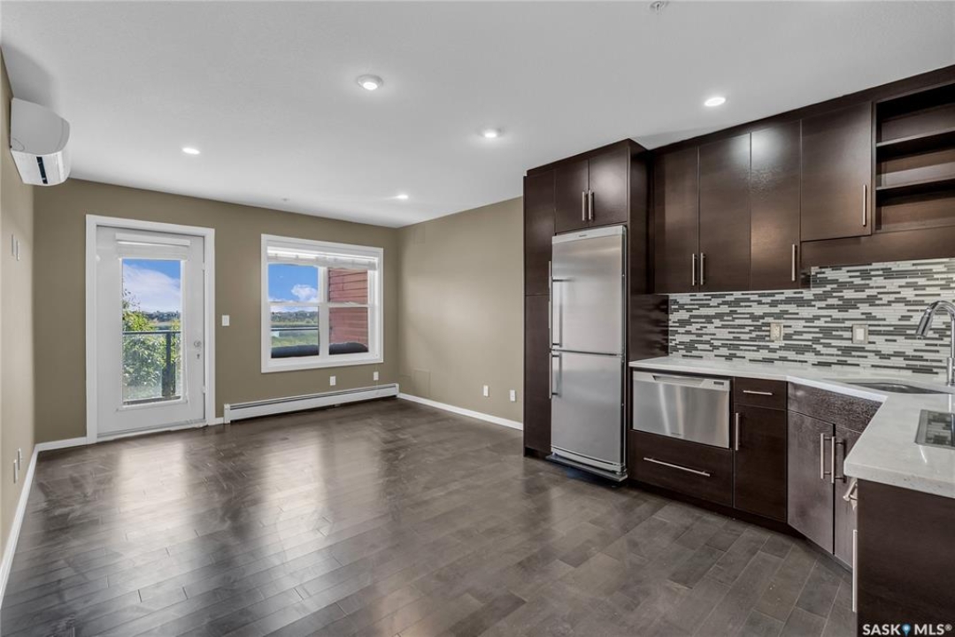 Welcome to London Flats! Perfectly located in Lakewood S.C., this pristine third-floor, one-bedroom home puts you steps from parks, trails, Hyde Park, shopping, medical services, fitness centres, and restaurants. Plus, you'll love the south-facing balcony with peaceful views over the park. The kitchen is a true highlight, featuring sleek quartz countertops, a stylish glass tile backsplash, and high-end appliances. Its bright, open-concept layout flows seamlessly into the living and dining areas, enhanced by hardwood flooring that brings warmth throughout. The spacious bedroom is paired with a full ensuite bathroom, while in-suite laundry, one parking stall, and a balcony with natural gas BBQ hookup add the finishing touches to comfort and convenience.