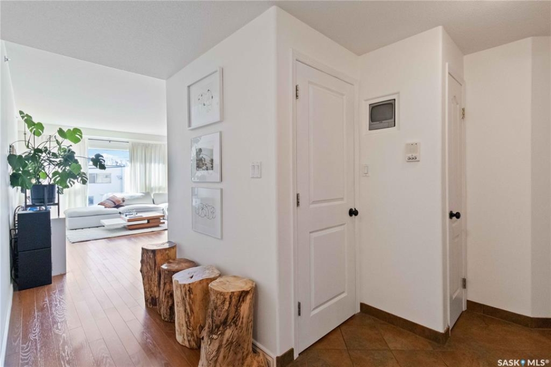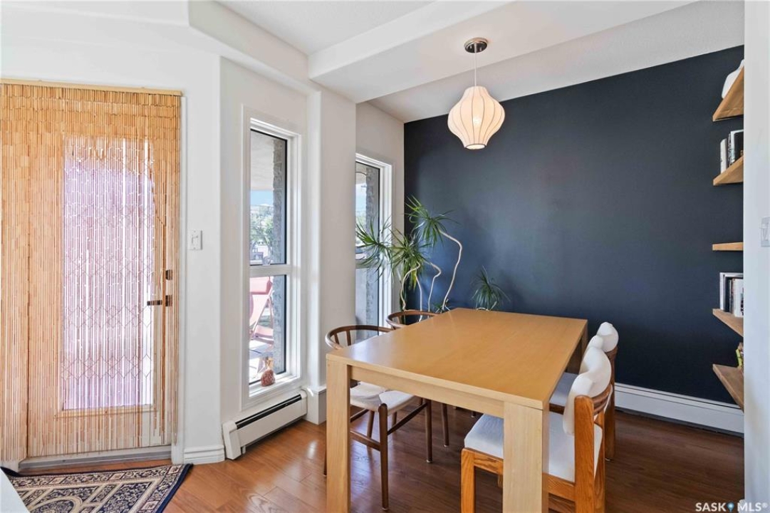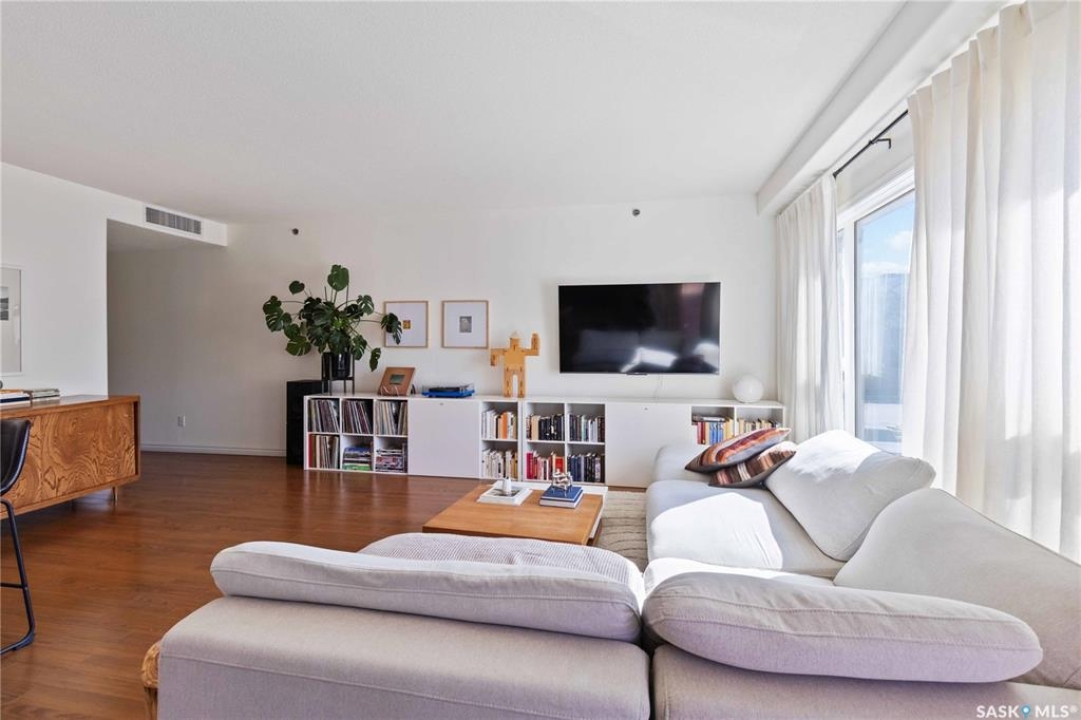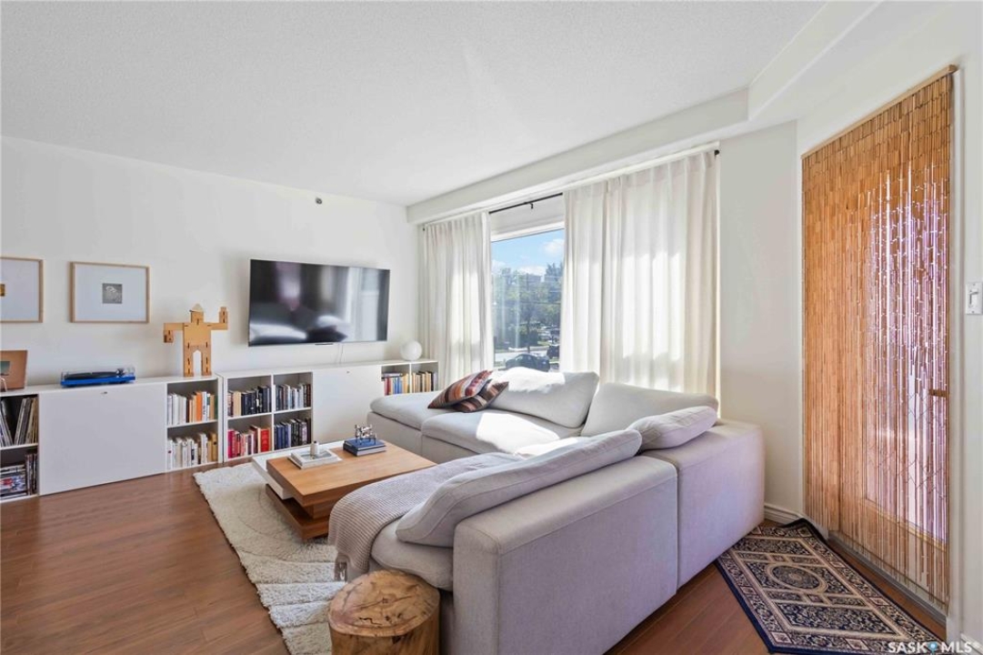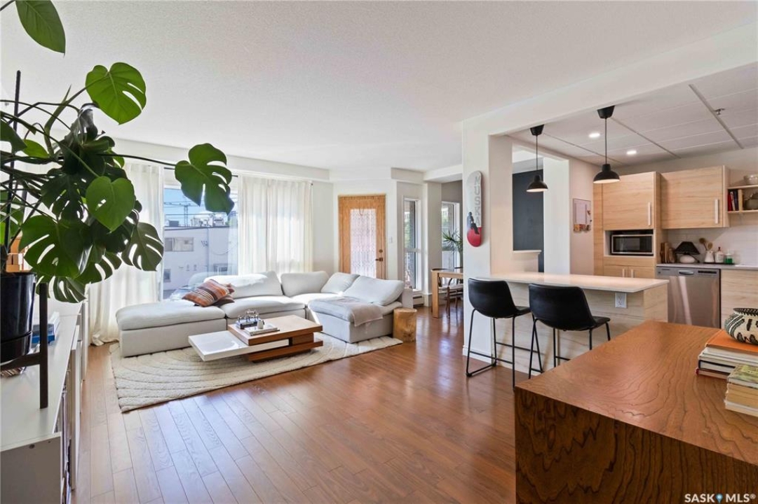 This condo is located on the first floor, with easy elevator access. Inside, you're greeted by a bright and spacious entryway. The unit offers an open-concept living and kitchen area. The kitchen stands out with its quartz-topped island, modern Scandinavian-inspired cabinetry, tiled backsplash, sleek pot lighting, stainless steel appliances. Just off the dining space, you'll find a private west-facing balcony with a BBQ hookup—perfect for enjoying sunny afternoons and glowing evening sunsets. The living room is generously sized, featuring large windows that fill the space with natural light. The primary bedroom includes a full ensuite with a walk-in shower, while the second bedroom (currently used as an office) sits adjacent to the main bath with tub/shower combo. Additional highlights include in-suite laundry, central air conditioning, and the convenience of having the laundry room tucked away near the entry. Recent Chg: 09/22/2025 : NEW : ->A