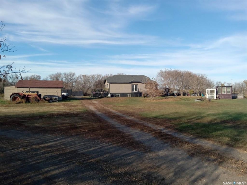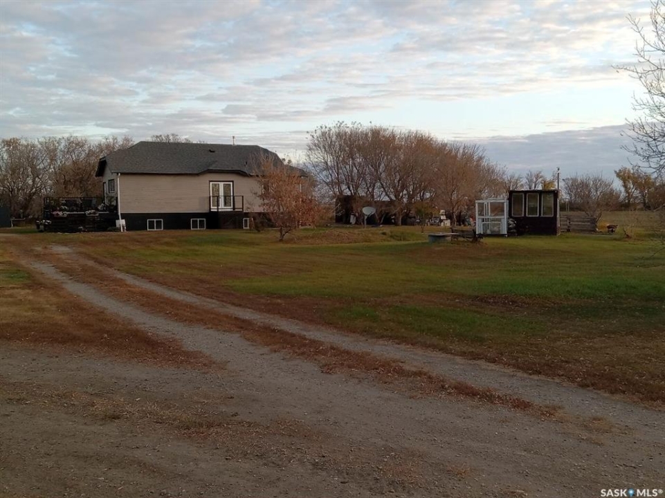 48km to Saskatoon.Very affordable 39 acre acreage East of Delisle and South of Pike Lake highway. 950 sq.ft. bungalow moved to the acreage and placed on a brand new ICF basement. The house has many nice updates yet retains character including glass door knobs and original hardwood floors with 2 bedrooms up and 2 down this comfortable home has fully developed basement. Owner states very good well. Oversized single garage has been used as shop. Neat chicken coop and storage building plus raised garden and still more space. Mature shelter belt surrounding the yard and the 39 acres is quality land with little waste. Currently in grass. The acreage is located in a very quiet private location and can have possession on very short timeline. Call for your viewing appointment now!