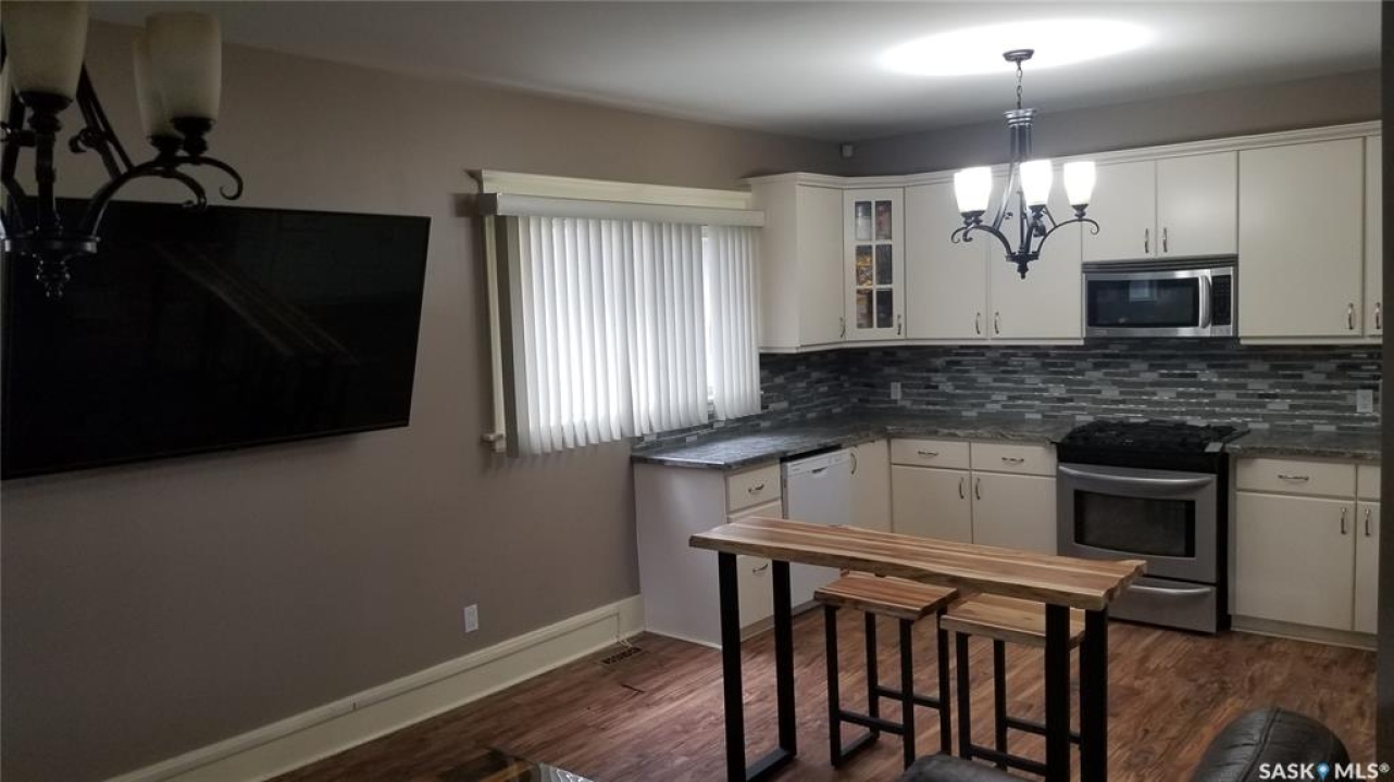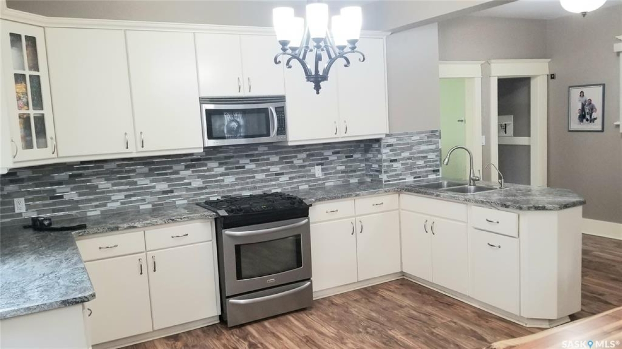 This extensively renovated character home has been super well maintained & is perfect for a first-time buyer or revenue opportunity. The 2 storey, 3 bedroom home is just ½ block to Albert Community School and just minutes to downtown. The spacious main level features an open concept plan with kitchen, dining area, living room, 2-piece powder room & laundry. The original wood staircase leads to the 2nd level with 3 bedrooms & renovated full bath with double vanity. The large yard has been nicely landscaped and has a single detached garage with electrical and garage door (2019) as well as gated parking area for two additional vehicles. Numerous updates to the property include a kitchen renovation with cabinets, countertops, plumbing fixtures, stainless OTR microwave & gas range; updated powder room, updated flooring on main level, newer interior doors, windows & trim, updated exterior doors, newer shingles, front verandah/decking & high-efficiency furnace (new motor in 2019). Contact sales agents for more information, and to schedule viewing.
