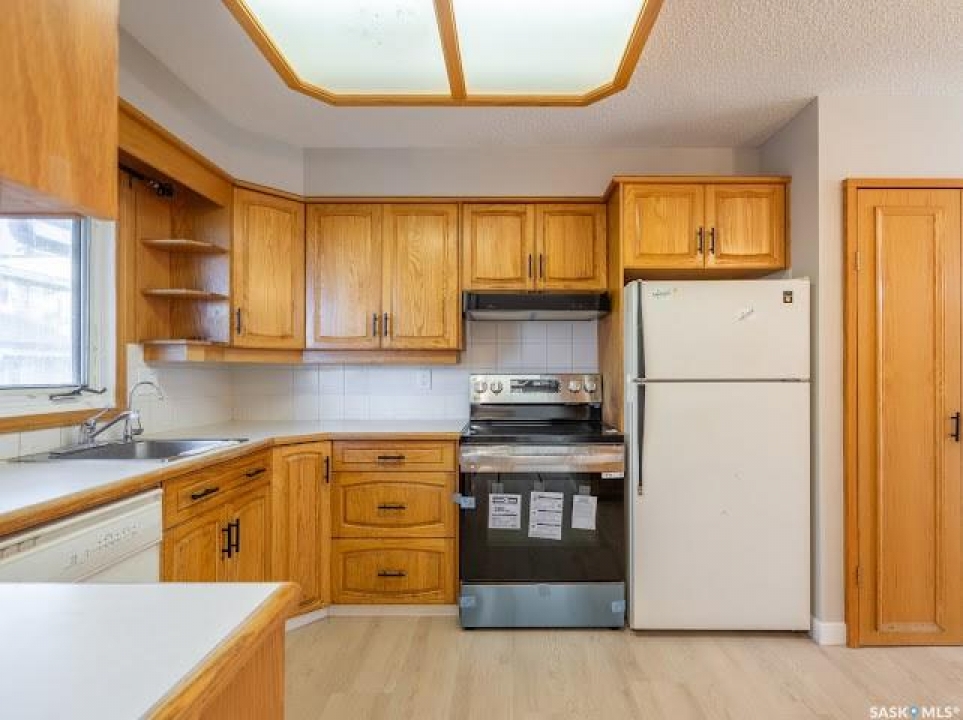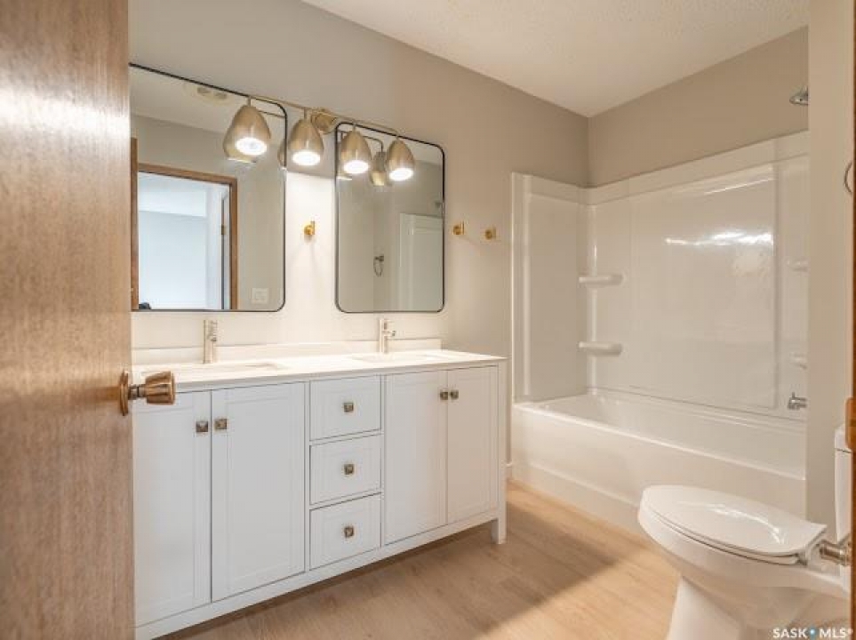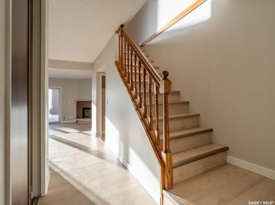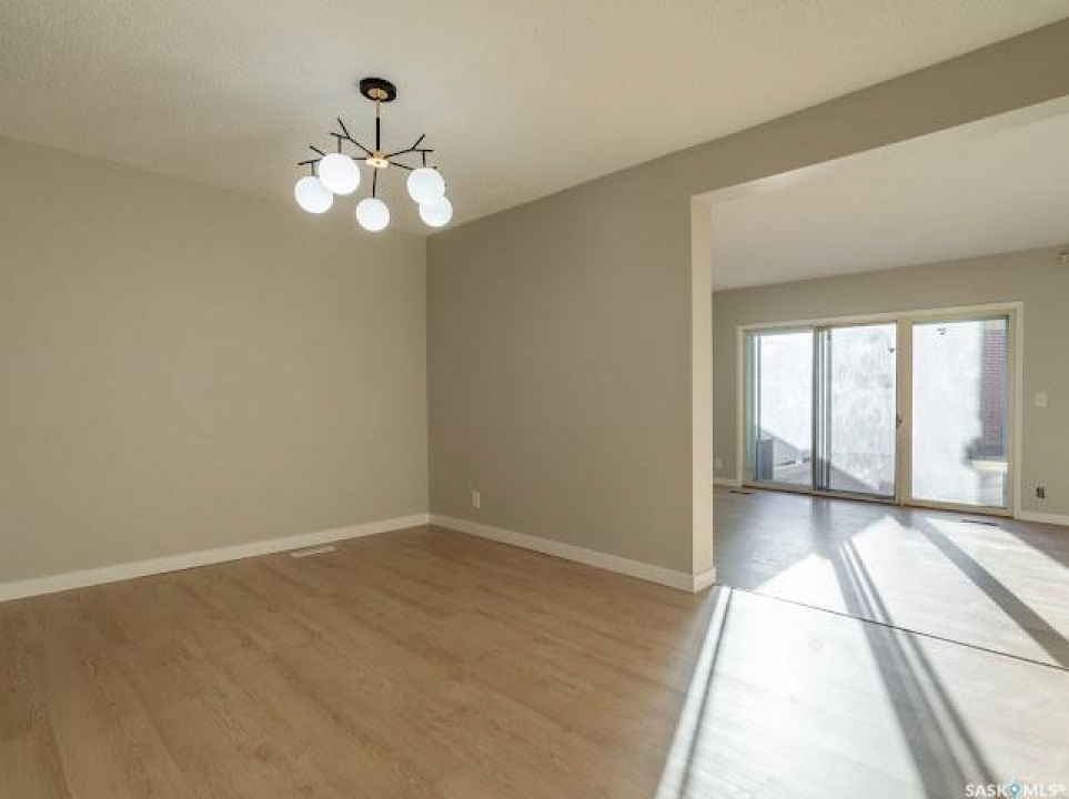 Discover the perfect blend of modern updates and effortless living in the heart of Regina's desirable South End. This beautifully renovated 1,591 sq ft townhouse in Albert Park Estates is a turn-key opportunity, offering a lifestyle of comfort and convenience from the moment you arrive. Step inside to a main floor illuminated by natural light and featuring brand-new, contemporary flooring that flows seamlessly throughout. The inviting living room is centered around a cozy gas fireplace, while patio doors open to a generously sized, fenced patio—your private oasis for summer entertaining. The adjacent dining area, with its classic built-in hutch, is perfect for gatherings. The kitchen is equipped with a sleek new oven and range hood, making meal preparation a pleasure. Upstairs, the home offers a peaceful retreat with three well-proportioned bedrooms. The primary suite is a true haven, featuring double closets and a fully renovated private two-piece en-suite. A second updated five-piece bathroom serves the additional bedrooms, ensuring a fresh and pristine environment for all. The ultimate in convenience is found in the laundry and utility room, which provides direct, interior access to both of your heated underground parking stalls and a separate storage locker. The unfinished portion of the basement presents a blank canvas for future customization. This home is not only a pleasure to show but also offers exceptional peace of mind, bolstered by a new furnace installed in 2022. This major update, combined with condo fees that include heat and water, ensures remarkable efficiency and predictable monthly costs for years to come. Don't miss this opportunity to own a move in ready condo in a well managed complex close to parks, schools, shopping, and transit in Regina's South End.