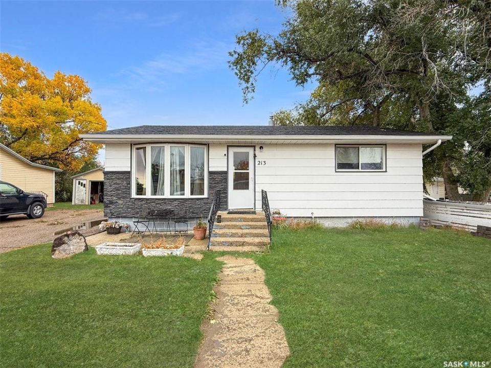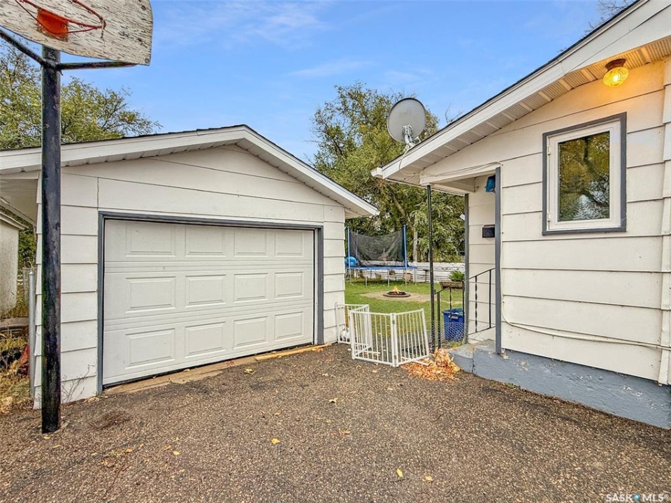 Discover your ideal, move-in-ready home nestled in the charming community of Herbert SK. Situated in a peaceful corner of this quaint town, the property boasts a serene, oversized backyard that borders lush green space, offering a picturesque setting. This meticulously maintained bungalow welcomes you with a bright and airy front living room, complemented by a spacious boot room. The kitchen is designed for both style and functionality, featuring white cabinetry, an eat-in dining area, and ample counter space that overlooks the beautiful backyard. The main floor includes two well-appointed bedrooms and a contemporary four-piece bathroom. Additionally, the back entrance includes a heated boot room with electric heat, providing seamless access to the garage and backyard. The fully functional basement offers a large family room with laminate flooring, a third bedroom, a two-piece bathroom, a generous storage room, and an updated utility room situated along side the laundry facilities with more storage options. Recent upgrades include an energy-efficient furnace installed in 2024, an updated water heater in 2022, a 100 amp service panel, and a brand-new sewer and water line extending to the street. The main floor is adorned with modern paint colors and flooring, PVC windows, and a bright and inviting atmosphere. The expansive yard features a single car garage, a covered pergola, raised garden planters, a shed, a built-in fire pit area, a patio at the rear, and a long asphalt driveway to accommodate all your needs. Located in Herbert, a sought-after small town, offering access to K-12 schooling, medical care, grocery stores, pharmacies, restaurants, a pool, a rink, and much more. This cozy home is truly ready for you to move in and enjoy. Seize the opportunity to experience this remarkable property today.