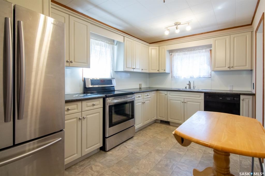 Welcome to 1419 Ave E North, a beautifully renovated 2-story home boasting 1,230 square feet of living space, complemented by 2 car detached garage. Ideally situated in the heart of Mayfair, this property is mere steps away from schools, parks and shopping hubs. The main floor features a living room, a closed-concept kitchen and spacious dining room overlooking the sun-drenched backyard, as well as one bedroom. The second floor reveals two generously sized bedrooms, while the newly developed basement offers the perfect space for family time. recent upgrades include newer main and side doors, a fully renovated basement, air conditioning, newer patio(2024) and an updated single garage converted to double garage. It's vacant, easy to show.