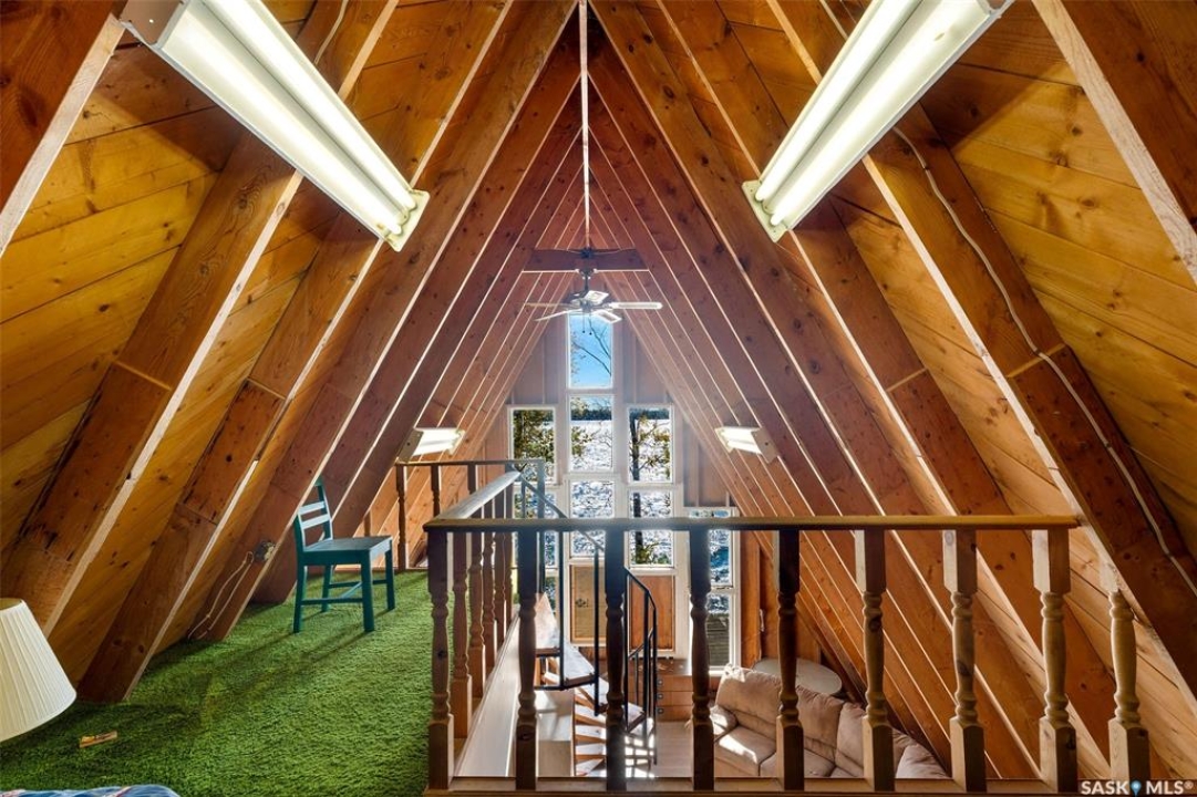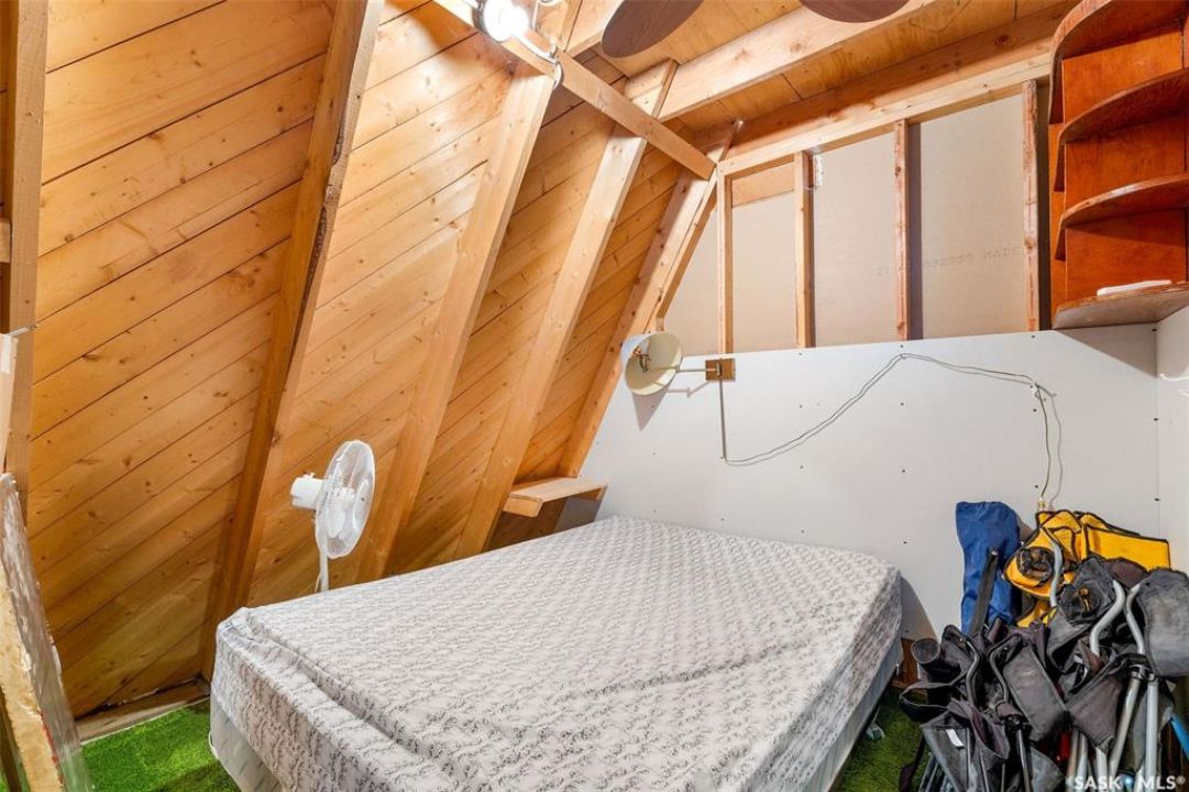 Have you been dreaming of a lakefront cabin and summer nights around the campfire but need something that won't break the bank? Lakefront Lot 5 at Lake Charron Regional Park might be exactly what you're looking for! This charming 600 sq. ft. lakefront cabin, built in 1984, features a unique A-frame design and a waterfront deck complete with a firepit area perfect for enjoying peaceful evenings with family and friends. Located just 13 km east of Naicam, SK, you'll be close to shopping amenities including a grocery store, meat shop, and the beautiful Naicam Golf Course, a welcoming 9-hole course ideal for the whole family. Lake Charron Regional Park offers a tranquil setting with plenty of amenities, including numerous campground sites, a large group pavilion, an upgraded shower and bathroom facility, and a playground for the kids. Inside the cabin, you'll find an open-concept layout with a spacious living room that flows into an eat-in dining area and functional kitchen. The main floor also features a large bedroom space and a designated area for a bathroom. Upstairs is a loft area with a couple extra beds, the perfect place for the kids to stay! While the cabin currently has no sewer or water services, a bathroom area is framed in and ready for future installation if desired. This is your opportunity to own an affordable lakefront getaway in a family-friendly park setting. Come take a look today!