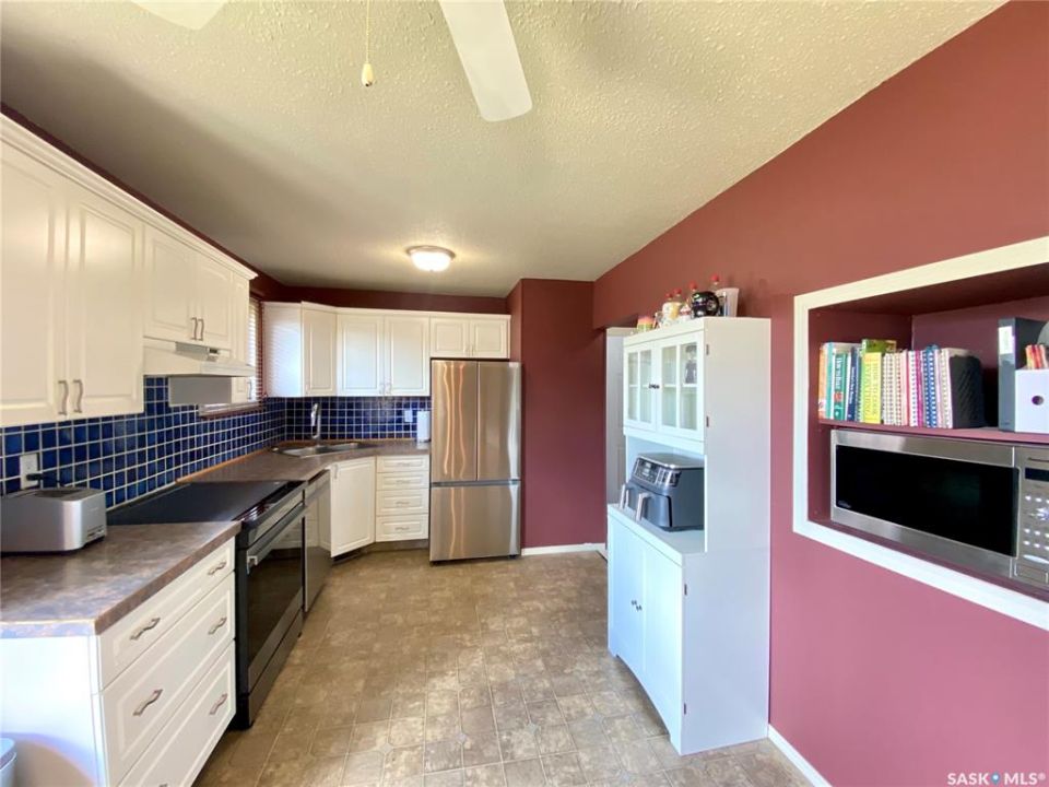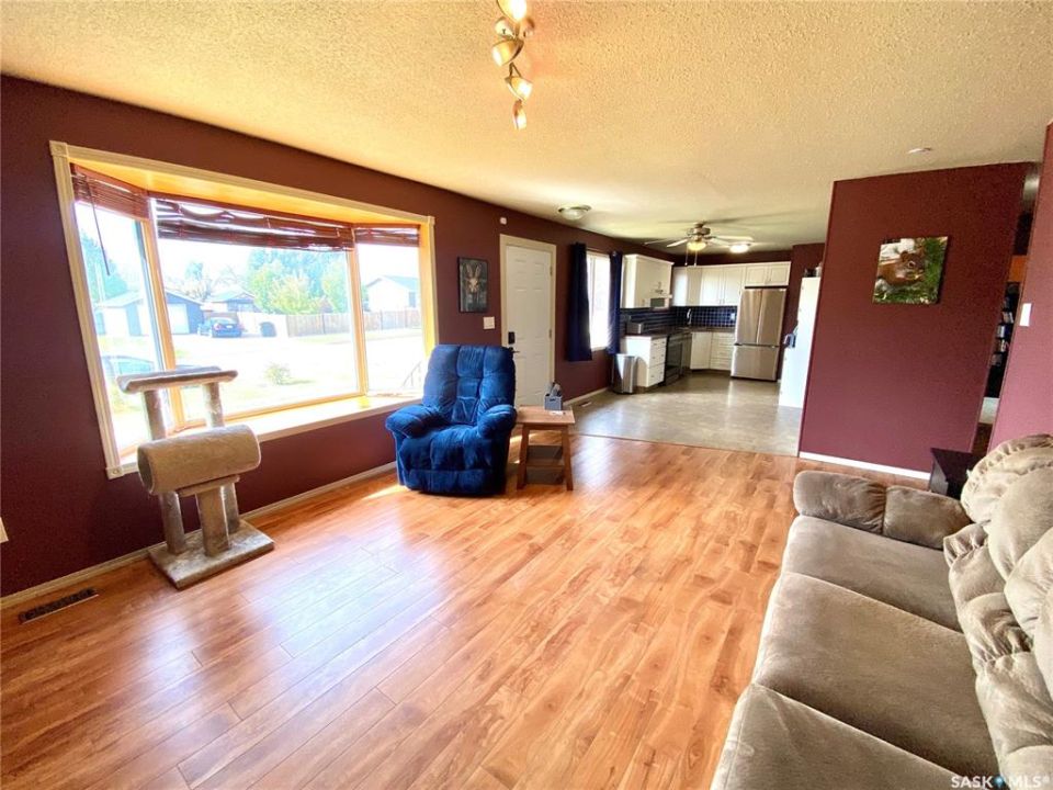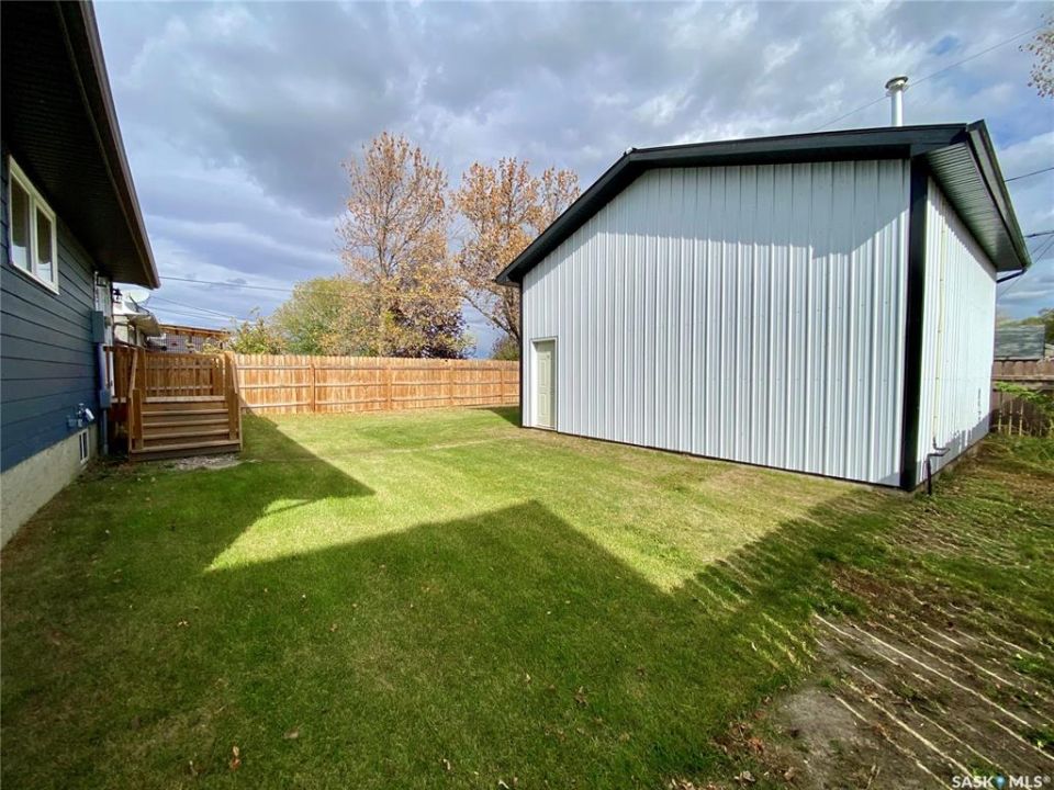 Step inside this 946 sq. ft. home that radiates personality, colour, and comfort in every corner. The open-concept kitchen and living room create a welcoming space filled with natural light, highlighted by a lovely bay window — perfect for your favorite plant babies. A former third bedroom on the main floor has been opened up to create a spacious dining area with patio doors leading to the backyard, but could easily be framed back into a bedroom if desired. Recent updates make this home move-in ready: new appliances, updated HVAC with new furnace, A/C, and air filtration system, hardy board siding, soffits, fascia, eaves, and some refreshed flooring. The vibrant paint tones throughout add warmth and personality. Downstairs, you'll find a cozy finished basement with a large rec room, third bedroom, and room to add another if you wish. The backyard is partially fenced and features a new deck built just last year — perfect for morning coffee or evening BBQs. And for the hobbyist or entrepreneur, the 24x24 heated shop is a dream come true — fully insulated, with 10' doors, 12' ceilings, its own power and gas heat, a floor drain, and plenty of light. Plus, an upgraded electrical panel, new wiring, and a modern security system (with cameras, recorders, gateway, and server rack) provide peace of mind and connectivity. Nestled in the friendly community of Bienfait, just minutes from Estevan, you'll love the small-town atmosphere, excellent K–12 school, local amenities, and the sense of pride and connection that comes from living in a place where neighbours still wave hello.