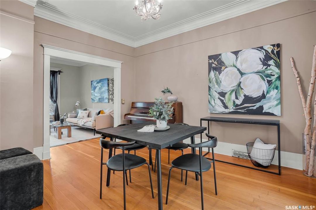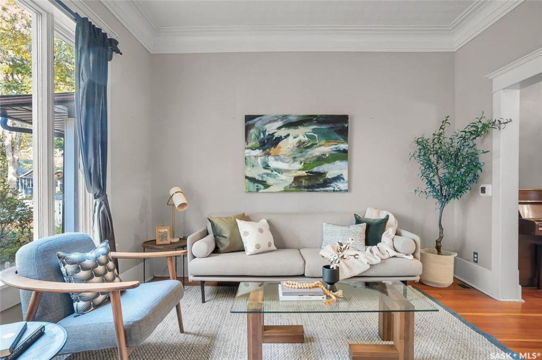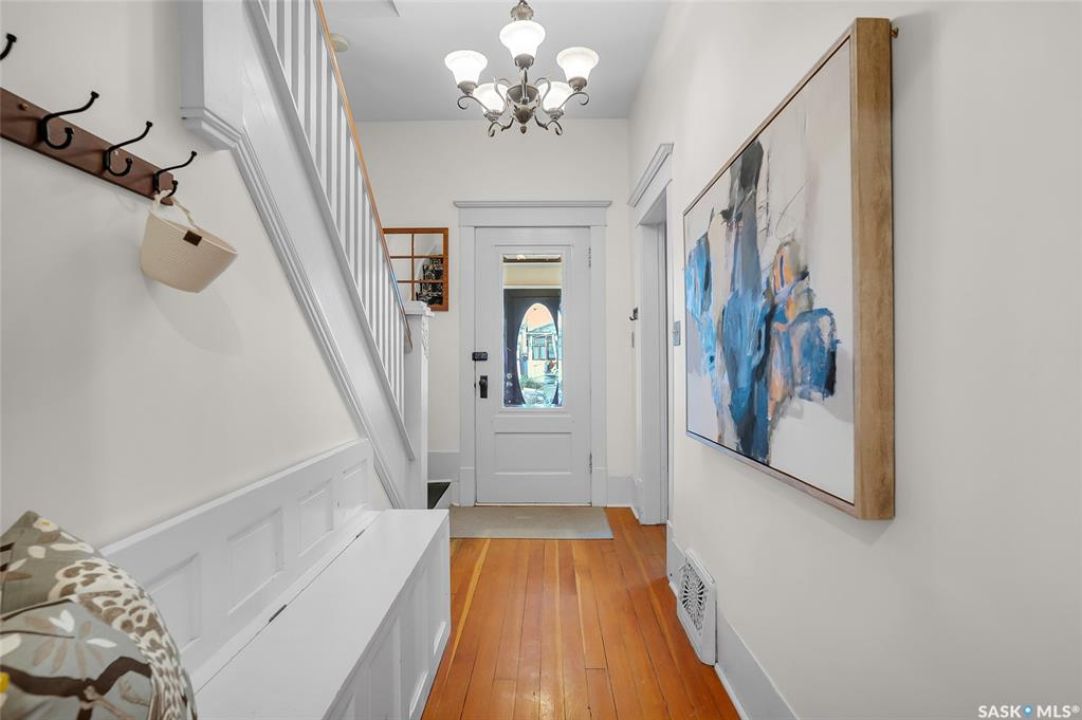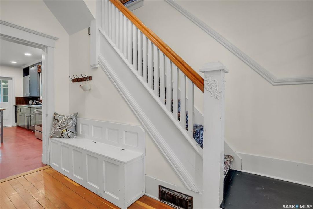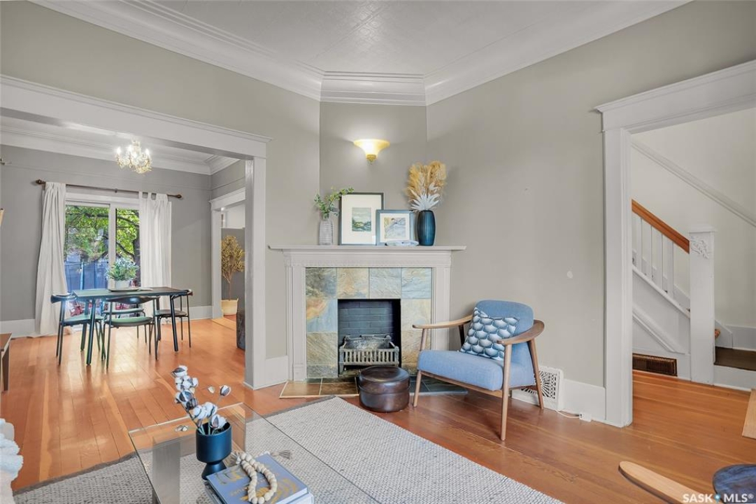 Welcome home to timeless charm in Buena Vista! Just a half block from Buena Vista Park, this century-old gem sits among mature trees and friendly neighbors, offering that perfect blend of history, comfort, and community. The sellers have cherished this home for its canopy of trees and unbeatable location within walking distance to the Broadway District and Downtown. The character is felt the moment you turn the corner onto this quiet, tree-lined street while its striking red exterior immediately draws you in. Inside, the welcoming porch sets the tone for what's to come — a home where time slows down and every detail tells a story. The charming entryway features a built-in bench and original staircase, setting off the warmth of the home. The living and dining rooms flow seamlessly together with high, detailed ceilings while the beautifully preserved hardwood floors reflect the artistry of a bygone era. The dining area opens onto a private back deck — perfect for gatherings — while the kitchen offers modern functionality with newer stainless-steel appliances with plenty of space to cook and create as well as direct access to the backyard. Upstairs, the primary bedroom provides not only two closets but also a unique bonus nook ideal for reading, a nursery, or creative space. Two additional bedrooms, each with their own character, and a full four-piece bathroom complete this level. Behind the charm lies peace of mind — with updated mechanical systems, newer roof, insulation and ventilation, as well all lead pipes have been replaced. Step into the established backyard and you'll discover a gardener's delight — bursting with perennials, Saskatoon berries, strawberries, and sour cherries — creating a private oasis to enjoy . This timeless Buena Vista home offers quick possession and the chance to settle in before the snow falls. It's more than a house — it's a piece of history, ready for its next chapter.