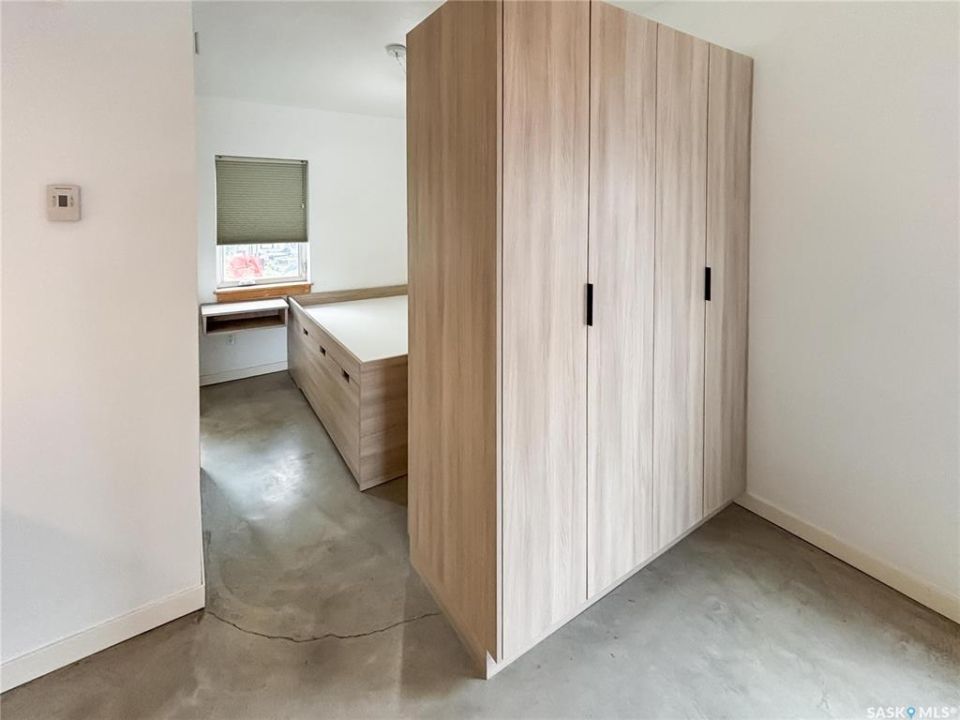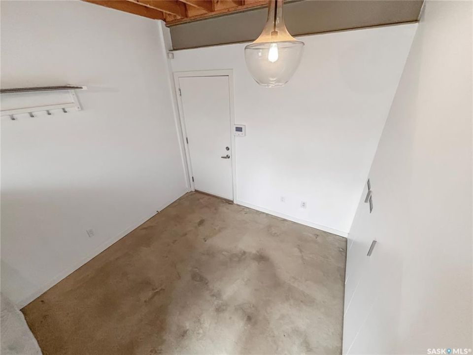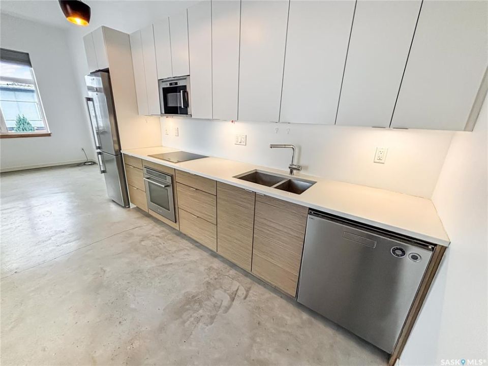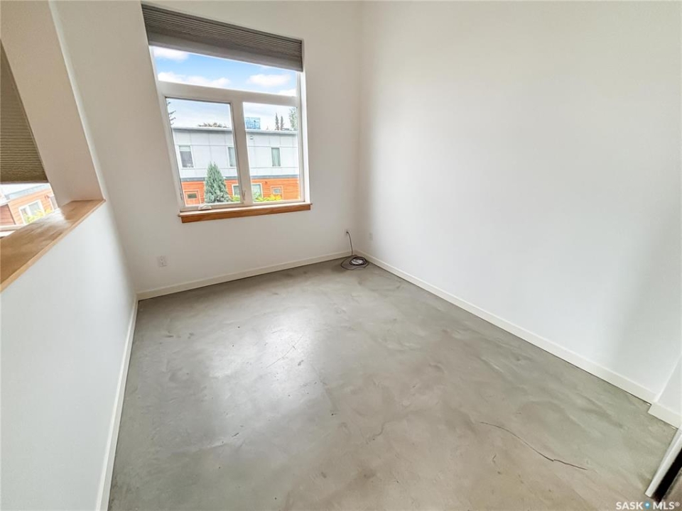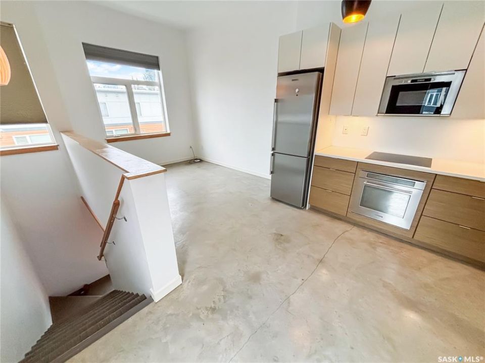 Enjoy urban living at its best in this beautiful loft style studio townhouse in the heart of Saskatoon. The owners designed cabinets for under the stairs for smart storage with a clean look. A custom wardrobe and platform bed with plenty of storage. Upgrades include laundry on the main floor, a Superior Cabinets custom kitchen with Caeserstone countertops, upgraded appliances, under-counter lighting, and a range fan with outdoor ventilation. Graber blinds and George Nelson bubble lamps. Built in 2013, this bright and trendy unit features modern amenities including in-floor radiant heat and private single attached heated garage. This 2-storey townhome faces East overlooking a beautiful, gated courtyard with green space, garden planters, and fruit bearing trees and shrubs. Upon entry, you are greeted by the main floor den/laundry with 9' ceilings, perfect for a home office or gym. The second floor loft is bright and spacious with a ceiling height over 11ft, extended kitchen, dining, living, and bedroom space in addition to the 3pc-bath. As a self-managed development, the condo fees are $305/month which includes heat, internet, building and common area maintenance, garbage, sewer and water. Pets are allowed with approval from the condo board. The location is exceptional with access to the many restaurants, cafes, shops, parks, and river trails that Riversdale provides. This unit is a perfect fit for singles, couples, retirees, or students looking for an affordable and secure place to call home. Please note that this is a studio/bachelor loft townhome and that the 2nd floor bedroom is not enclosed, but rather a bedroom area.