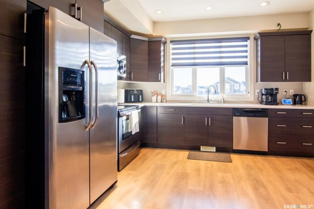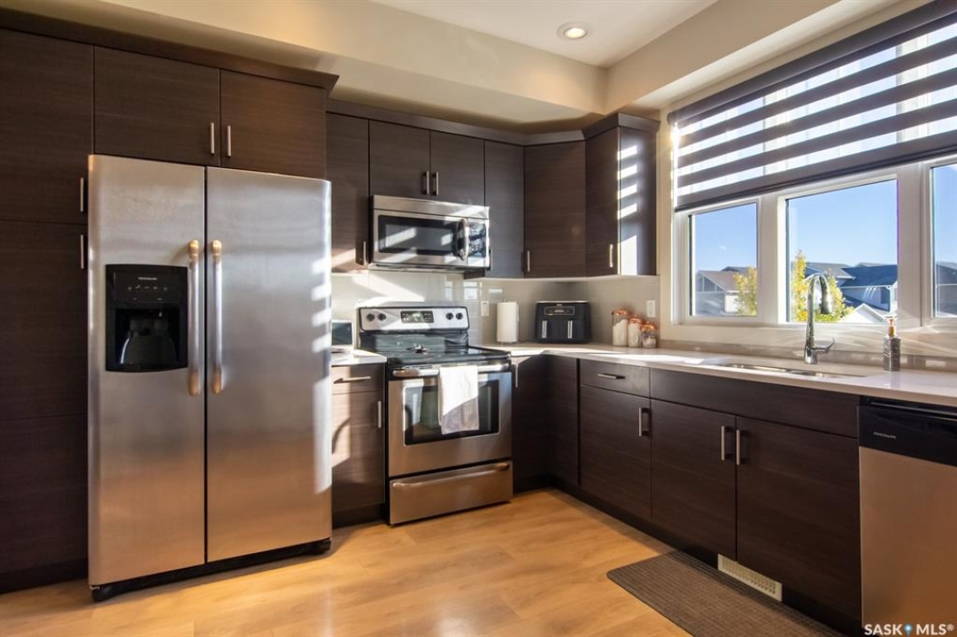 Welcome to 709 Meadows Boulevard! This beautiful three-story townhouse is located in the highly sought-after community of Rosewood. The main floor features a den/bedroom, three piece bathroom with stand up shower, and access to your single car, heated garage. The second floor has a modern kitchen with an open layout flowing into the large living area. The kitchen features ample storage, modern cabinetry, pantry space, quartz counter tops, under mount sink, and stainless appliances. The private deck is great for barbecuing, enjoying your morning coffee or spending time with friends and family. The top floor has 2 spacious bedrooms and a 5-piece bath with dual vanity and separate water closet. This neighborhood has all the amenities you could desire, including walking paths, parks, schools retail shopping, and Costco. This very well maintained condo must be seen to be appreciated. Call to book your viewing today!