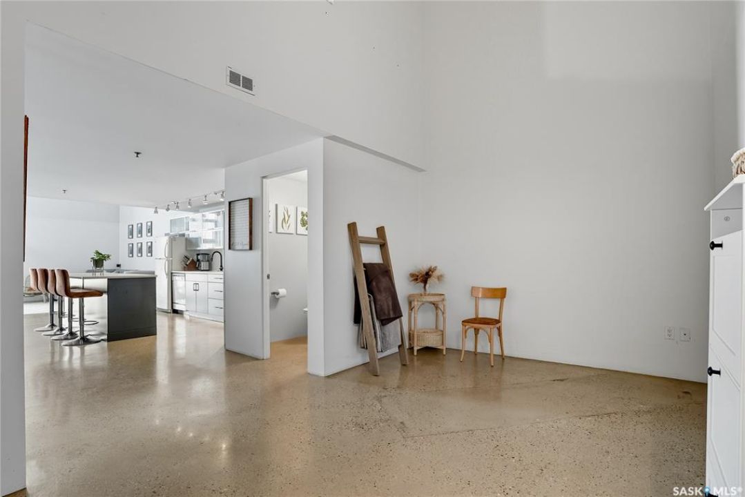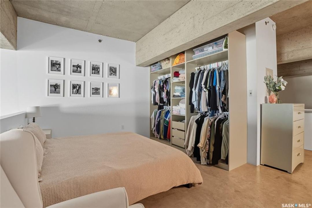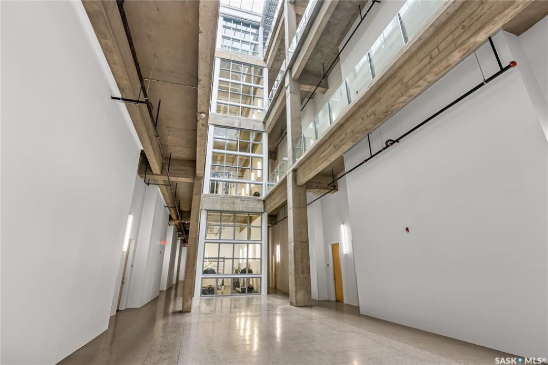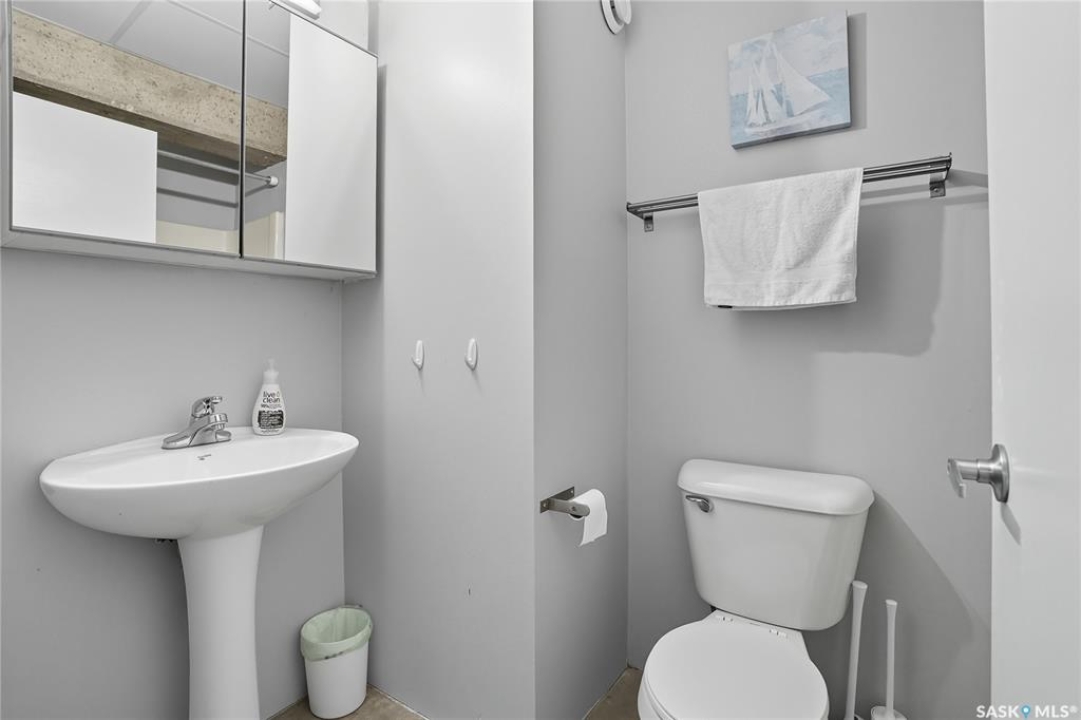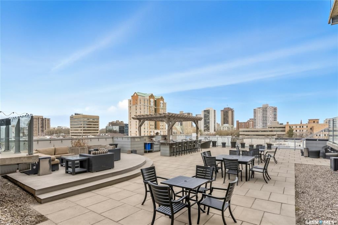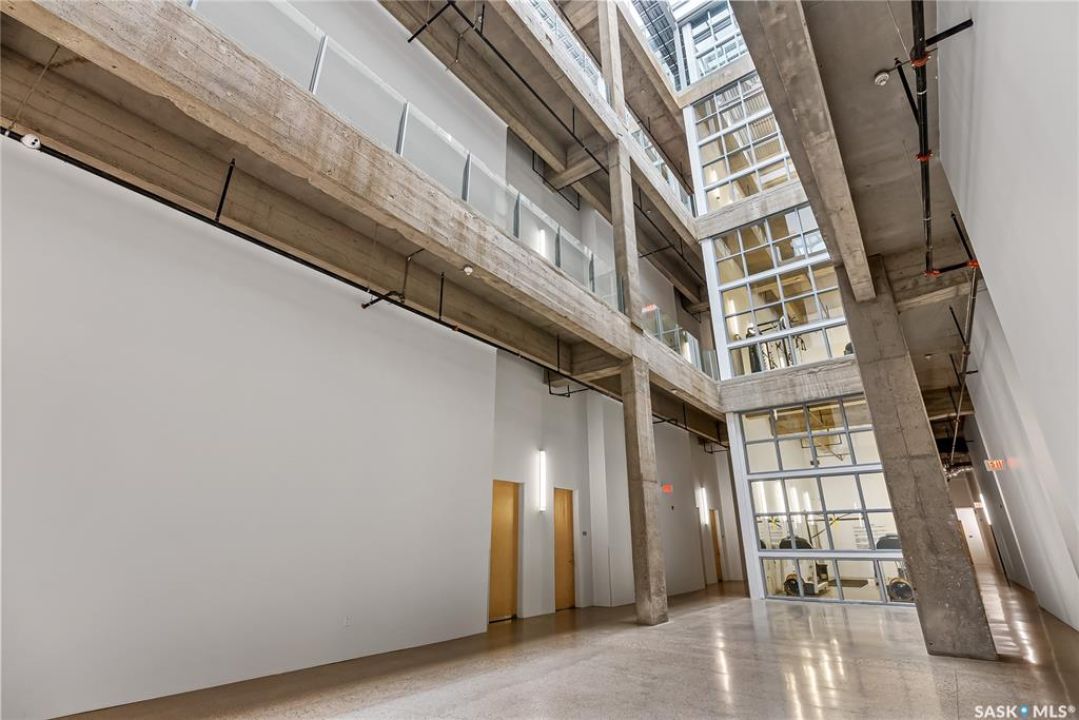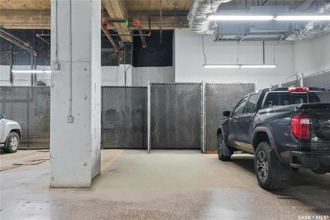 Welcome to this stunning East-facing loft located in the heart of Saskatoon's Central Business District. With 1,100 square feet of free-flowing living space, this 1-bedroom, 1.5-bath unit combines industrial charm with modern finishes, offering the perfect balance of comfort, style, and urban convenience. Soaring ceilings and a large window floods the space with natural light, enhancing the airy, open-concept layout. The kitchen has been beautifully upgraded with new quartz countertops and an oversized island—ideal for both entertaining and everyday living. The spacious living and dining areas flow effortlessly, creating a versatile space for relaxing or hosting. The large bedroom features a 4-piece ensuite, while a separate half-bath adds convenience for guests. Located directly across from the buildings fitness centre and rooftop terrace access, this unit offers unmatched access to some of the building's best amenities. The building itself is a standout in downtown living, with a modern lobby, rooftop terrace complete with a pergola-covered BBQ area, fitness centre, elevator, and heated underground parking. Live just steps from some of Saskatoon's best restaurants, coffee shops, shopping, nightlife, and the riverbank. Whether you're a professional looking for a stylish downtown home or an investor seeking a high-demand location, this loft offers exceptional value and a lifestyle that's hard to beat.