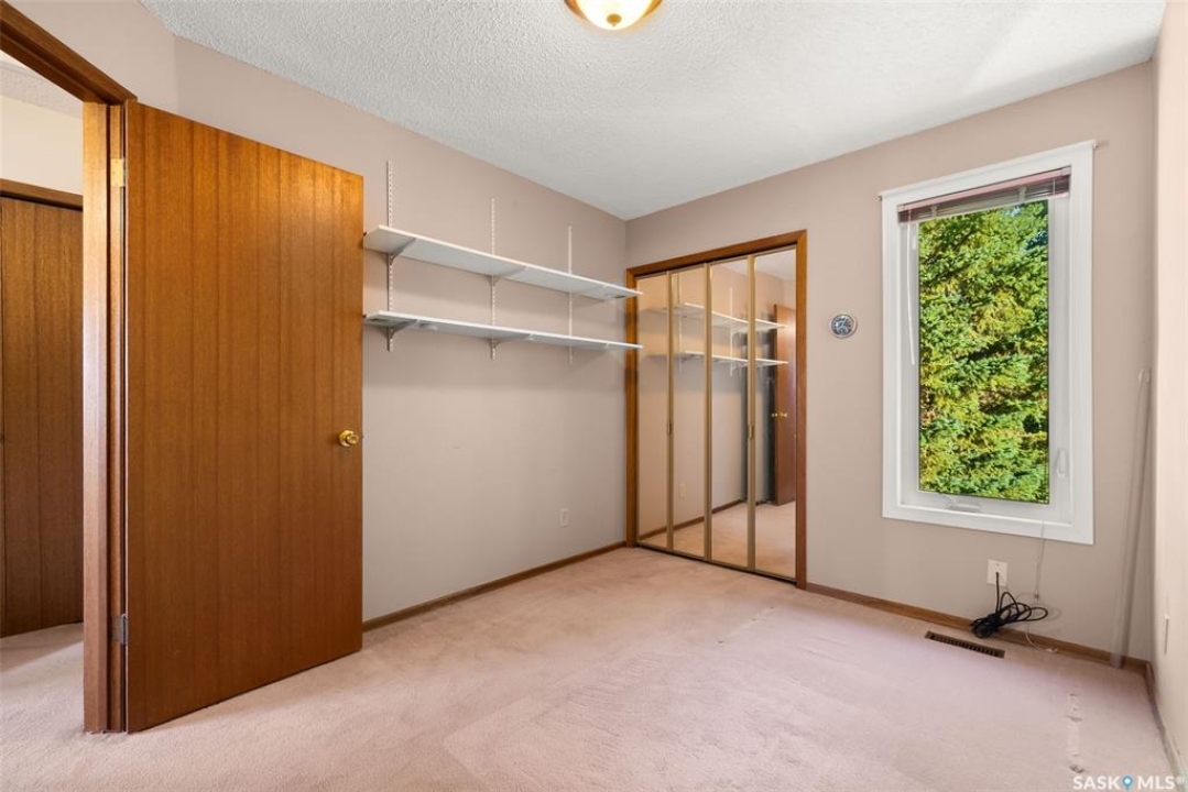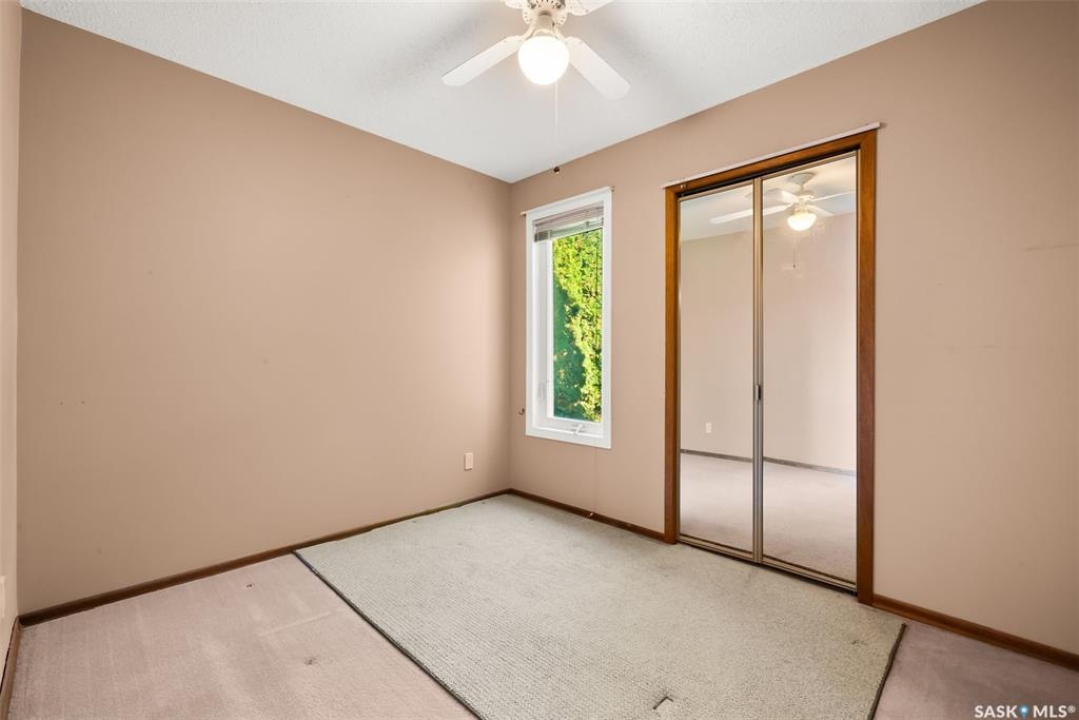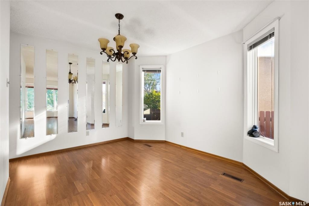 Welcome to 2938 Huget Place located in a quiet bay location in Gardiner Heights in the desirable east end. This 1673 sq ft 2 storey split has a Tudor style street appeal with a double attached garage and is nestled among mature trees. Upon entry the foyer leads to the large living room with a huge bay window flooding this area with light and it is open to the formal dining room. Next is the kitchen with stainless steel appliances and room for a casual eat in dining area with a garden door to the sunroom. Next, step down to the sunken family room with a fireplace. On this floor we have a 4th bedroom that could be an office, a bathroom with laundry and direct entry to the garage. Upstairs we have 3 bedrooms, the primary has a 3 piece ensuite and walk in closet and the other 2 bedrooms are a good size. The family bathroom completes this floor. Down to the basement we have a huge rec room with a "stage", a possible second kitchen with a sink, a den and lots of storage areas. Outside the yard is fully fenced and mature with a shed and garden area. Furnace and windows replaced. This is a perfect family home close to schools, parks and all essential amenities.