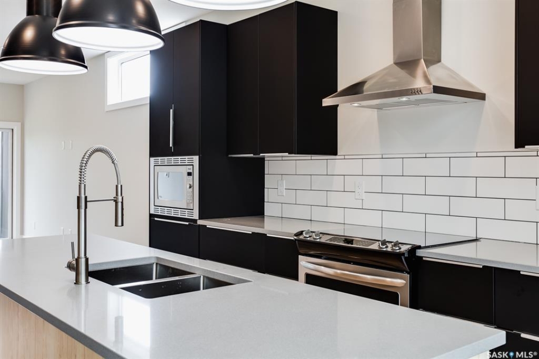 Very modern design and decor throughout. Numerous high end features in this home not usually seen in Caswell Hill. The main floor features a stunning open concept with a beautiful kitchen showcasing a large island with quartz countertops, stainless-steel appliances, a modern tile backsplash, and an abundance of storage. The bright living area is framed by expansive front and rear windows that flood the space with natural light, creating an inviting and airy atmosphere. Upstairs, you'll find three spacious bedrooms with vaulted ceilings. The primary suite includes a walk-in closet and a gorgeous four-piece ensuite. The secondary bedrooms are generously sized, complemented by an additional four-piece bath and convenient second-floor laundry. The lower level offers a fully developed suite mirroring the main floor's modern style. It includes its own private entrance, laundry, and heating system—ideal for guests, extended family, or additional revenue.Situated in the vibrant community of Caswell Hill, this modern home backs directly onto the area's new economic and cultural hub, which is already well underway.