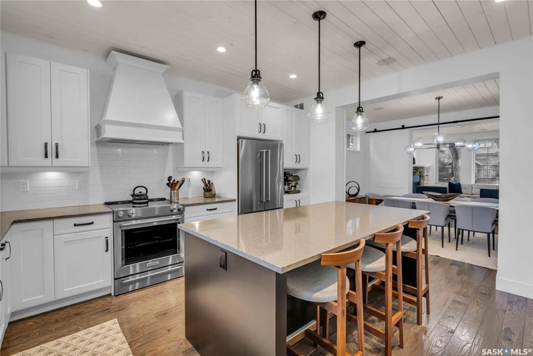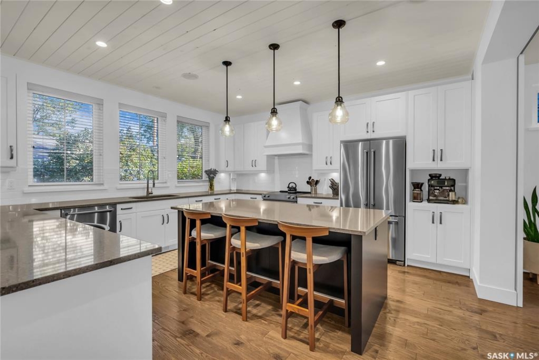 Located in Nutana, this beautifully designed 2 ½ storey home is just steps from the Meewasin Valley, Broadway Avenue, and the University of Saskatchewan. With 4 spacious bedrooms and 4 luxurious bathrooms, this home is designed for family living with the luxury finishes you love. The sun-filled kitchen, custom 8-foot barn doors, and open-concept living areas create an inviting space for both everyday living and entertaining. A flexible top-floor family room and fully developed basement with custom cabinetry offer flexible spaces for relaxation and entertainment. The attention to detail doesn't end there - the the professionally landscaped backyard adds the finishing touch to this exceptional home.