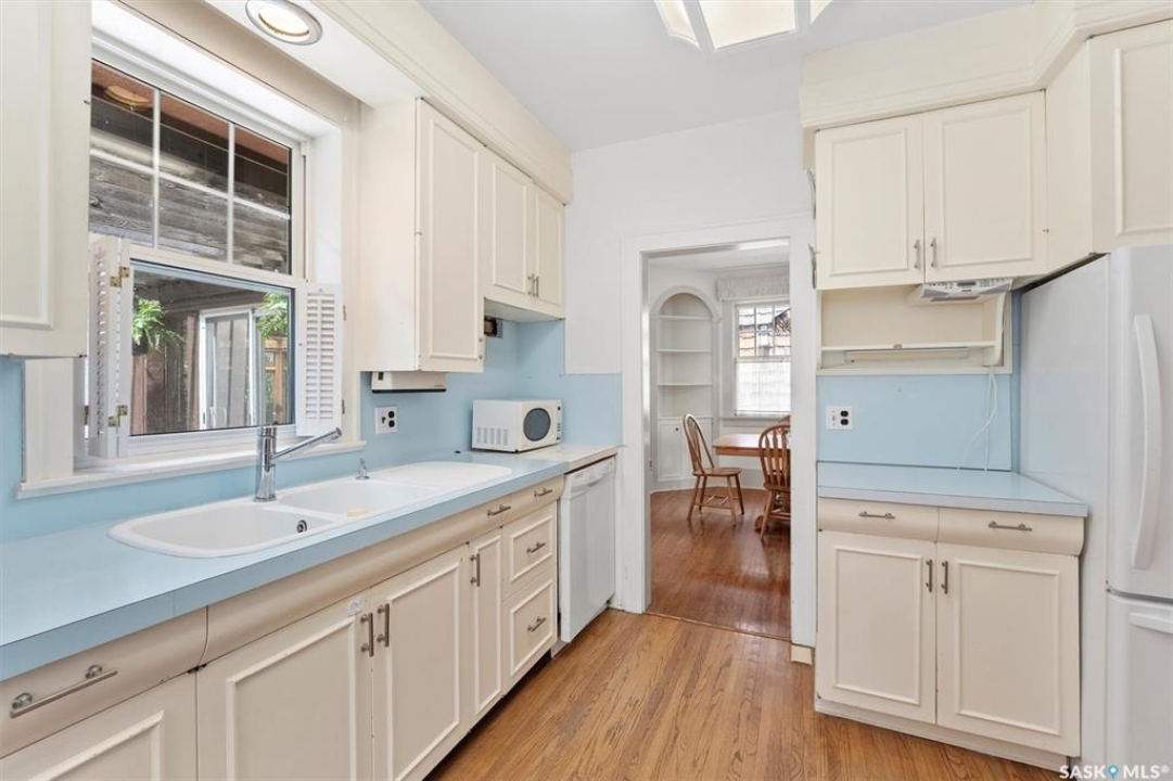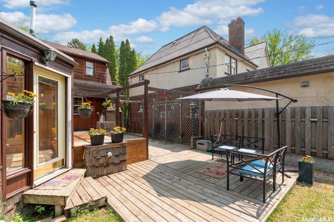 Welcome to 811 9th Avenue North, a timeless character home in the desirable City Park neighbourhood. Built in 1935, this two-storey residence has been thoughtfully maintained, offering 1,670 sq. ft. of living space filled with warmth and charm. With four bedrooms and three bathrooms, the home blends original character with modern comforts in a prime location close to downtown and amenities. Inside, the main floor is highlighted by hardwood flooring, beautiful stained-glass windows, and elegant light fixtures that showcase the home's vintage appeal. A spacious living room and dining area provide plenty of space for gathering, while the kitchen offers a bright, functional layout with the potential to personalize to your taste. The sunroom is a true highlight, perfect for enjoying year-round natural light. For added character, the office includes exposed brick detailing, creating a unique and inviting workspace. Upstairs, you'll find three comfortable bedrooms including a generous primary suite, while the partially finished basement adds flexibility with a den, 3-piece bath, laundry area, storage, and a separate side entry—opening the door for future suite development. Cozy evenings are easily enjoyed with two gas fireplaces adding warmth and comfort throughout the home. The outdoor space is just as impressive. The large backyard offers mature trees, a spacious deck, and two sheds, creating both privacy and function for everyday living. With Denovo triple-pane windows on the east side, the home balances efficiency with its preserved character. While there is currently no garage, back and side access offer ample space should you wish to build. Located in the heart of City Park, this property combines architectural charm, a family-friendly layout, and a location that's hard to beat. Book your private showing today and experience the character and lifestyle that 811 9th Avenue North has to offer.