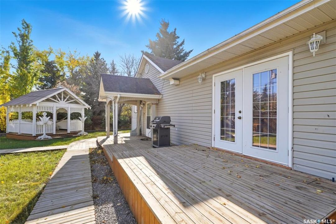 Enjoy quiet, small town living in this bungalow situated on a massive lot in Radisson! This spacious home offer over 1,500sqft with a bright and inviting living room, large oak kitchen and adjoining dining room. The primary bedroom has plenty of space for your furniture and includes a walk-in closet and 3 pc ensuite, as well as garden doors to the patio. Two additional bedrooms, a full bath and laundry complete the main floor. The basement has room for all your family's needs - whether that's play space, rec room or family room for movie nights - as well as lots of storage and a 2pc bath. The double attached garage is 24x36 with a built-in workshop at the end, and an additional detached 14x20 garage. Outside you'll love all the space this peaceful property provides, with an expansive deck, gazebo and garden area, and mature landscaping. Give your favourite realtor a call to set up your showing!
