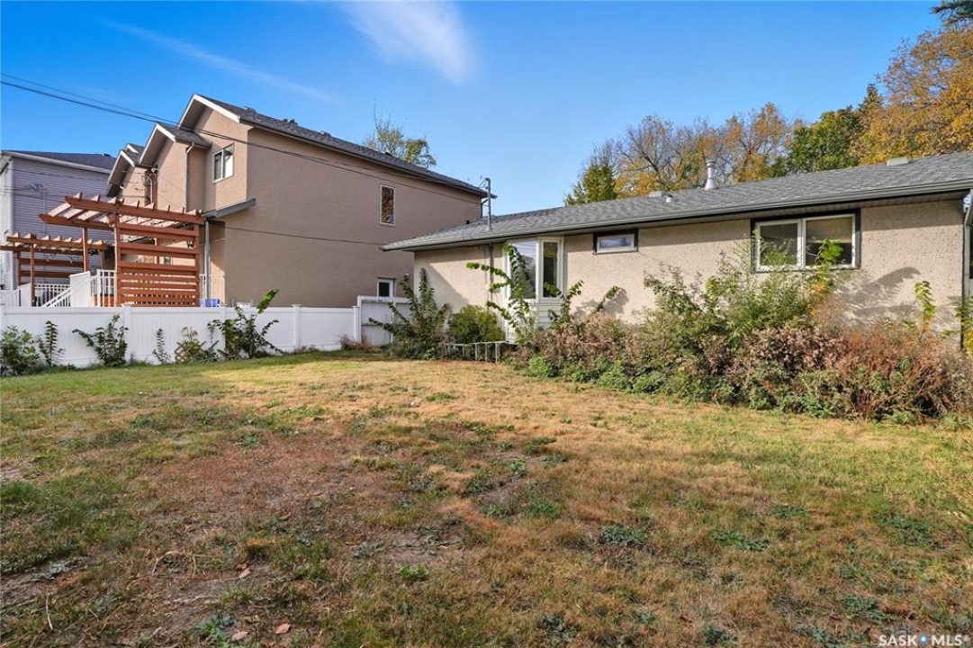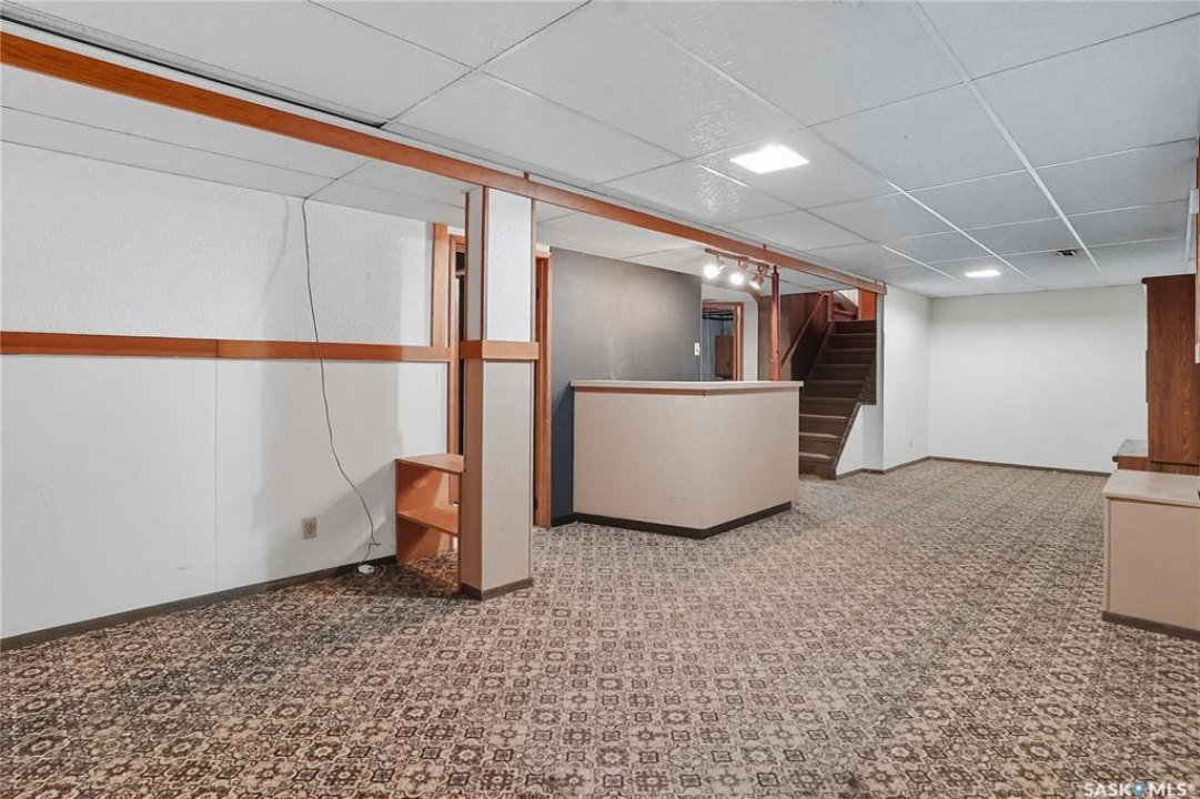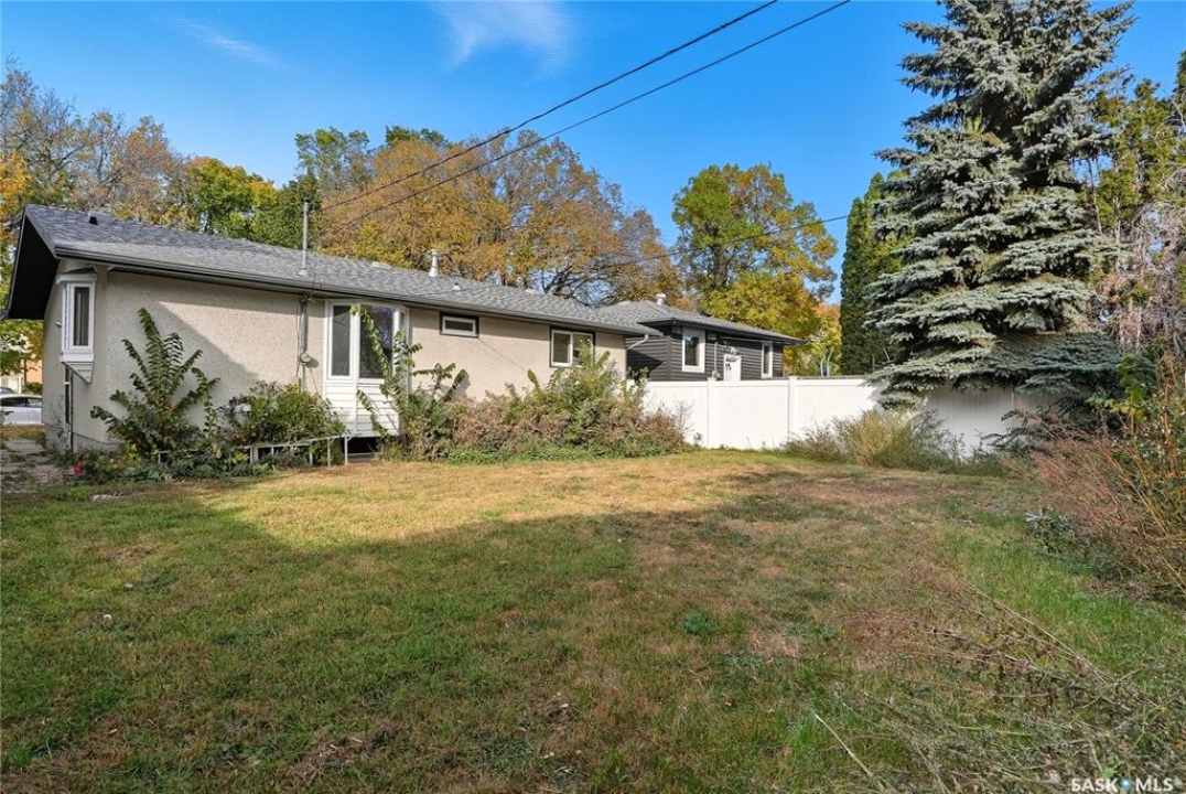Attention renovators, investors or anyone looking to create their dream home in a prime location! Situated on a 50' x 114' ft lot, this property boasts an oversized double detached garage. Step inside to a spacious living room that flows into the dining area and kitchen. Down the hall, you'll find a 4-piece bathroom and three bedrooms. The basement offers additional living space with a built-in bar area, another bedroom, and a 2-piece bathroom. A large utility and storage area complete with laundry provides plenty of functionality. Equipped with a separate side entrance, this home offers endless potential to create value in the highly sought-after neighborhood of Haultain.