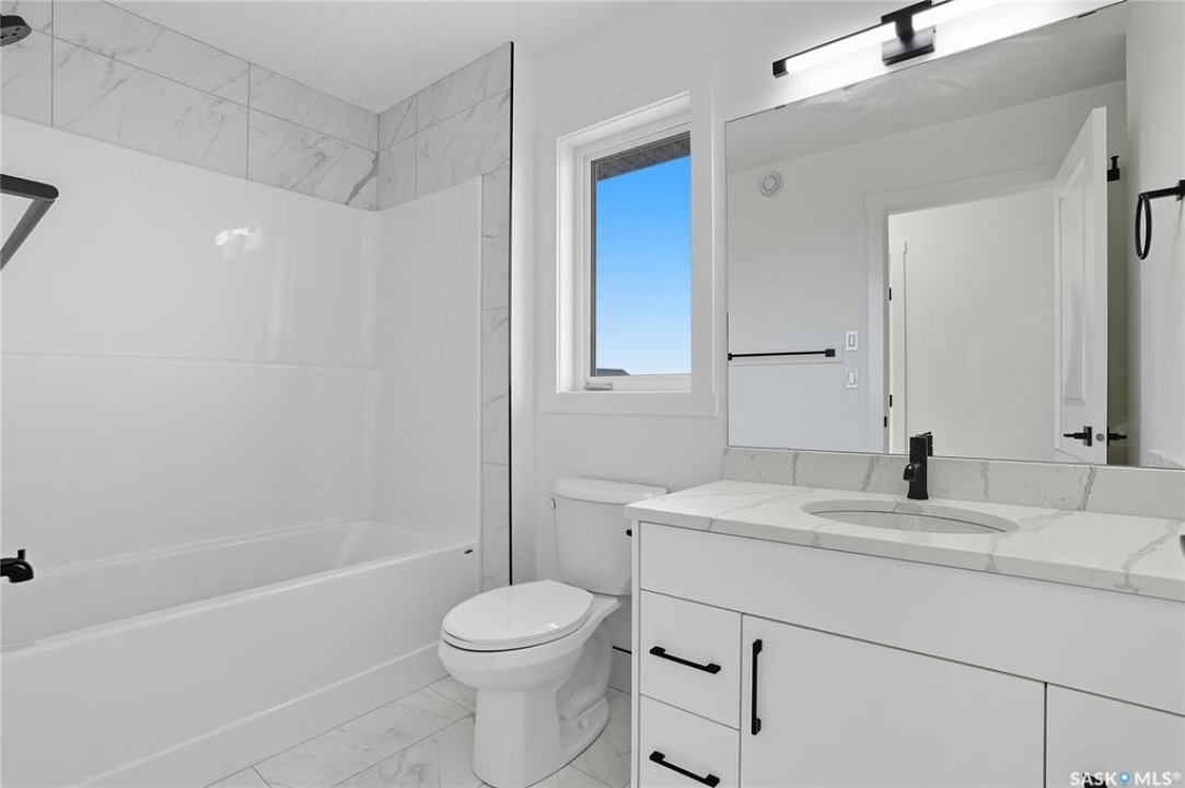 Brand new 1694 sqft two storey home is Aspen Ridge with double attached 20'x26' garage and legal basement suite. Open and bright main floor with quartz counter tops, high-end finishes, and warm tones. Spacious primary bedroom with walk in closet, bright ensuite with walk in shower, and two sink vanity. Two additional bedrooms, bonus rooom, and laundry room are also conveniently located upstairs. GST and PST included in purchase price with rebates to be assigned to builder. SSI rebate can be assigned to buyer. Saskatchewan New Home Warranty included.