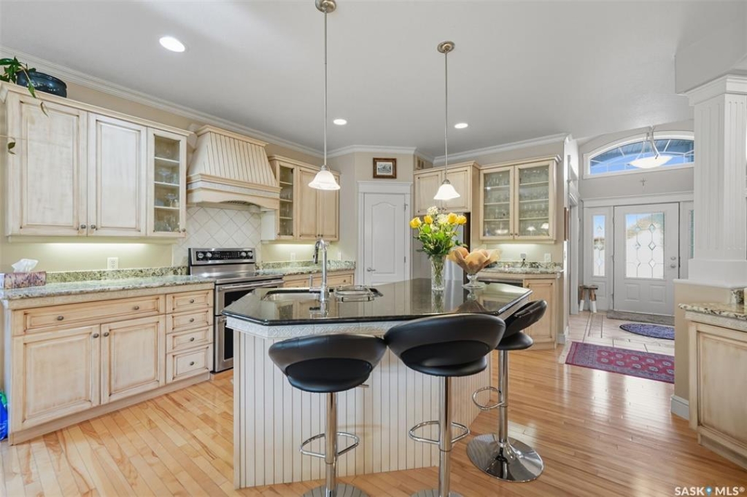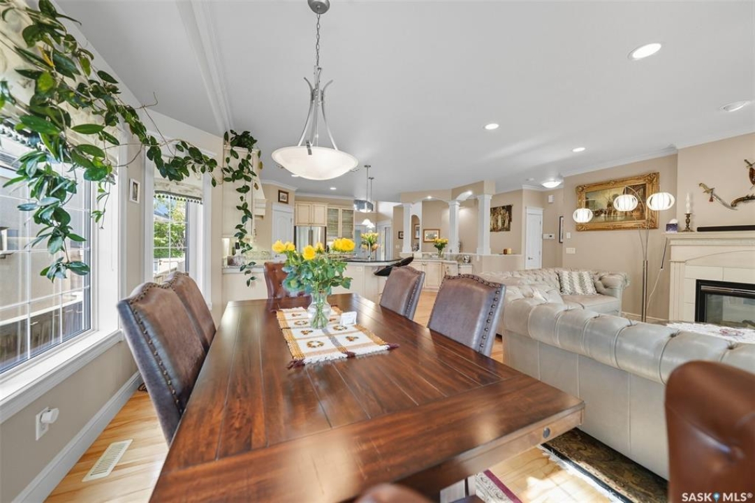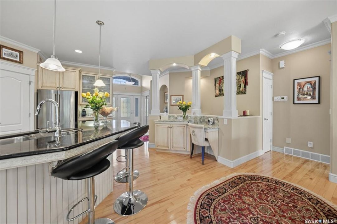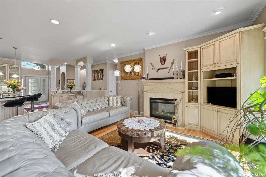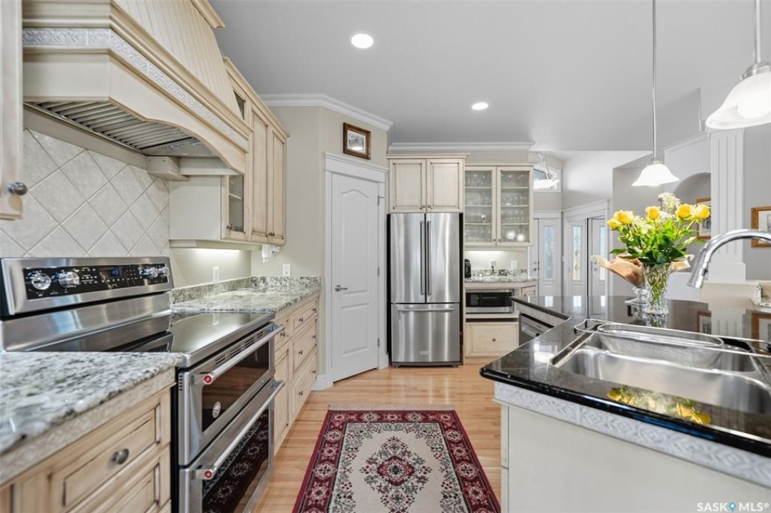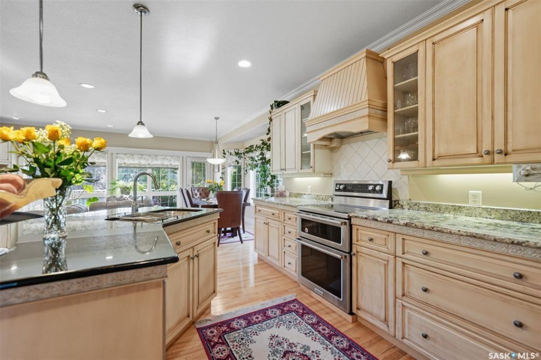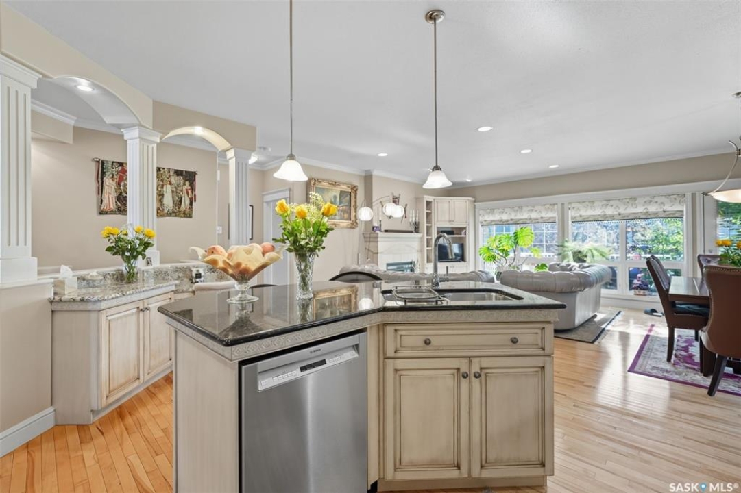Open house has been cancelled. Welcome to 219 Brookhurst Crescent, a beautifully designed 1,551 sq. ft. bungalow perfectly situated in a premium Briarwood location with the front entrance facing onto Briarwood Park. Originally a Rocy show home, this property blends timeless craftsmanship with modern elegance, offering 4 bedrooms, 3 bathrooms a main floor den/office and a fully developed basement. Step inside to a bright and inviting main floor, featuring a spacious foyer, transom windows, and elegant crown moldings. The open-concept living and dining areas are filled with natural light from banks of large windows and showcase gleaming hardwood floors, inlaid ceramic tile, and a cozy double-sided gas fireplace that connects the living room with the luxurious primary suite.The gourmet kitchen is a chef's dream with an oversized granite island, stainless steel appliances, custom antiqued cabinetry, and a built-in tile border detail that highlights the craftsmanship throughout. A convenient home office nook and a versatile flex room with built-in cabinetry add to the thoughtful layout.The primary bedroom boasts a glorious 5-piece ensuite with a full bath with jacuzzi, double sinks, and separate shower, while a second bedroom and full bath complete the main floor. The lower level offers a spacious family room, two additional bedrooms (note: one without a closet), a full bath, and plenty of storage space.Outside, enjoy the landscaped yard with a deck, fenced backyard, mature trees, and underground sprinklers. The 21'6 x 22 insulated double garage and concrete driveway provide ample parking.-Upgrades over the years include ; Shingles approx 2015 - furnace, water heater , a/c , deck covering , granite countertops in kitchen and bathrooms, vented range hood and stainless steel appliances since 2017. Immaculate and stylish, this Briarwood bungalow truly shows 10/10.