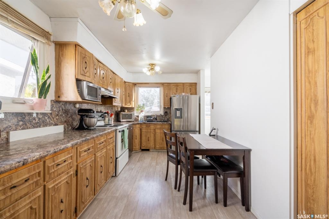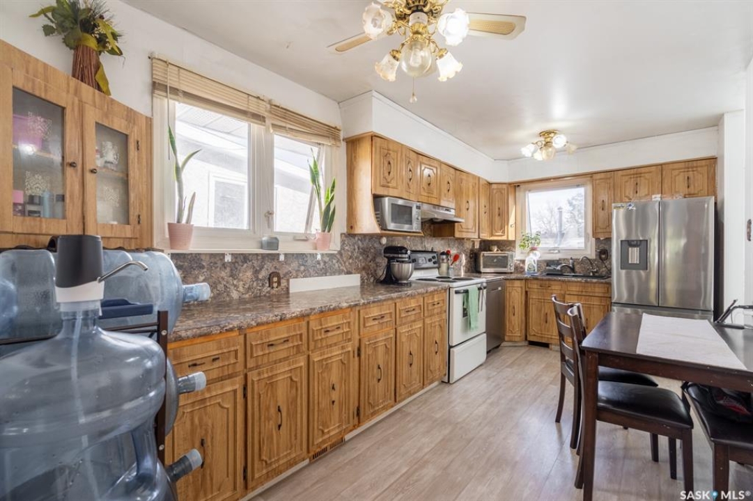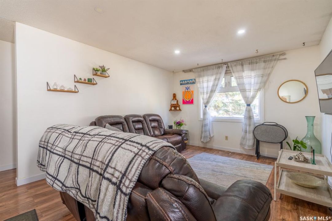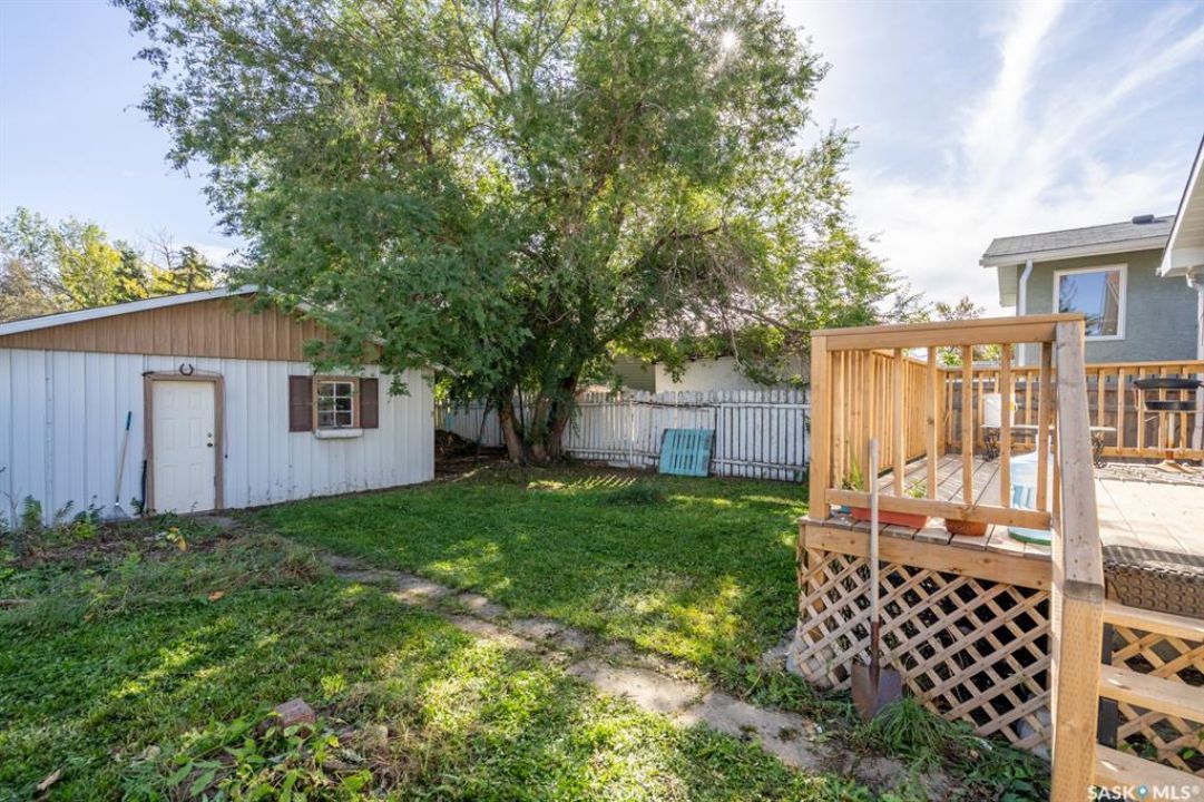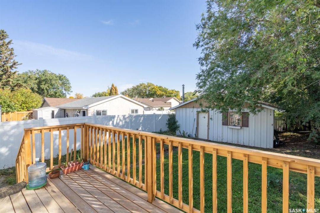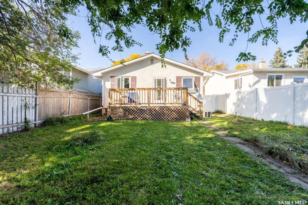 Welcome to this well-maintained 4-bedroom, 2-bathroom bungalow located on a quiet street in Regina's desirable east end – Glencairn. This home offers a great blend of comfort, updates, and functionality. Step inside to a bright, west-facing living room that fills with natural light. The spacious kitchen offers ample cabinetry, perfect for family meals and entertaining. Three well-sized bedrooms and a refreshed 4-piece bathroom complete the main floor, which also features updated laminate flooring throughout most of the level. The solid and inviting basement includes a large rec room, a fourth bedroom, a 3-piece bathroom, and a dedicated furnace/storage area. New carpet adds comfort and warmth to the lower level. Recent updates include: Laminate flooring on most of the main floor Renovated main floor bathroom New carpet in the basement Updated windows throughout A new back deck The fully fenced yard is perfect for kids, pets, or summer gatherings, and includes a double detached garage with convenient access from the rear alley. Situated just minutes from East End amenities and with quick access to Ring Road, this home is ideal for families or anyone seeking a move-in-ready property in a well-established neighbourhood. Contact the listing agent today for more information or to schedule your private viewing!