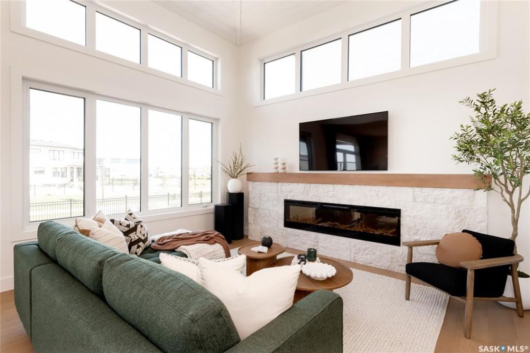 The "Fusion 25" is one of Pure Developments newest creations currently under construction is backing a park and will be ready for occupancy April 2026. This home is the same floorplan as their current showhome, with a few minor tweaks that Pure is known for to ensure each home is uniquely designed and finished. Pictures are of their current showhome and the design board renderings provide you with the finishings in this home. Features include a soaring vaulted ceiling in the living room with a large number of windoows, fireplace with accent wall and floating shelves, beautifully designed kitchen complete with a butler's pantry and custom cabinetry in the mudroom. The primary bedroom features a large walkin closet with ciustom shelving with cabinetry and a spectacular 5 piece ensuite.