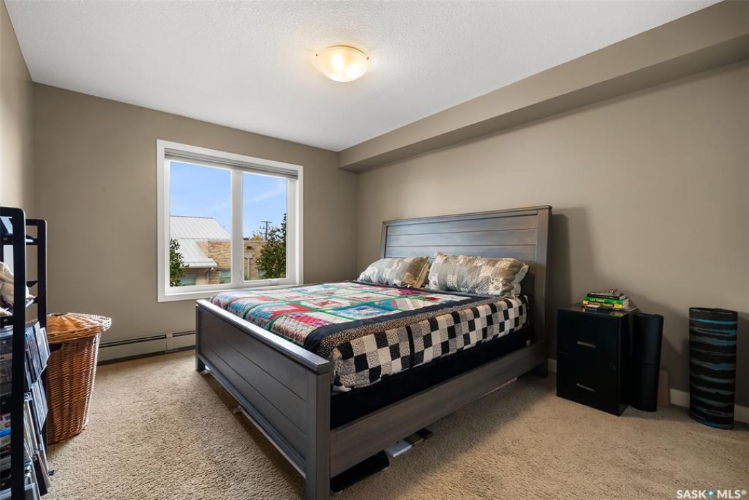 This modern 829 sq. ft. condo in Windsor Park offers a bright, open layout and stylish finishes in a well-managed low-rise building. Perfect for first-time buyers, downsizers, or investors, this home blends comfort and convenience with a prime east-end location. The spacious living room features large windows and direct access to a private balcony, filling the suite with natural light. The kitchen is thoughtfully designed with granite countertops, tile backsplash, stainless steel appliances, rich cabinetry, and a centre island with seating—ideal for entertaining or casual meals. The open dining area flows seamlessly from the kitchen, making the space warm and inviting. This unit includes a primary bedroom with generous closet space, a versatile den that works as a home office or guest room, and a full 4-piece bathroom. In-suite laundry with upgraded washer and dryer adds extra convenience. Other highlights include laminate flooring in the main living areas, carpet in the bedrooms, and central air conditioning. The unit comes with one underground parking stall and access to building amenities such as an elevator, secure entry, and guest parking. Condo fees cover water, heat, common area maintenance, exterior upkeep, reserve fund, snow removal, lawn care, and building insurance—providing peace of mind and low-maintenance living. Located close to parks, shopping, restaurants, schools, and all east-end amenities, this home delivers both lifestyle and location.