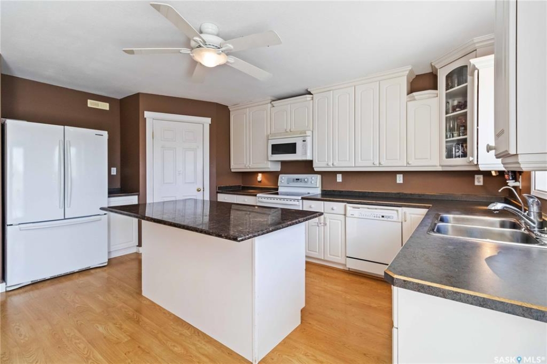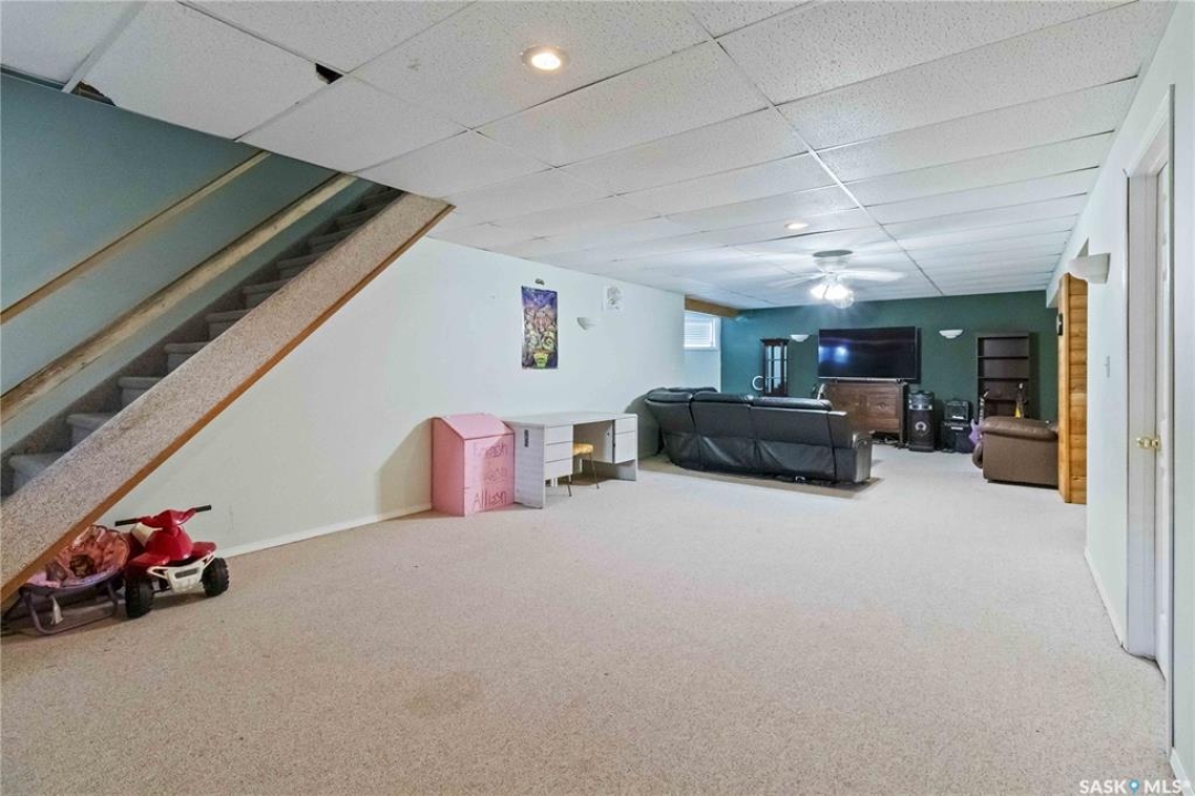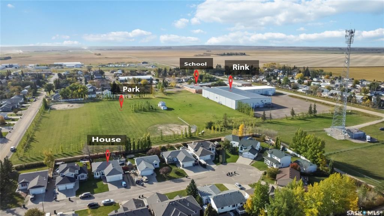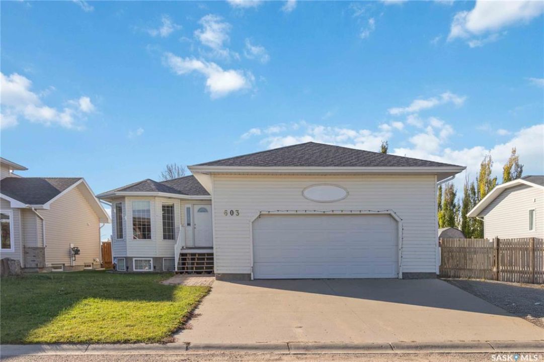 Welcome to 603 Cannon Court in Aberdeen. This home is situated on one of the best lots in the community. Located on a quiet cul de sac that backs onto a park that connects to the school and arena. Not to mention the huge 8246 square foot lot that is fully fenced and landscaped. There is a double concrete driveway out front with room on the west side of the lot for rv parking. The home comes with a double 24x24 attached garage that is insulated and boarded. The main floor of this raised bungalow has a large living room at the front of the house, kitchen and dining face the back yard with entry to the deck off the dining. The kitchen features a large island and corner pantry. There is a large master bedroom with a full 4 pc bath, a second bedroom, laundry room and 2nd 4 piece bath all on the main floor. The basement has a bedroom, a large 2 piece bath that has lots of room for a tub or shower and the rest of the basement is a huge family room. The home has new shingles, furnace, water heater and hrv. All this for $374900.00. Call to view!!