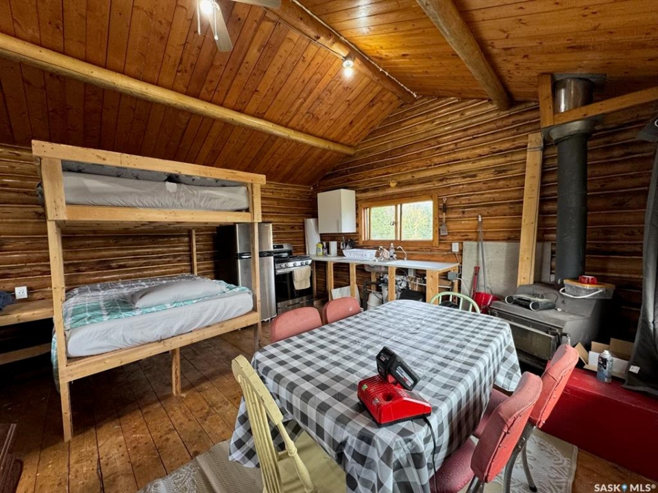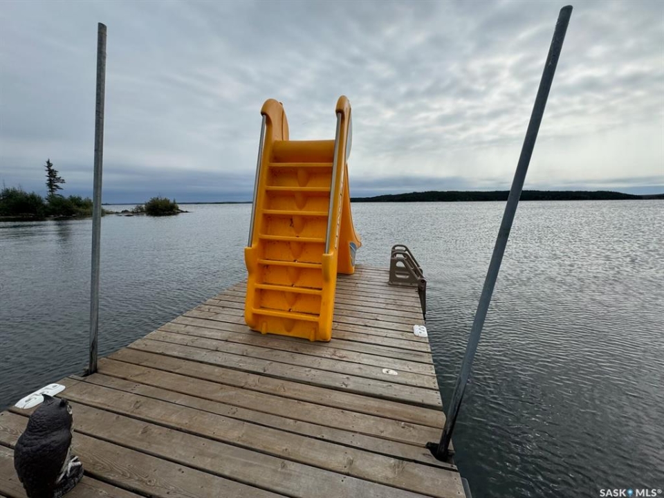 Have you dreamed of your own charming cottage on Lac La Ronge?! This adorable log cabin is located on its own island a short boat ride from Wadin Bay and close to Mooney Beach. The cabin is fully insulated, has running hot water, and is set up with a VERY robust solar system. It comes fully furnished with beds to sleep 6. The shed right next to the cabin is a tastefully disguised seacan that houses a composting toilet and the batteries for the power system with plenty of extra room for storage. Down by the water, you will find the dock (with a slide for the kids to enjoy all summer long!) and a floating boathouse right next to a small beach. A short stroll up from the dock along the boardwalk brings you to your deck, fire pit area, and brand new Fire Water hot tub! If you want more space for the family to gather, there is plenty of room on the site to build a larger cabin and keep the existing one as a guesthouse. Or keep it simple and just show up and enjoy! This is an ideal location on Lac La Ronge with mature trees all around the island and a quick boat ride back to mainland. This well maintained, turnkey cabin is ready for new owners - pack your bathing suits and hit the hot tub, then the lake, then back to the tub!