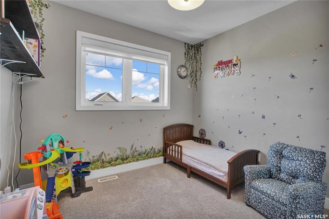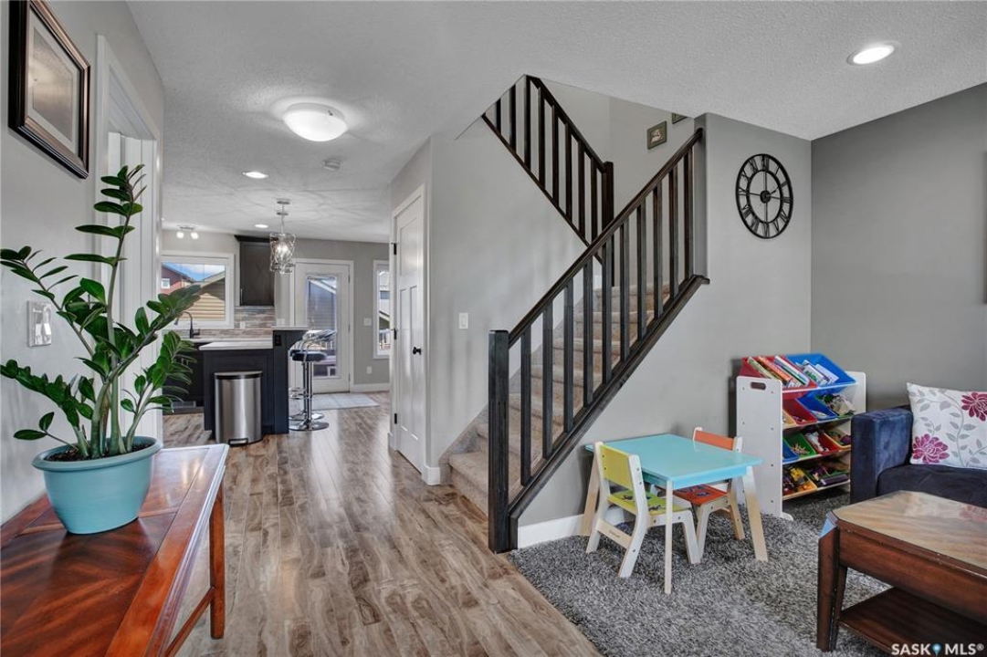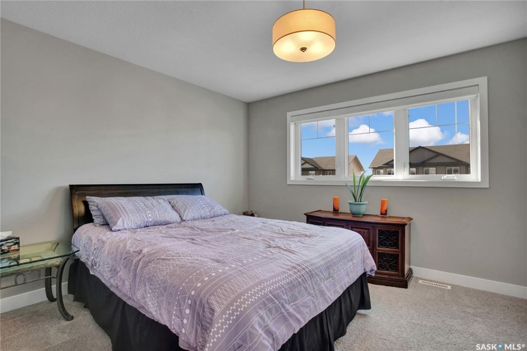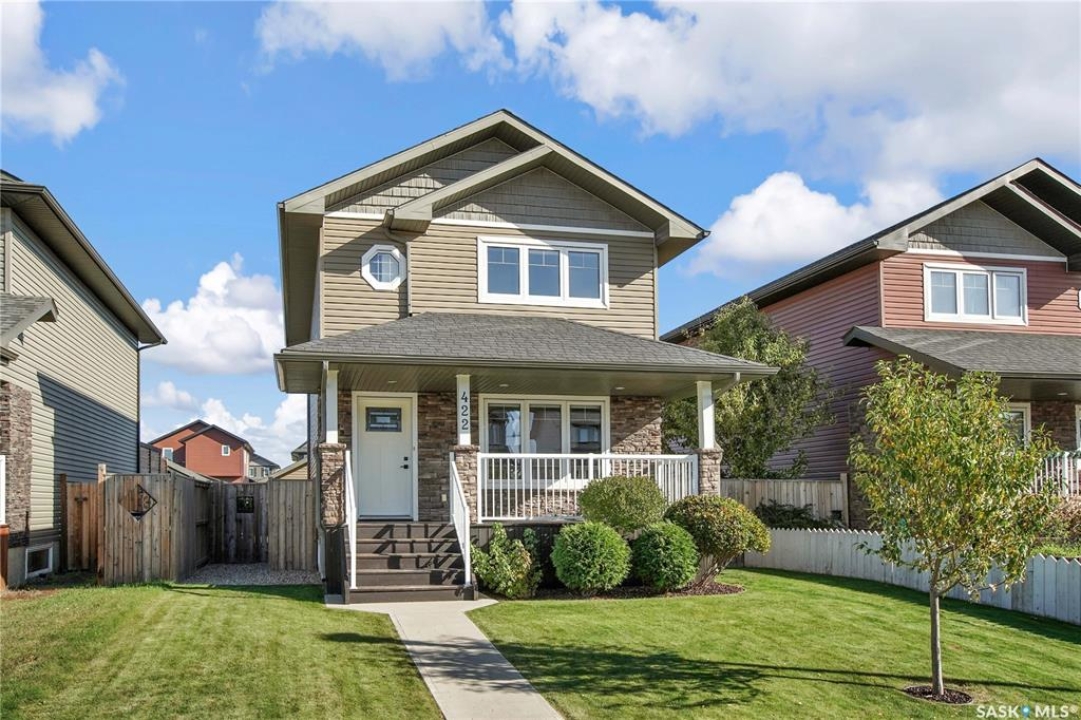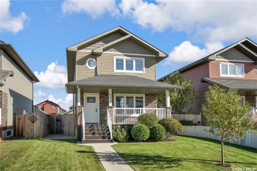 Welcome home! This 1,280 sq. ft. two-storey offers fantastic value and wonderful family living. You'll love the charming curb appeal with its covered front veranda, manicured lawn, and established shrubs. Inside, you'll find a bright and comfortable layout designed for everyday living. The dining room features garden doors that open to a spacious deck and a beautifully landscaped, low-maintenance yard — ideal for family barbecues and outdoor fun. Upstairs offers 3 bedrooms, primary bedroom with a walk-in closet and ensuite bathroom. The basement is framed, insulated, and ready for your finishing touches — framed for a 4th bedroom and 4th bathroom. Additional highlights include central A/C and a 24 × 24 detached garage. Located just a few blocks from Traditions School and scenic walking paths, this home is perfectly situated for families. Warman offers the best of both worlds — small-town community feel with all the conveniences, and just a short, easy commute to Saskatoon. All appliances are included. Book your viewing today!
