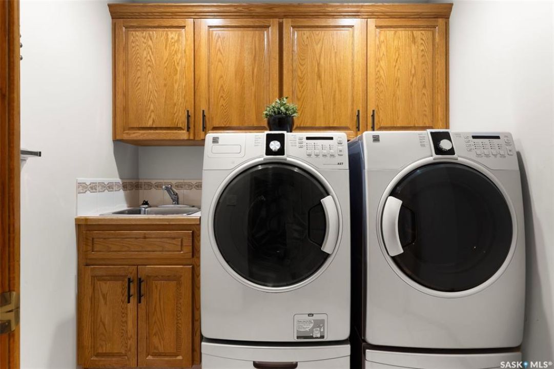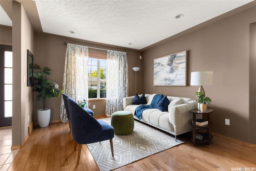 Welcome to 3023 Wimbledon Drive – A Rare Find in Windsor Park! Situated in one of Regina's most sought-after neighborhoods, this beautifully maintained family home backs onto green space and a walking path, offering privacy, tranquility, and convenience. Just steps from Jack Mackenzie and St. Gabriel Schools, as well as the Sandra Schmirler Leisure Centre, pool, library, and water park, the location is truly unbeatable! Step inside to discover over 2,100 sq. ft. of thoughtfully designed living space, featuring: a 24' x 24' fully finished double attached garage with radiant heat and floor drain – ideal for our Saskatchewan winters. A spacious front entry leading into a warm and inviting front living and formal dining room, complete with hardwood floors. A custom oak kitchen with centre island, walk-in pantry, under/over-cabinet lighting, ceramic tile flooring, corner sink, and direct access to the deck overlooking the park – perfect for entertaining or relaxing with family. Vaulted ceilings in the kitchen and adjoining family room, peaking at 14 feet for an airy, open feel. A convenient main floor office/den, 2 piece bathroom and laundry room with sink. Upstairs, you'll find: Three spacious bedrooms, including a primary suite with a large walk-in closet and luxurious ensuite featuring a corner shower and separate tub. A built-in desk in the second bedroom – perfect for students or a home office setup. The fully finished basement offers exceptional bonus space with a rec room featuring a gas fireplace, wet bar, games area, additional bedroom, full bathroom, and your very own sauna! Recent upgrades include: New front and back doors (2019), Shingles (2020), Two furnaces (2021), Central air conditioning (2021). This home is an absolute gem – perfect for families, entertainers, and anyone looking for a great home in a prime location.