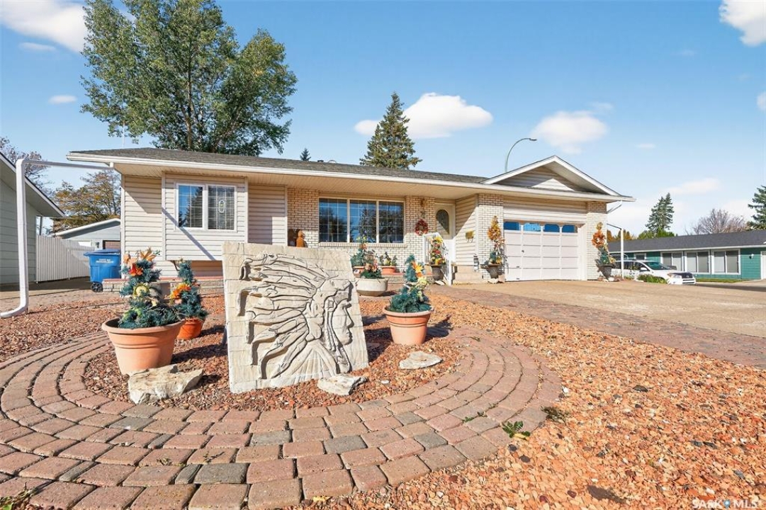 Large bungalow in the desirable Sunningdale neighborhood! Close to schools, parks, walking paths and all your amenities, this location is highly sought after! This home has been well maintained and features 1602 sq ft! Completely hardscaped, this property is perfect for those wanting easy maintenance. Stunning curb appeal, and beautiful brickwork surrounding the home. The backyard is your own private courtyard with raised garden beds, various seating areas, is fully fenced and hosts beautiful trees. Truly a place to relax! Inside the front doors you are welcomed into a spacious living room, opening up to your dining and kitchen. Big windows soak these areas with natural light. The kitchen hosts plenty of cabinetry, counterspace and a large pantry, for all your storage needs. You will truly be wowed by the size of the master suite! Enter into what could be a dressing room, office space, hobby space, you name it, and onwards into your huge bedroom with large closets, private access to your yard, and a 2-pc en-suite. This is a place to retreat after a long day and offers so much potential for any of your needs. The main floor also hosts a second room with a large window overlooking your backyard (please note, the window in this bedroom does not open). This level comes complete with a 4-pc bath (with a new toilet and flooring recently installed), a large laundry room with plenty of storage space, and access to your attached, heated garage! The basement offers plenty of space and features a family room, a hobby room, a den, and a 4 pc bath with beautiful tiled shower! Lots of potential down here for all your needs! This home has great storage space throughout with large closets everywhere. This home is truly one of a kind and has great features, you have to see it! Book your showing today!