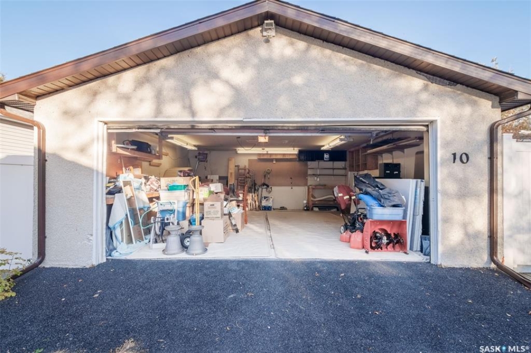 Perfect starter or downsizing home! Welcome to 10 Mitchell Crescent in Normanview. This bungalow has been well maintained over the years and is located near walking paths, parks, north end amenities and within walking distance to the new French school École du Parc! Great curb appeal with a front deck to enjoy your morning coffee. This home offers a very functional floor plan, a great use of space with 2 beds up and a den/office downstairs as well as 2 bathrooms. With an oversized double detached garage (22x24) what more could you ask for? On the main floor you'll enjoy cooking in the bright kitchen which includes white cabinets, a pantry closet for extra storage and tile flooring. There's a granite bistro bar counter between the living room and kitchen where you can eat while watching your favourite show or game on tv! The living room features a "tornado" fireplace in the corner and gorgeous hardwood flooring. A large primary bedroom (was once 2 bedrooms so it has plenty of storage with 2 closets) and can easily fit a large king-sized bed also has a corner gas fireplace, a 2nd bedroom and a full updated bathroom complete the main level. The fully developed lower level includes a large rec room with wood fireplace, a den/office and a large, updated bathroom with corner jet tub and plenty of closet storage. The PVC fence encloses a great back yard space you can enjoy with a patio area and room for a garden if you choose! Upgrades in the last number of years include windows, shingles (soffits/fascia/eaves/gutters) PVC fencing, siding, front deck, rubber paving on sidewalk and driveway, updated downstairs bathroom and more! Quick possession available. Book your showing today!