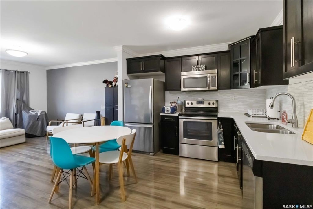 Welcome to this 2-bedroom, 1-bath condo townhouse located in the Evergreen neighbourhood of Saskatoon! Whether you're a first-time buyer, downsizing, or investing, this stylish and low-maintenance home offers unbeatable value in one of the city's most desirable areas. Step inside to discover an open-concept living space , a functional kitchen with sleek cabinetry , and two spacious bedrooms . The full 4-piece bathroom , and in-suite laundry makes life that much easier. E Tucked into a well-managed complex with lower condo fees, this home includes dedicated parking spaces and off street parking spaces. Situated in Evergreen — a vibrant and growing community — you'll love being just minutes from top-rated schools, beautiful parks, kilometers of scenic walking trails, and the popular Evergreen Village Square. With close access to grocery stores, amenities, and transit routes, it's easy to see why Evergreen is one of Saskatoon's favourite places to call home. Looking move-in-ready home in an amazing neighbourhood? This could be the one. Book your showing today!