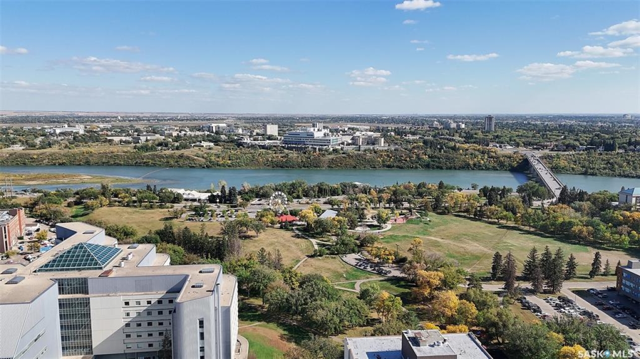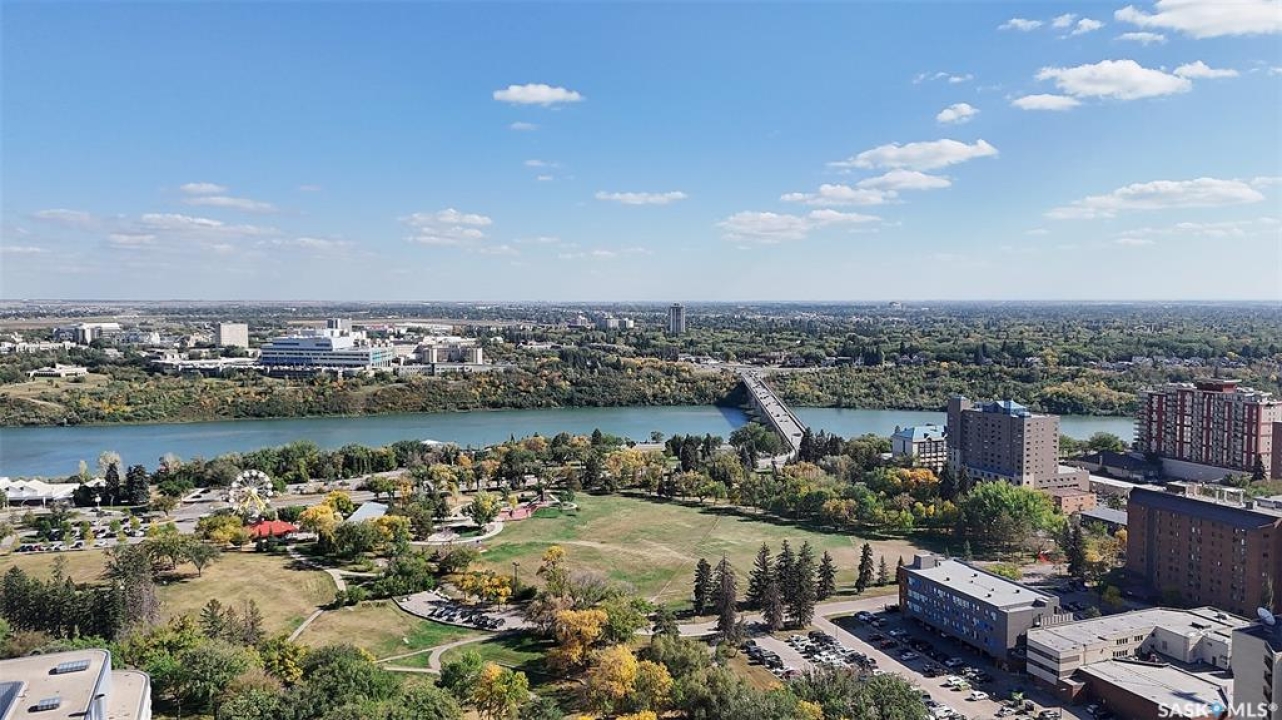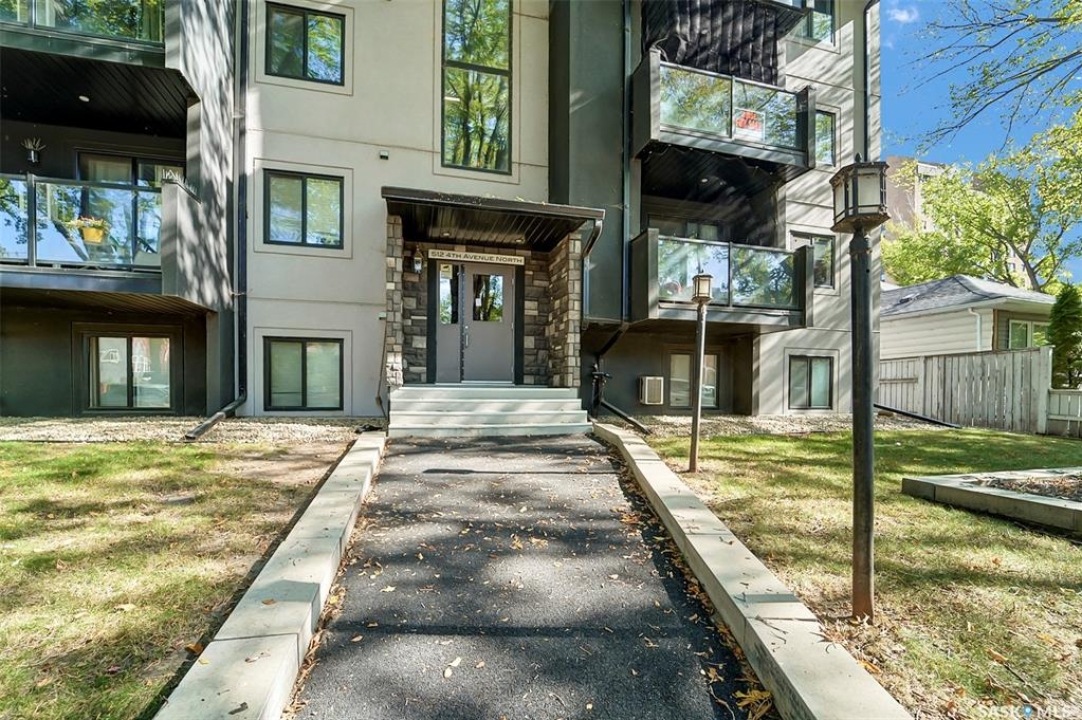 Prime Location & Stylish Living! Fall in love with this cute-as-a-button, top-floor corner unit offering privacy, charm, and a modern touch — with no neighbours on either side! Enjoy peace of mind knowing the $17,000 special assessment levy has been paid in full, covering impressive exterior upgrades including new stucco, balconies, windows, patio doors, and refreshed curb appeal. Step inside to discover a bright, cozy living space featuring a chic electric fireplace, modern flooring throughout, and an upgraded bathroom. The newer windows, patio door, and private balcony make this unit shine with natural light. This pet-friendly building (with board approval) also includes an electrified parking stall (#401) for your convenience. Just steps from City Hospital and within walking distance to the South Saskatchewan River and University of Saskatchewan, this location can't be beat! Perfect for professionals, students, or anyone seeking a stylish and low-maintenance lifestyle in the heart of the city. Move right in and enjoy comfort, convenience, and character — all in one perfect package!