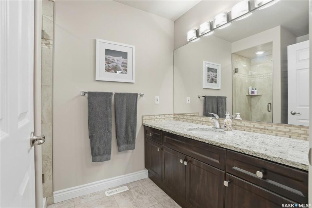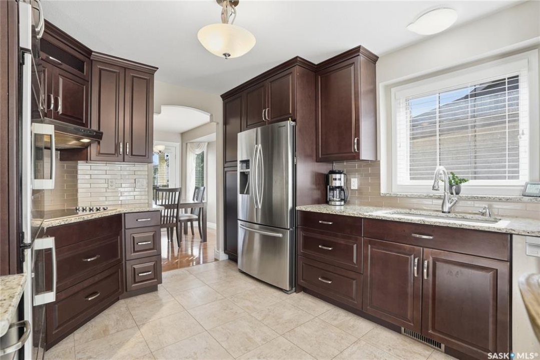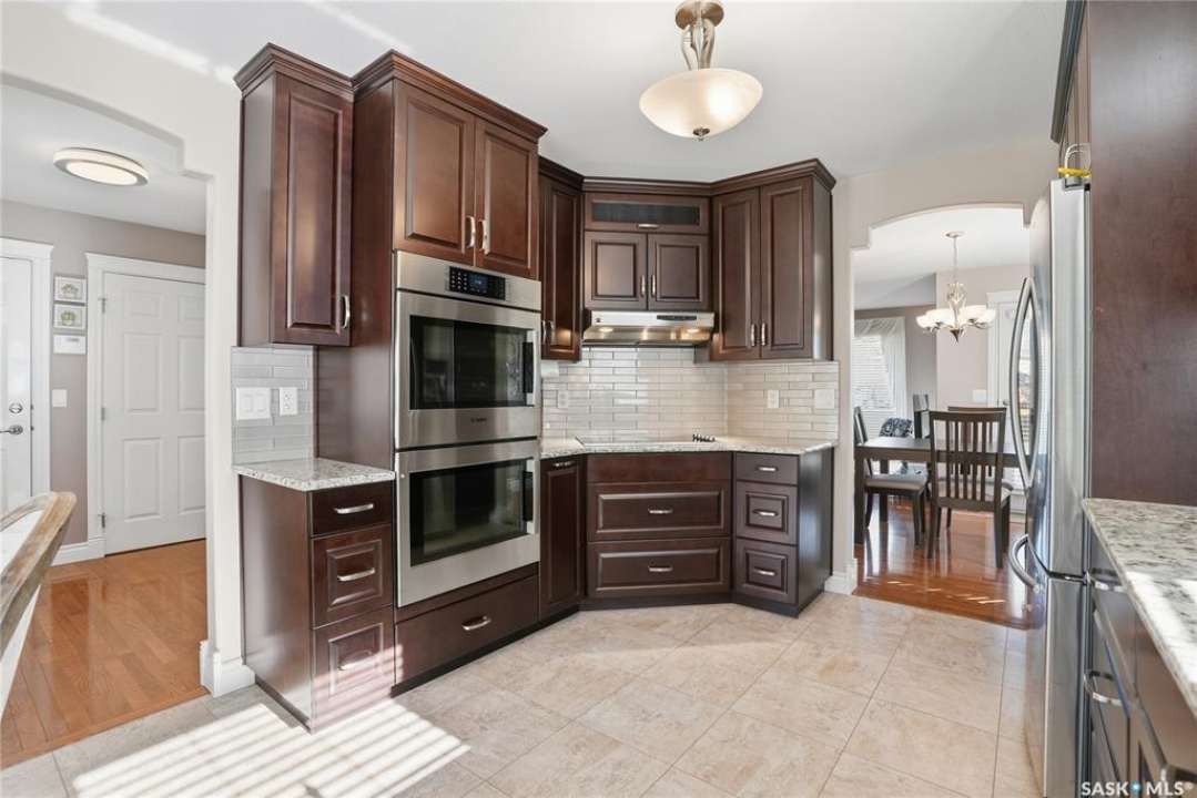 Welcome to 30-330 Stodola Court – A Beautiful Bungalow in Arbor Creek Discover comfort, quality, and convenience in this 1,200 sq ft bungalow featuring 3 bedrooms and 3 bathrooms, ideally situated in the sought-after neighborhood of Arbor Creek. Step inside to find gleaming hardwood floors that flow seamlessly from the foyer into the open-concept living and dining areas. The spacious kitchen showcases a Superior custom soft-close maple cabinetry, granite countertops, a tile backsplash, and high-end stainless steel appliances, including a cooktop, 2 built-in ovens, fridge, dishwasher, and hood fan. Thoughtful details like a pantry with roll-out shelves, pots and pans drawers, and a garburator enhance functionality. The cozy bayed dinette offers the perfect spot for morning coffee. The dining room features a garden door leading to a private patio backing green space, complete with a natural gas BBQ hookup. The primary bedroom easily fits a king-sized bed and includes dual closets and a 3-piece ensuite with a tile and glass shower and a large granite vanity. A second bedroom, a full 4-piece bathroom with tile surround, and main floor laundry with built-in cabinetry offer added convenience. Direct access to the 20' x 22' attached garage makes everyday living easy. The fully developed lower level boasts 9-foot ceilings, a spacious family room with built-in cabinetry and a bar, a third bedroom, a den, and a stylish 3-piece bath featuring in-floor heat. You'll also find ample storage space and a utility room with a newer furnace and hot water heater. Additional highlights: Central air conditioning, Central vacuum, Quick access to Arbor Creek walking paths, Close proximity to University Heights and Brighton amenities.