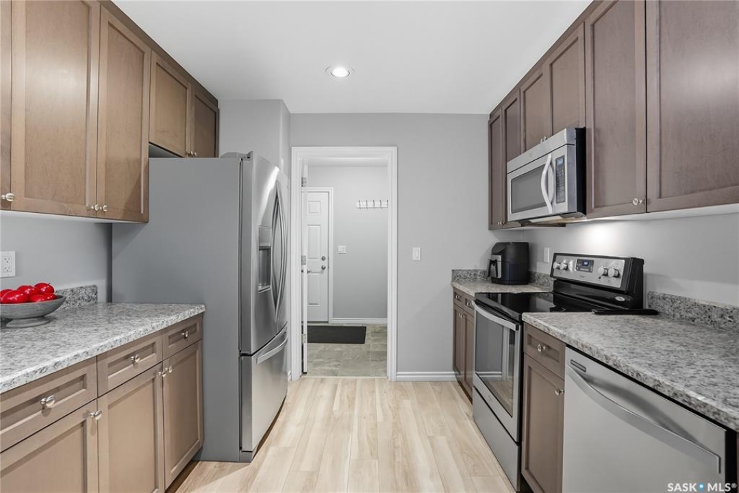 Presentation of offers October 14 at 3pm. Welcome to this stunning home ideally located just a block from all major amenities and half a block from the school, allowing you to watch your kids walk to class with ease. This property features a fantastic floor plan, complete with a mudroom leading into an updated kitchen. Enjoy garden doors off the eating area that open to a large composite deck—perfect for outdoor entertaining. The great room showcases newer flooring and an electric fireplace, creating a warm and inviting space for family gatherings. Upstairs, you'll find three good-sized bedrooms, a full four-piece bath, and a walk-in closet off the primary bedroom for added convenience. The fully developed basement is perfect for entertaining, featuring a spacious family room, an additional bedroom, and another four-piece bath. Don't miss the fully insulated and drywalled garage, measuring 24x24, with direct entry into the mudroom. With central air conditioning and an incredible location, this home has it all! Schedule your viewing today!