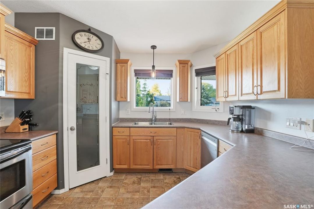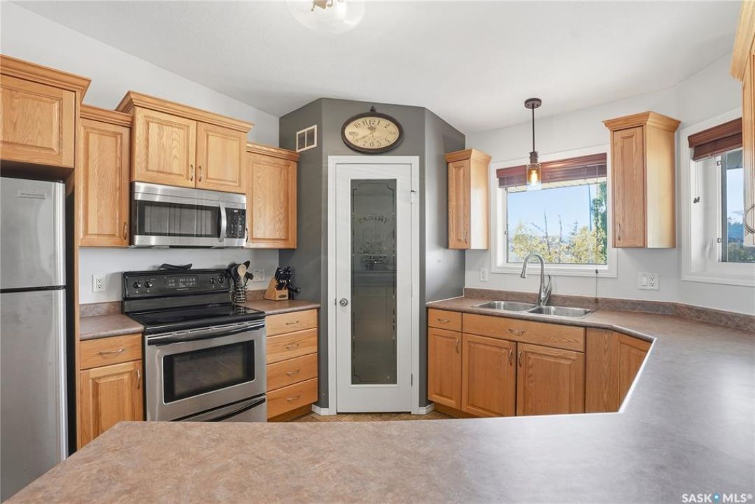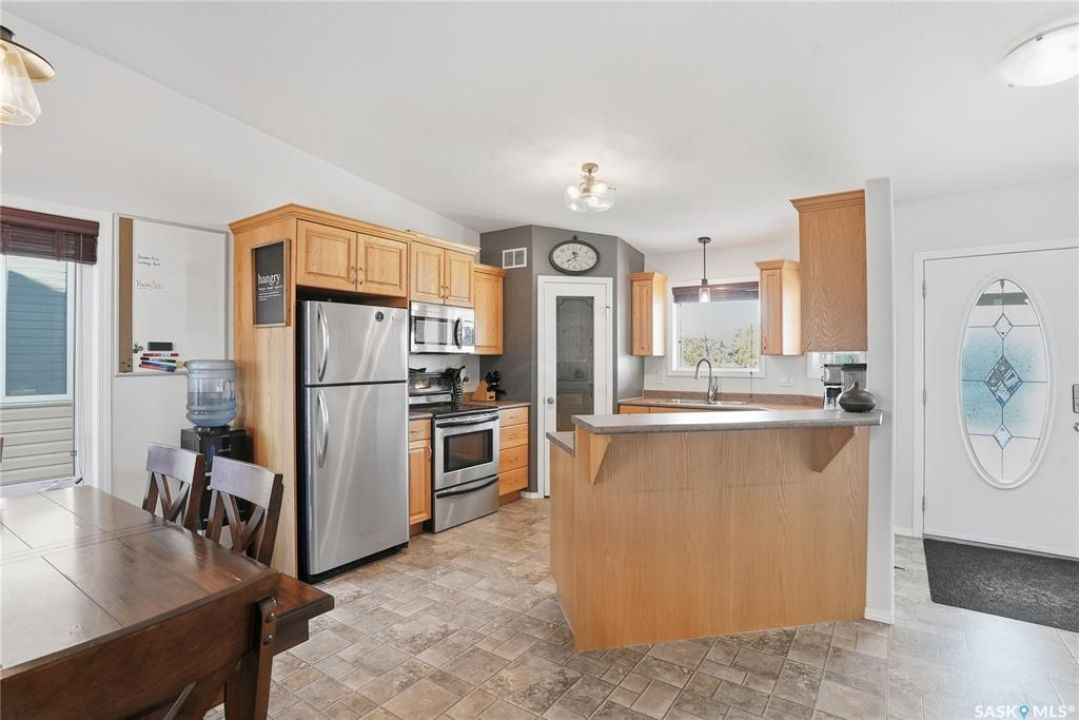 Small town lifestyle and only 15 minutes to Saskatoon? Welcome home to 52 2nd Street in the family community of Osler. This fully developed bungalow features 5 bedrooms, 3 bathrooms, and plenty of charm. It all starts with the front porch with space to relax and take in the evening sun. The front entrance opens into the main floor with a vaulted ceiling and plenty of windows for natural light. You will find a kitchen with a modern layout that has ample cabinetry and prep space, a pantry, and updated stainless steel appliances. The open concept layout connects from kitchen to dining with room for a large table, and the family room space with large windows looking out. There is a primary bedroom with walk-in closet and 3pc ensuite, 2 secondary bedrooms, and a 4 piece bathroom on this floor. The front entrance mudroom hosts main floor laundry and closet storage. From here you have access to the oversized 24x24 garage with 11' ceiling - insulated and heated! From the mudroom you can head downstairs to find two large bedrooms, a 3pc bathroom, and a large family room. There is a den space tucked around the corner and an additional storage room by the utility room. Step into the backyard to find a large low maintenance deck complete with gazebo. Space and privacy - this yard is a dream with room for activities, garden space, shed, and lower patio space. Notable features include; central air conditioning, HRV, and tankless water heater, updated dishwasher, microwave, and newer washer/dryer as well. Don't miss your chance to own a home in an incredible community. Call today to book your own private showing!