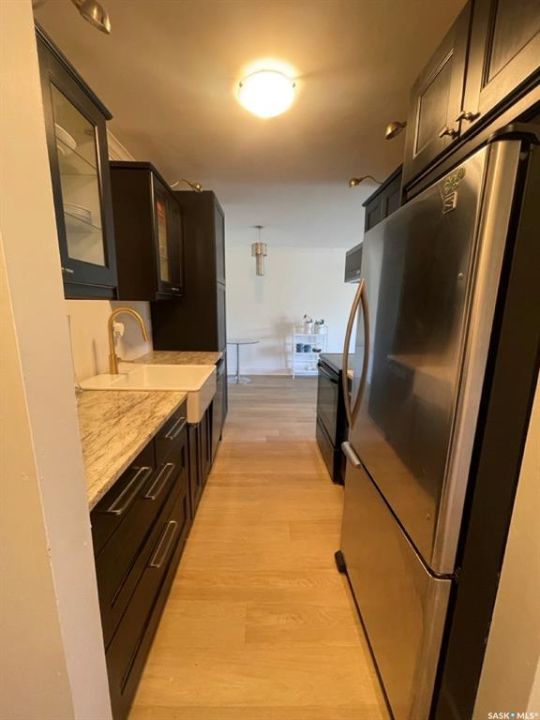 Stylish Condo in Massey Place – With In-Suite Laundry & Park Views! Welcome to this refreshed and stylish 2 bedroom, 1 bathroom condo in the heart of Massey Place. Offering 837 sq. ft. of bright and functional living space, this home is move-in ready and full of thoughtful updates. The open layout features a spacious living room that flows onto your private balcony, where you'll enjoy a peaceful view of Archibald McDonald Park; a perfect spot for morning coffee or evening relaxation. Unlike most units in the building, this condo boasts the rare convenience of in-suite laundry, making daily living that much easier. The modern kitchen has been tastefully refreshed, complementing the updated flooring and finishes throughout. With two generously sized bedrooms and a well-appointed bathroom, the space is ideal for first-time buyers, students, or anyone seeking low-maintenance living. Other highlights include: 1 surface parking stall included, Recently refreshed interior with stylish touches, Steps from Vincent Massey School and close to Bishop Klein School, Easy access to shopping, transit, and all the amenities of Saskatoon's west side. This is an excellent opportunity to own a move-in ready condo in a well-established neighborhood, with the bonus of in-suite laundry and park views.