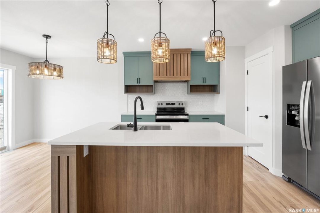 Welcome to the Dakota Duplex – where rustic charm meets modern functionality. This thoughtfully designed home blends warmth and style with a layout that's perfect for family living. Please note: this home is currently presale. The images shown are artist renderings for conceptual purposes only and may be subject to change without notice. Features, finishes, dimensions, and layouts may vary from those shown. The main floor features an inviting open-concept design, seamlessly connecting the kitchen, dining, and living areas. The kitchen showcases quartz countertops and a spacious corner walk-in pantry, offering both style and practicality. A convenient 2-piece powder room completes the main level. Upstairs, you'll find three bedrooms, including a relaxing primary suite with a walk-in closet and ensuite. A versatile bonus room adds flexible space for your family's changing needs, while second-floor laundry keeps life simple and organized. The designer interior package is Coastal Villa. Appliances and air conditioning are not included but can be added for an additional $11,900. A concrete driveway and a double front-attached garage complete this functional and beautiful home.