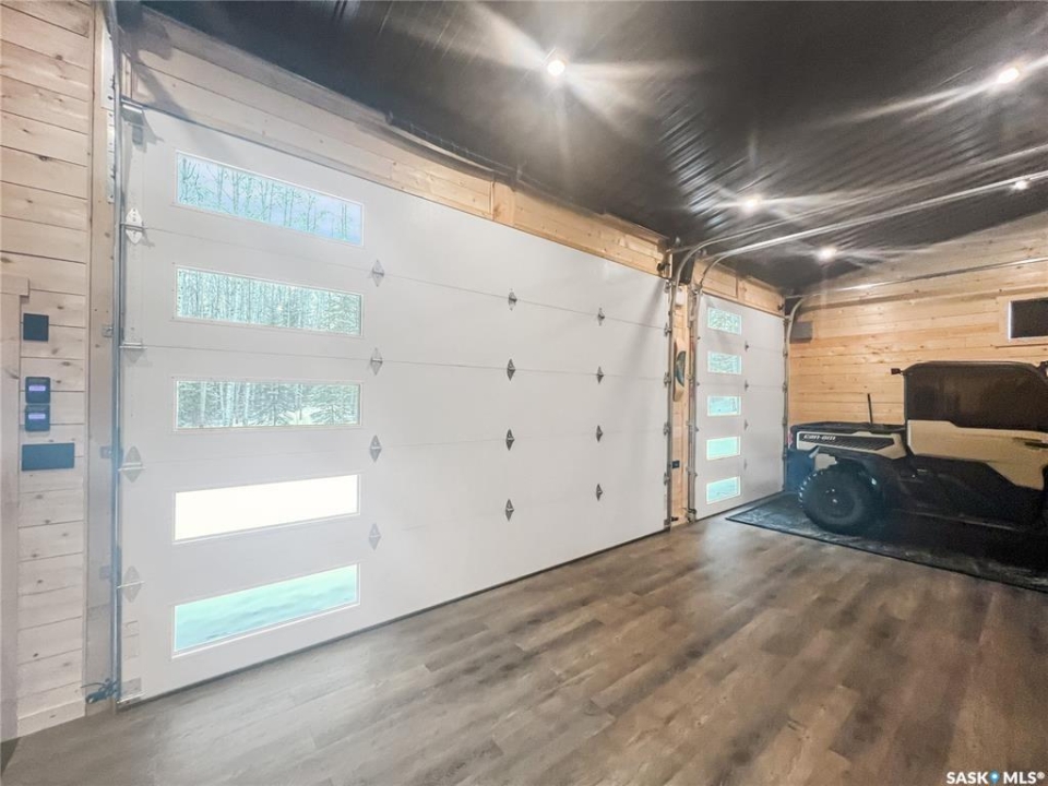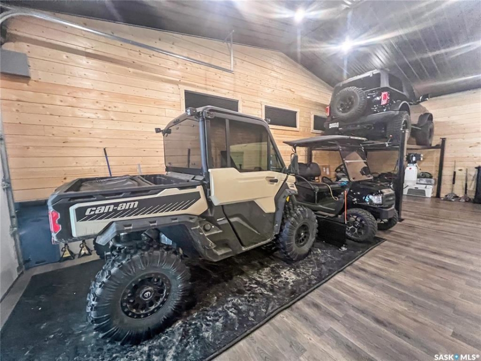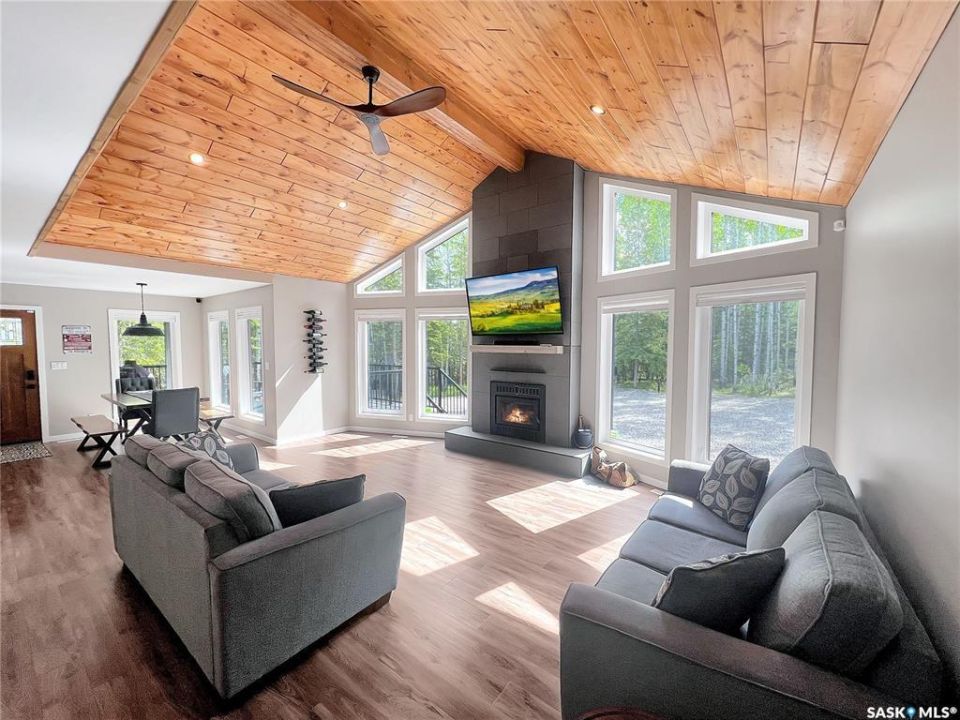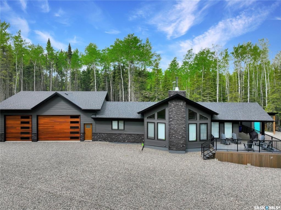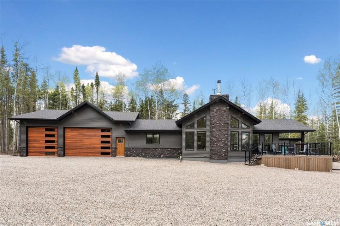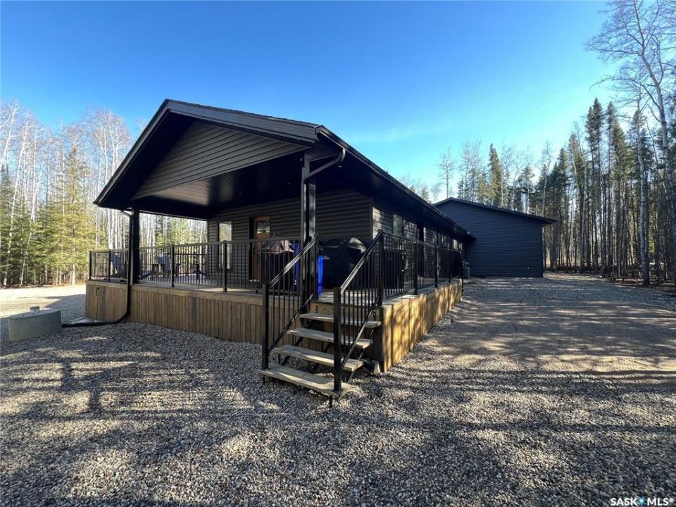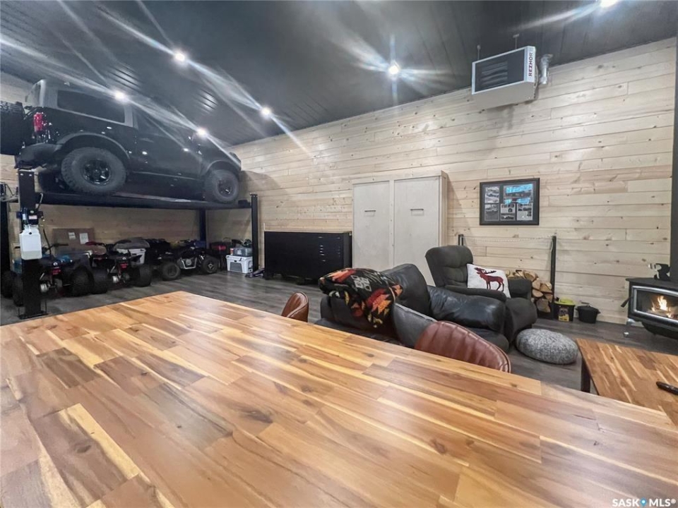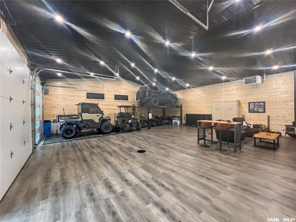 Private and secluded with the Ultimate Garage! This beautifully crafted bungalow offers just under 1200sqft with 3 bedrooms, 3 bathrooms, and an impressive 36'×38' triple garage — all nestled on a meticulously landscaped 1.32-acre lot. The open-concept layout features a stylish kitchen with quartz counters, soft-close cabinetry, gas range, and pantry, flowing into a bright living area with vaulted pine ceilings and a stone-faced wood fireplace. The primary suite includes a walk-through closet and private 3-pc ensuite. The garage—built in 2022—is a true showstopper: heated, finished with vinyl plank floors, pine trim, and black metal ceiling, complete with a wood fireplace, bar area, fridge, car lift, 2-pc bath, and even a hutch bed for guests. Outdoors, enjoy an entertainer's paradise: covered deck, quartz-top outdoor bar, roll-up serving window, firepit area, fenced garden, two electrified RV sites, and a gated driveway. Turn-key (Furniture Package & Outdoor package included). Transferable video surveillance, central A/C, 2 × 1,100 gal water tanks, and a 1,400 gal septic. This could be #yourhappyplace