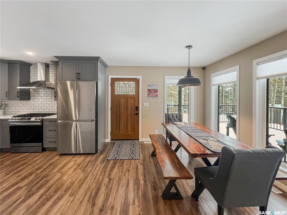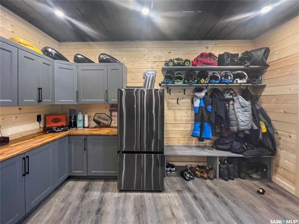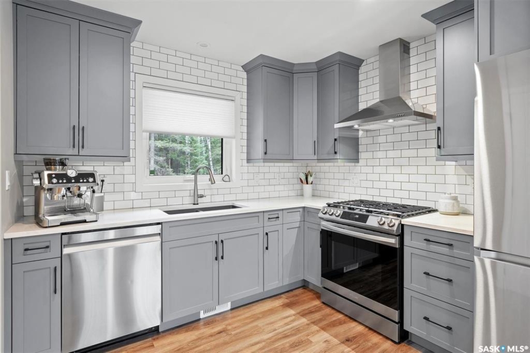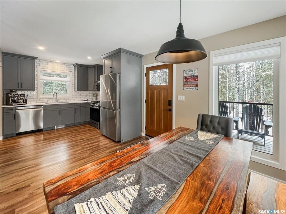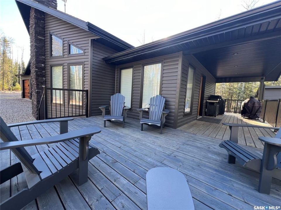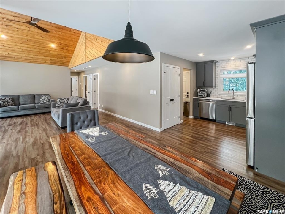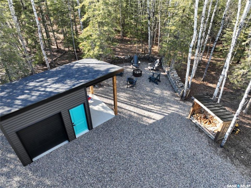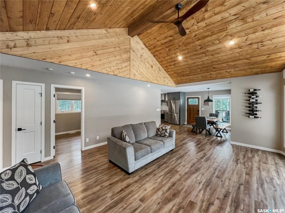 Private and secluded with the Ultimate Garage! This beautifully crafted bungalow offers just under 1200sqft with 3 bedrooms, 3 bathrooms, and an impressive 36'×38' triple garage — all nestled on a meticulously landscaped 1.32-acre lot. The open-concept layout features a stylish kitchen with quartz counters, soft-close cabinetry, gas range, and pantry, flowing into a bright living area with vaulted pine ceilings and a stone-faced wood fireplace. The primary suite includes a walk-through closet and private 3-pc ensuite. The garage—built in 2022—is a true showstopper: heated, finished with vinyl plank floors, pine trim, and black metal ceiling, complete with a wood fireplace, bar area, fridge, car lift, 2-pc bath, and even a hutch bed for guests. Outdoors, enjoy an entertainer's paradise: covered deck, quartz-top outdoor bar, roll-up serving window, firepit area, fenced garden, two electrified RV sites, and a gated driveway. Turn-key (Furniture Package & Outdoor package included). Transferable video surveillance, central A/C, 2 × 1,100 gal water tanks, and a 1,400 gal septic. This could be #yourhappyplace