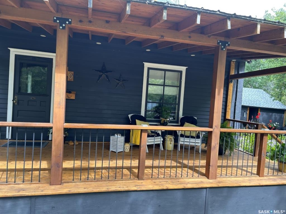 Step into timeless charm with this 1.5-story T. Eaton house, built in 1926 home blends historic character with modern upgrades, fully renovated 10 years ago. The main floor boasts 9' ceilings and original fir flooring, creating a warm, inviting ambiance. The living and dining room feature a cozy gas fireplace. Updated kitchen with S/S appliances, butcher block countertops, a country-style sink, and an Italian imported gas stove, a pantry with open S/S storage. The bath showcases an antique clawfoot tub, a 5' tiled walk-in shower, antique cabinetry accents. Main floor laundry, Upstairs, the primary bedroom offers original fir flooring, two dormer windows, and custom cabinetry crafted from repurposed barn wood lined with beech. The downstairs bedroom features open pine-clad beams, a copper-and-pine ladder to aloft. The unfinished basement provides ample storage, with a 230' deep well, 1400-gallon septic tank, and a 40-gallon electric hot water heater. The gas fireplace heats most of the home, with an electric recessed wall heater in the bathroom. The roof was completely re-shingled 2 years ago. The 20'x20' cedar deck with space for patio seating, lounging, and barbecuing, adjacent to a 4'x8' raised garden for fresh herbs or flowers. The expansive backyard, treed on all sides for privacy, is half-landscaped with rock gardens and a cozy firepit area, ideal for gatherings. A 20'x24' shed with a mezzanine, wired for 220v, is perfect for hobbies or a workshop. The front yard features rock gardens and a pond, driveway accommodates four vehicles, boats, or a visiting RV. Just 90 steps from lake access with a boat launch and room for your dock, world-class fishing for walleye and jack. The community offers a concession stand, a pickleball court, baseball diamond, beach volleyball court, kids' playground, mini-golf, and a band shell with a beer garden for summer events. A local farmers' market adds charm, while paved roads lead right to your door.