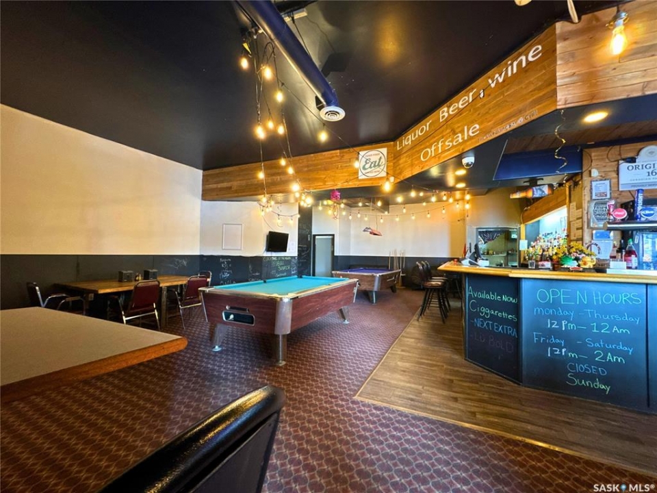 Excellent opportunity to own a landmark business and building in the thriving community of Wynyard, Saskatchewan - a full-service town with a high school, regional college, golf course, rink, hospital, banks, and automotive services. The property offers 11,252 sq.ft. of space on a concrete foundation with a durable brick exterior. The main floor features a fully licensed restaurant and bar, an ice cream/slush area (not in full operation, providing great potential for an additional revenue stream), 10 VLTs offering steady, low-maintenance income, ATM, and permits for restaurant liquor and tobacco sales. A smart home system controls security, lighting, heating, and cooling. The second floor includes a long-term tenant in a 2-bedroom suite with kitchen and 4-piece bath, while the remaining area could be developed into up to 12 guest rooms, 4 bathrooms, and 1 laundry room. The third floor offers an owner's suite with living, kitchen, dining, one bedroom, and 4-piece bath, plus a move-in-ready manager's bachelor suite with kitchen and 3-piece bath; seven additional rooms provide renovation potential. The main floor is heated with a floor unit and A/C, and the upper floors with hot-water heating. Upgrades completed around 2016 include washroom and kitchen renovations, walk-in cooler, reverse osmosis system, modern lighting, décor updates, and fresh finishes throughout. A rare chance to own a versatile, income-producing property with room to grow in the heart of Wynyard.