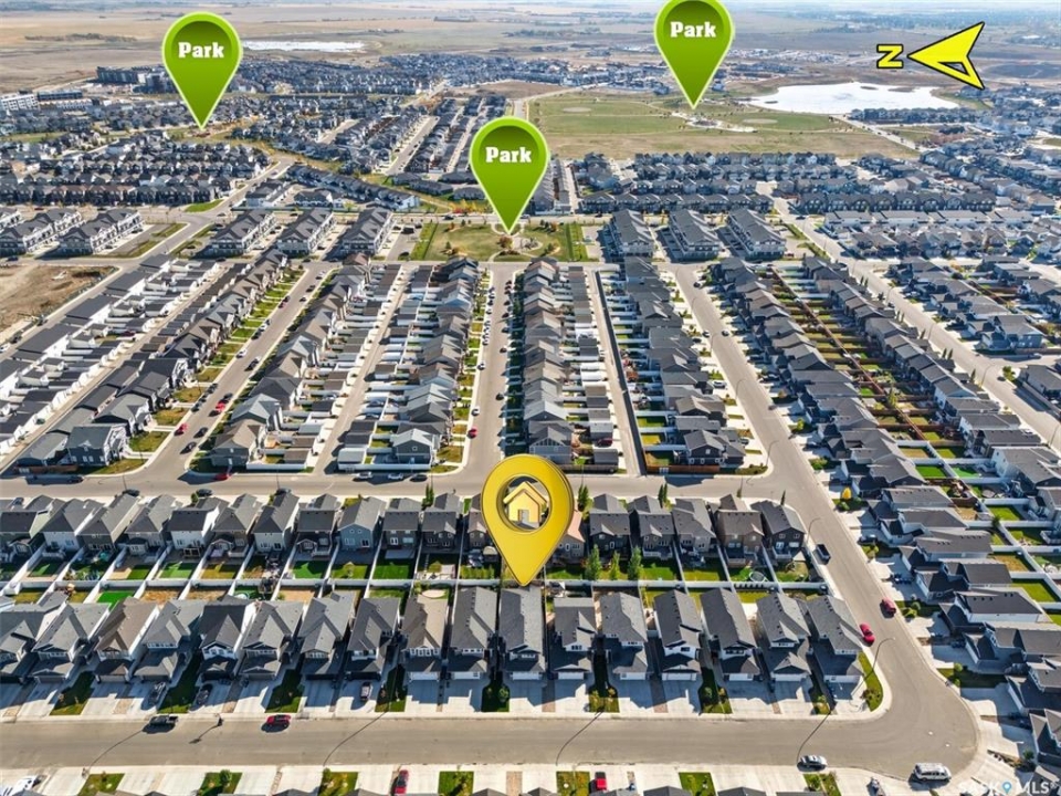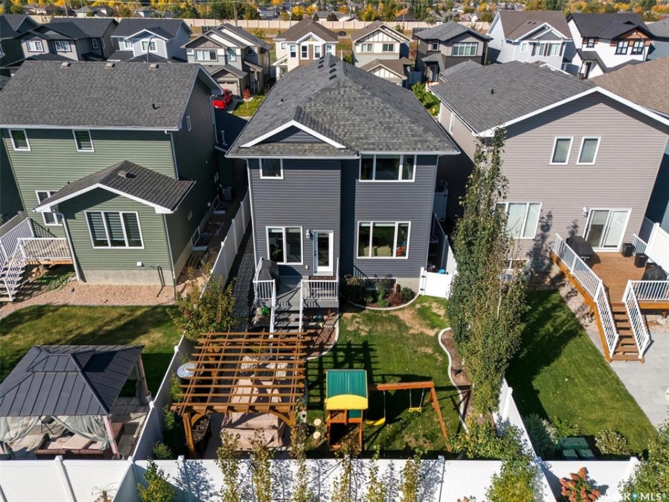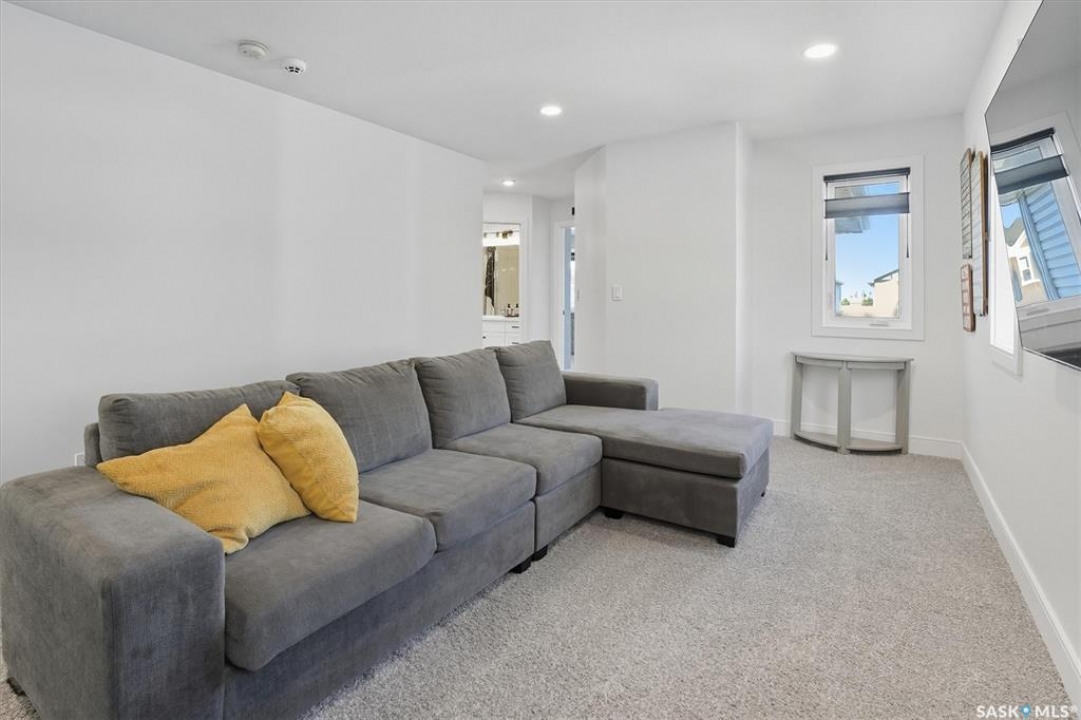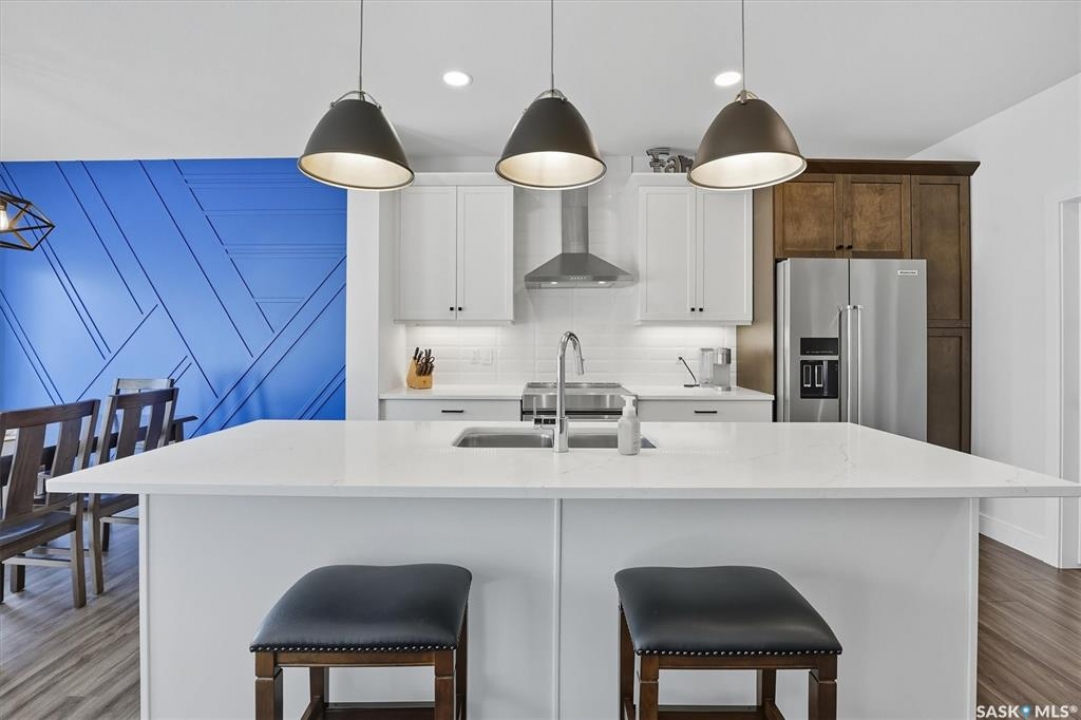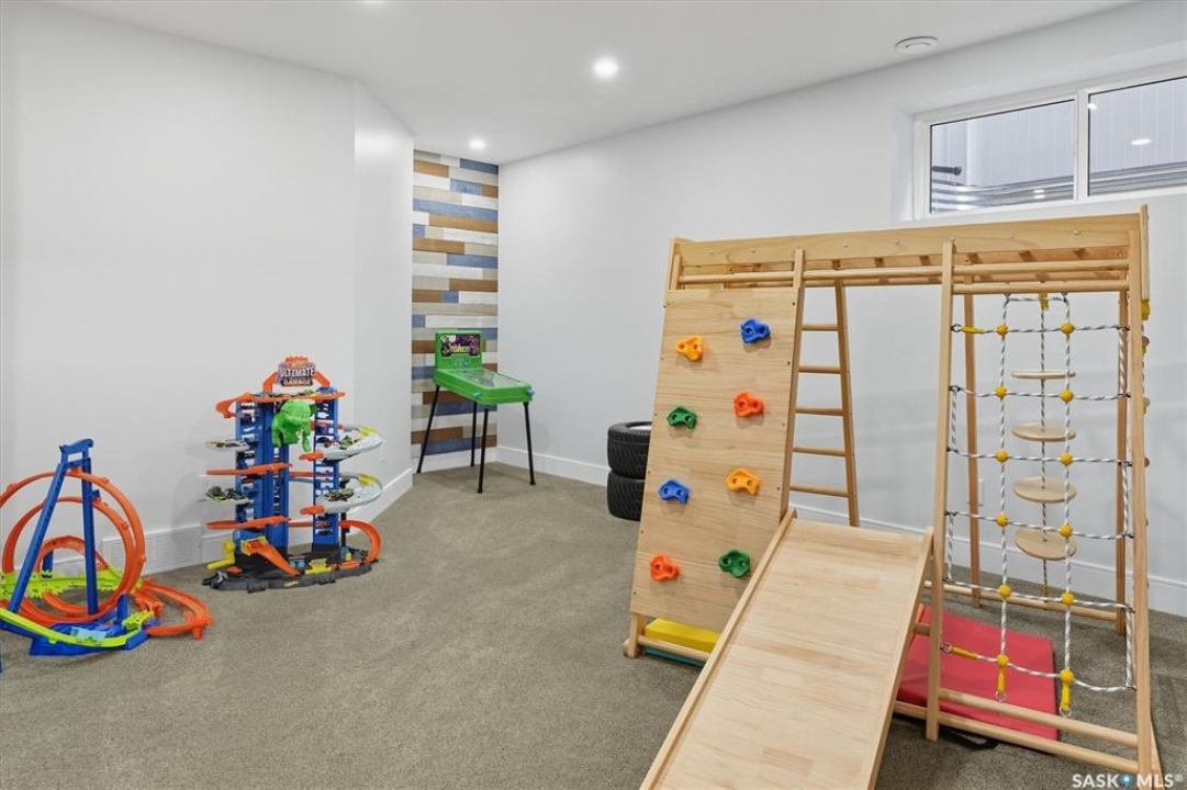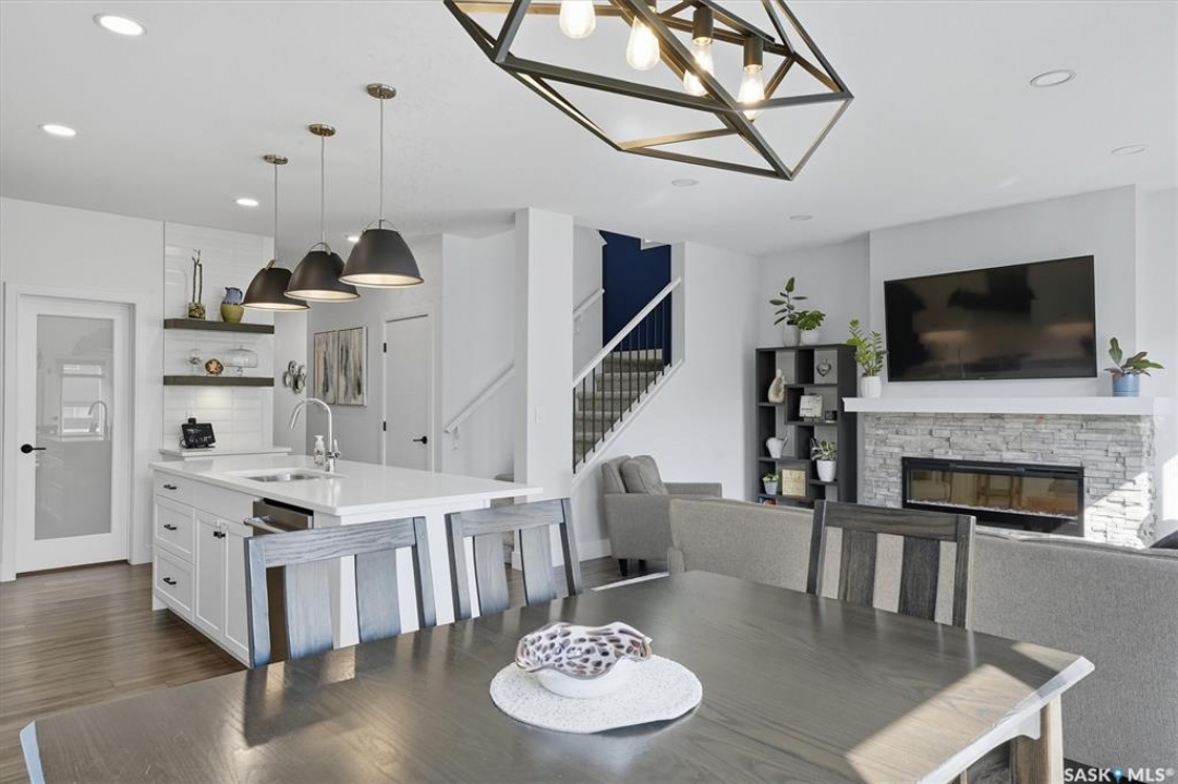 Welcome to this stunning home in the heart of Brighton, offering style, comfort, and thoughtful details throughout. Step inside to a spacious front entry with a large front closet, a handy two-piece bath, and direct access to the heated garage. From the entryway, you'll find a sliding door to the walk-through pantry with tons of storage and counterspace, leading to a beautiful yet highly functional kitchen with quartz countertops, shaker-style cabinetry with modern black hardware, stainless steel appliances including a convection oven with induction cooktop, and a large island with double undermount sink, seating and statement pendant lighting. The kitchen opens to a bright, cozy living room with a fireplace and mantle, and a spacious dining area with a stunning feature wall, large windows and direct access to the deck for easy outdoor entertaining. There is an office/flex space down the hall. Upstairs, you'll find 4 bedrooms, a large bonus room, a laundry room with extra storage, and a shared 4pc bath. The primary suite features a gorgeous feature wall, large windows, an impressive ensuite with dual sinks, corner tub, glass-door shower, toilet closet, and a generous walk-in closet. A second upstairs bedroom also includes a walk-in closet as well. The basement is made for entertaining with a striking wet bar featuring quartz counters, two-tone cabinetry, live-edge floating shelves with custom lighting, a hidden pull-out wine rack, and secret storage behind a bookcase. Enjoy movie nights in the family room with in-ceiling surround sound and a cozy fireplace. There is a 5th bedroom and another full bath down the hall. Outside, the yard is fully landscaped with fruit trees and shrubs, a patio with pergola, sandbox area, underground sprinklers with drip irrigation, and a custom pathway around the home. This home truly blends beauty, function, and location—walking distance to Brighton's many amenities and easy commutes in and out of the area.