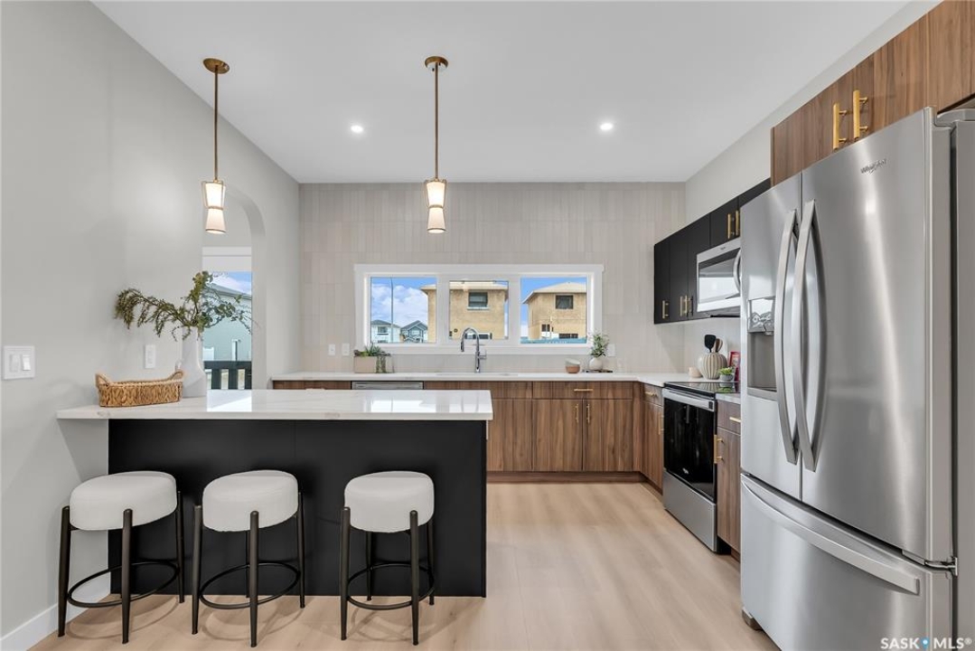 Welcome to the 'Century' - a charming 3-bedroom 2.5 bath home crafted by North Prairie Developments! This lovely home presents an exciting opportunity for homeowners with the option to add a legal basement suite, made even more enticing by eligibility for the SSI grant. Through this program, you could receive up to 35% of the basement suite development costs, making this an excellent investment opportunity. Step inside and be greeted by 9' ceilings and a spacious foyer that leads into the bright and airy living room. An abundance of natural light filters through the kitchen, illuminating the space and highlighting the architectural charm of the archways that grace the main floor, adding character and distinction to every corner. Upstairs, retreat to the spacious primary room featuring a walk-in closet and an ensuite with a built-in makeup area. Two additional bedrooms offer versatility for growing families or hosting guests, while second-floor laundry adds convenience to your daily routine. Outside, enjoy the ease of front landscaping already in place including underground sprinklers. Additionally, a 20'x20' concrete pad comes included. Don't miss out on the opportunity to make the 'Century' your forever home, complete with charm, functionality, and the potential for added value. Schedule your viewing today!